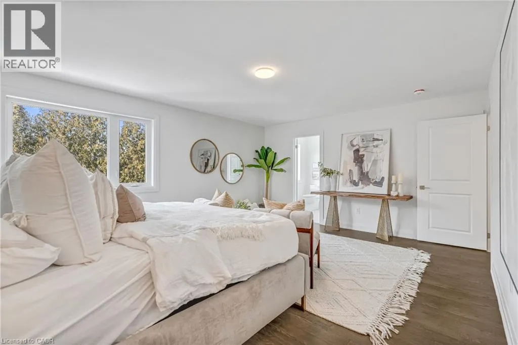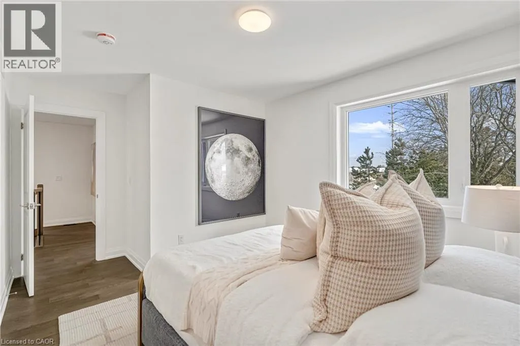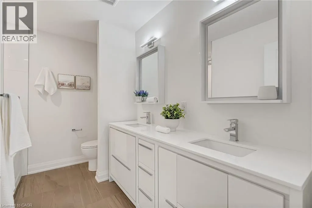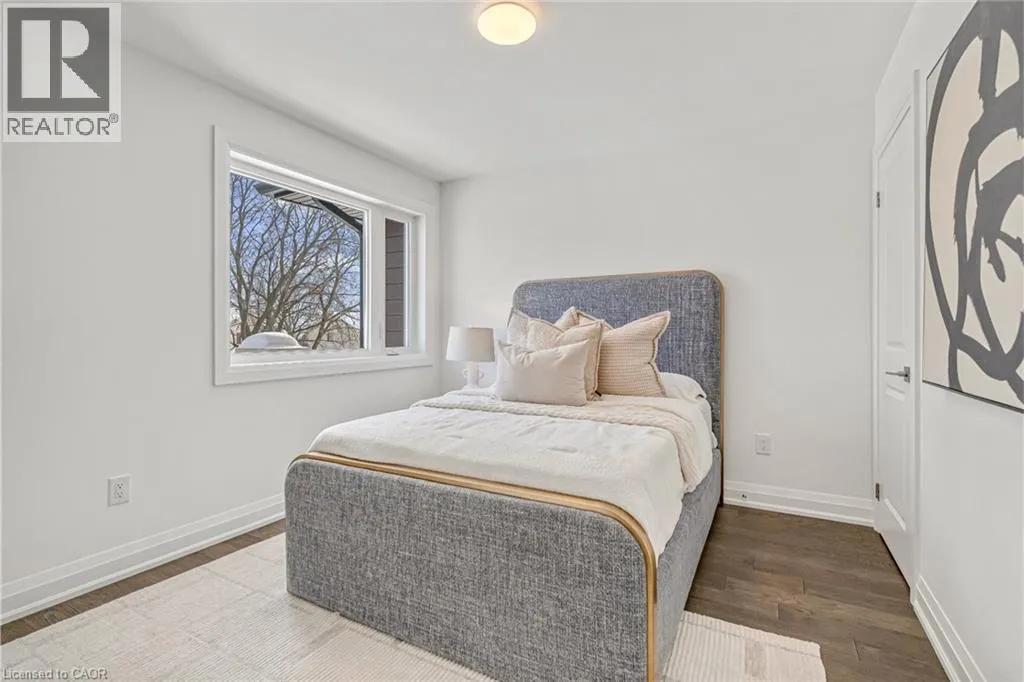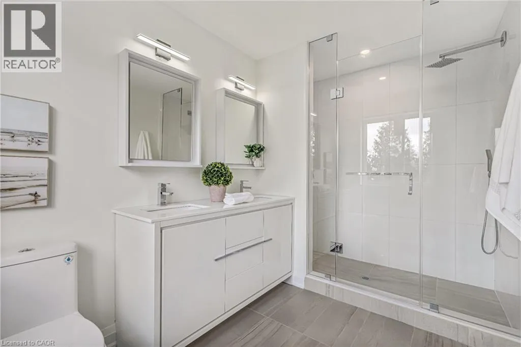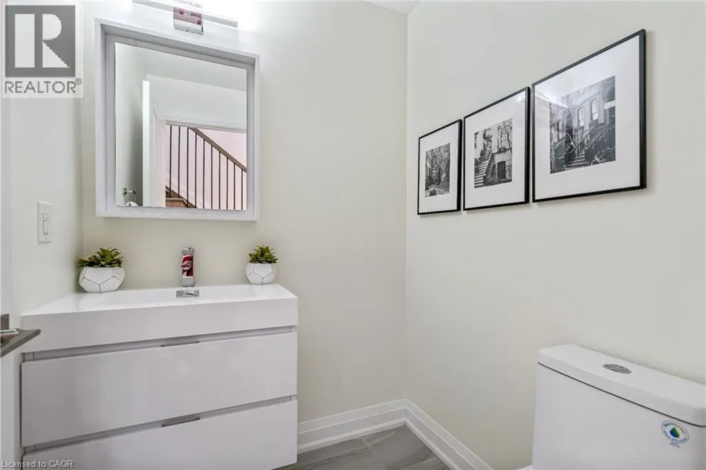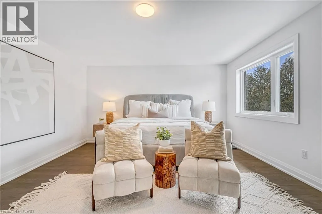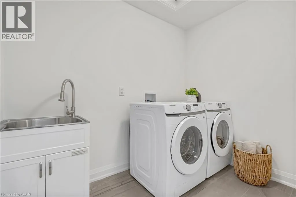 NORTH ON WALKERS LINE PAST UPPER MIDDLE ON THE WEST SIDE Brand-new executive town home never lived in! This stunning 1,799 sq. ft. home is situated in an exclusive enclave of just nine units, offering privacy and modern luxury. Its sleek West Coast-inspired exterior features a stylish blend of stone, brick, and aluminum faux wood. Enjoy the convenience of a double-car garage plus space for two additional vehicles in the driveway. Inside, 9-foot ceilings and engineered hardwood floors enhance the open-concept main floor, bathed in natural light from large windows and sliding glass doors leading to a private, fenced backyard perfect for entertaining. The designer kitchen is a chefs dream, boasting white shaker-style cabinets with extended uppers, quartz countertops, a stylish backsplash, stainless steel appliances, a large breakfast bar, and a separate pantry. Ideally located just minutes from the QEW, 407, and Burlington GO Station, with shopping, schools, parks, and golf courses nearby. A short drive to Lake Ontario adds to its appeal. Perfect for down sizers, busy executives, or families, this home offers low-maintenance living with a $349.83/month condo fee covering common area upkeep only, including grass cutting and street snow removal. Don't miss this rare opportunity schedule your viewing today! Tarion Warranty! (id:27476)