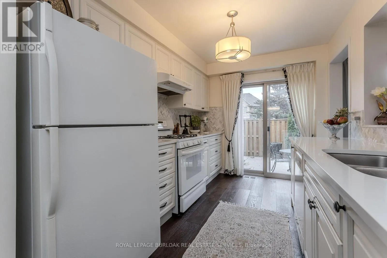 Walkers Line & Mainway Welcome to an upgraded end-unit townhome offering 2,003 sq ft of total living space, thoughtfully designed for growing families who value comfort, style, and everyday convenience. Set in the family-friendly Tansley neighbourhood, this home delivers an exceptional lifestyle just steps from parks, trails, recreation centres, everyday amenities, and with easy highway access for commuters. Curb appeal shines with a stamped concrete walkway, mature trees, lush gardens, and an inviting covered front porch-perfect for morning coffee or greeting neighbours. Inside, a welcoming entry features oversized slab tile flooring and opens to a bright, open-concept main floor with hardwood throughout. The formal dining area flows seamlessly into a warm and stylish family room, highlighted by a large window and modern stone-surround gas fireplace-ideal for cozy evenings and family gatherings. The kitchen is both functional and beautiful, showcasing herringbone marble backsplash, quartz countertops, solid wood cabinetry with deep pot and pan drawers, and a walkout to the backyard patio. A convenient2-piece powder room completes the level, while a striking wood staircase with iron spindles leads upstairs. The second level continues with hardwood flooring and offers a spacious primary retreat complete with a walk-in closet and a sleek 3-pieceensuite featuring a walk-in glass shower. Two additional bedrooms-each with custom California closets-provide comfortable space for kids, guests, or a home office, alongside a full 4-piece main bathroom. The finished lower level adds valuable living space with a generous rec room, long slab tile flooring, and a dedicated laundry room-perfect for playtime, movie nights, or a home gym. Out back, escape to a fully fenced yard that feels like a private European patio hideaway, complete with stamped concrete, privacy hedging, creeping ivy, and lush plantings-an ideal setting for outdoor dining, entertaining, or relaxing in peace. (id:27476)