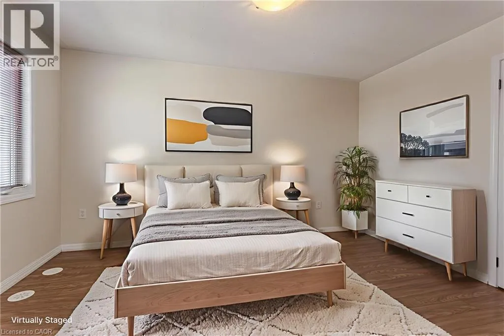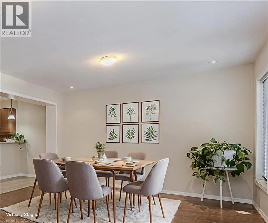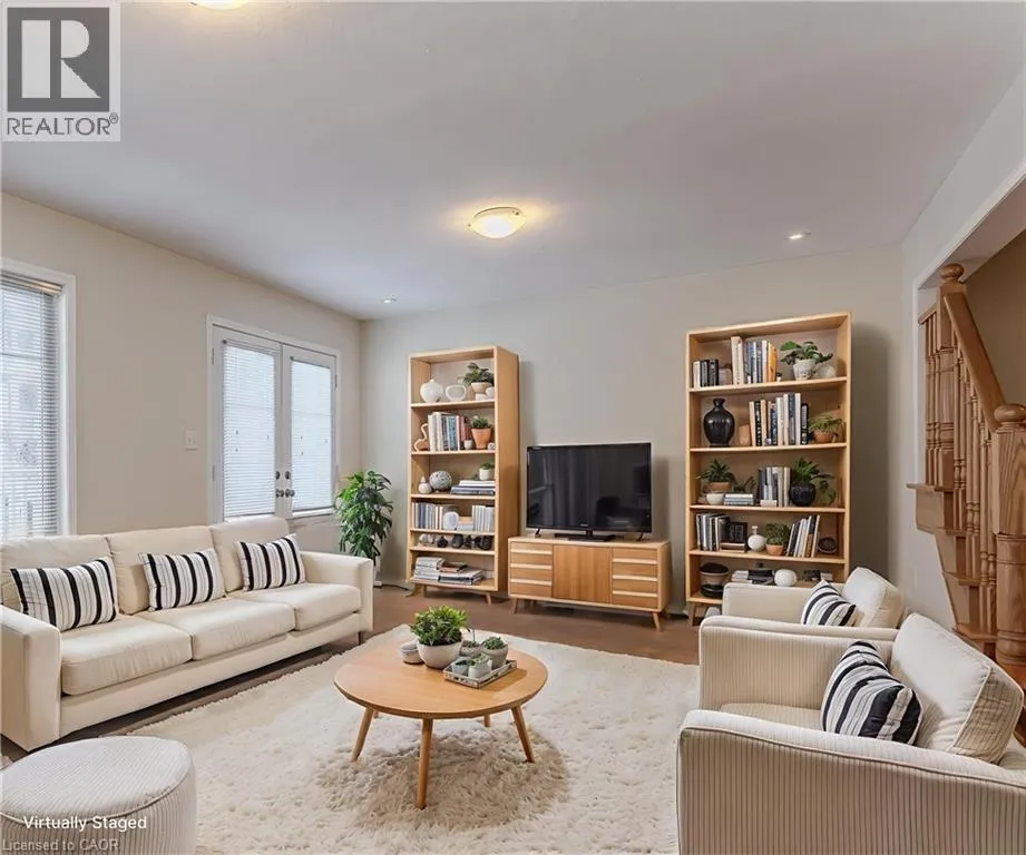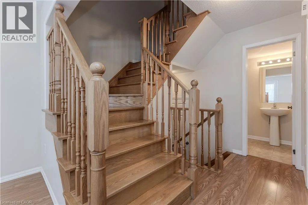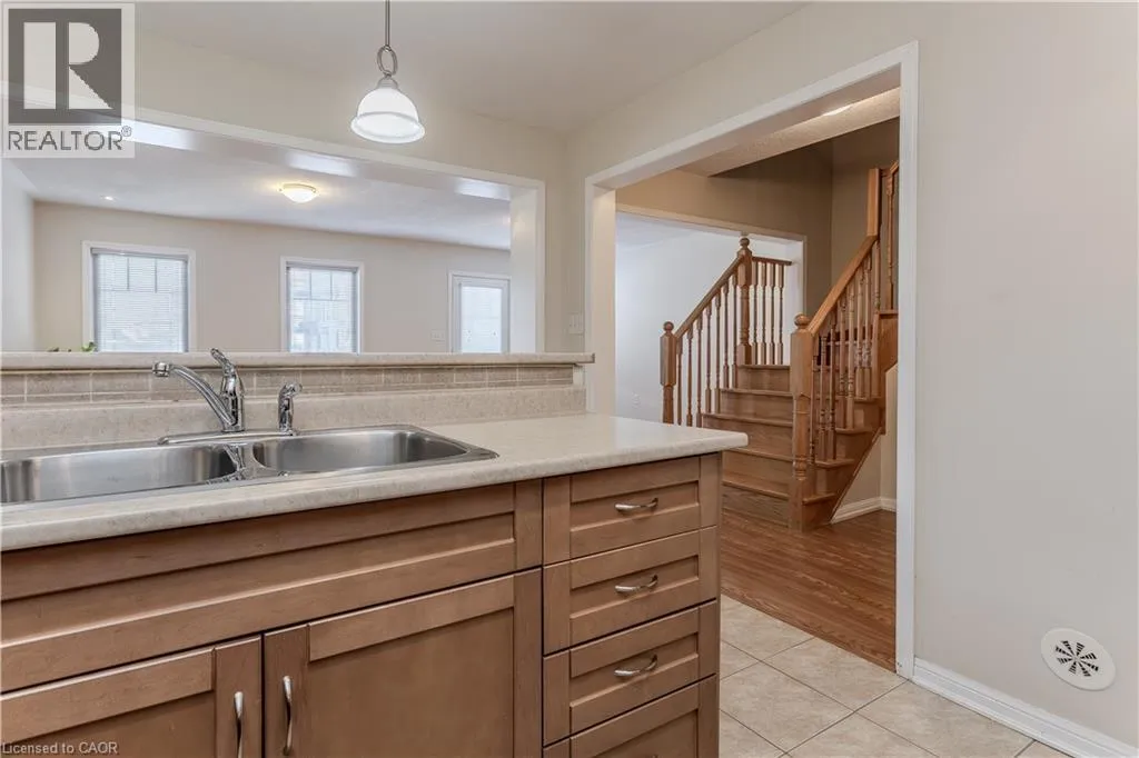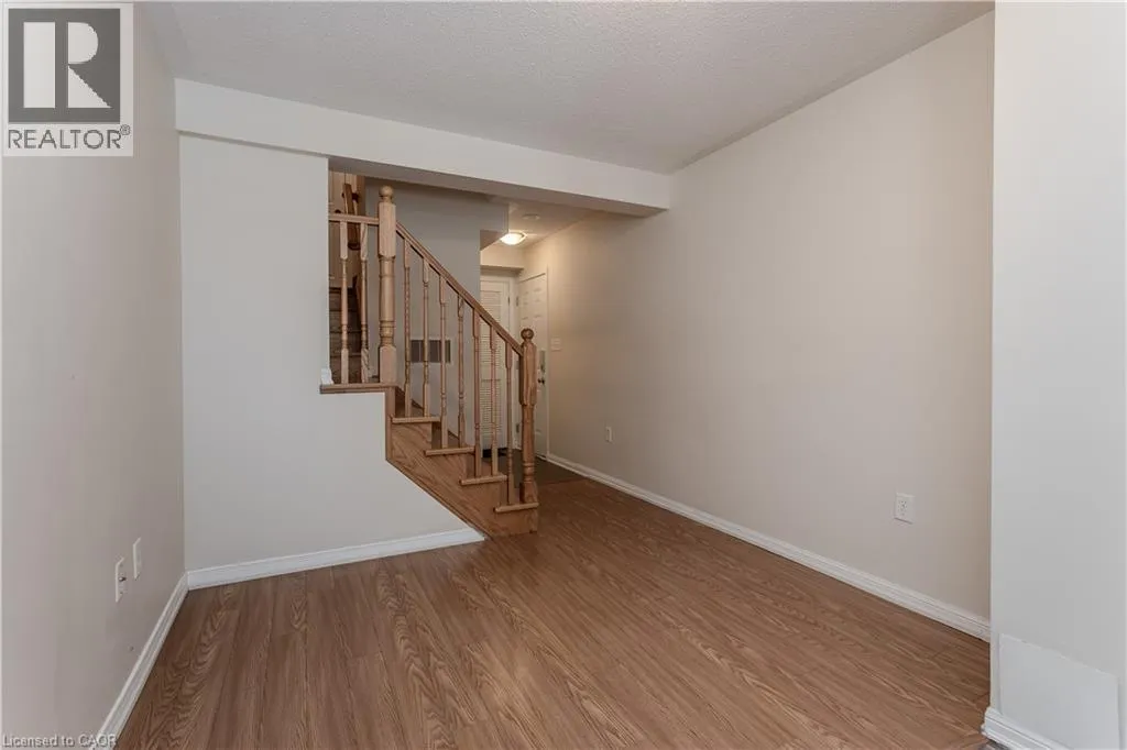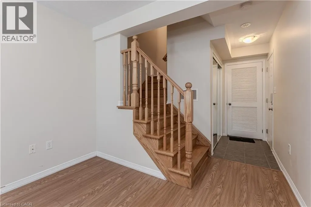 Dundas St to Rotary Way Bright, welcoming, and thoughtfully designed for growing families, this spacious 3-storey condo townhome offers a functional layout in a family-friendly neighbourhood surrounded by parks, schools, transit, and everyday amenities. Whether itâs busy weekday mornings, evening walks, or weekend outings, everything you need is just moments from your door. From the moment you arrive, the covered front porch creates a warm first impressionâperfect for greeting guests or enjoying a quiet moment outdoors. The automatic garage with convenient inside entry adds everyday ease, especially during colder months or when unloading groceries and sports gear.Inside, laminate flooring flows throughout, creating a warm and cohesive feel across all levels. The main living area is perfectly suited for family life, featuring an open-concept living and dining space with a walkout to a private wooden balconyâideal for morning coffee, outdoor meals, or winding down at the end of the day. The kitchen is both practical and inviting, complete with tile backsplash, wood cabinetry, ample counter space, and a breakfast bar thatâs perfect for busy mornings, homework time, or casual meals together. Thoughtful details continue throughout the home, including a convenient 2-piece powder room, in-suite laundry, and a classic wood staircase connecting each level. Upstairs, the primary bedroom offers a comfortable retreat with a walk-in closet and a private 3-piece ensuite. An additional well-sized bedroom features a built-in desk niche, making it ideal for kids, guests, or a home office. A full 4-piece main bathroom completes the upper level. Offering a smart, family-focused layout, bright living spaces, and a prime location close to everything that matters, this inviting townhome is the perfect place to grow, create memories, and enjoy everyday living to the fullest. (id:27476)