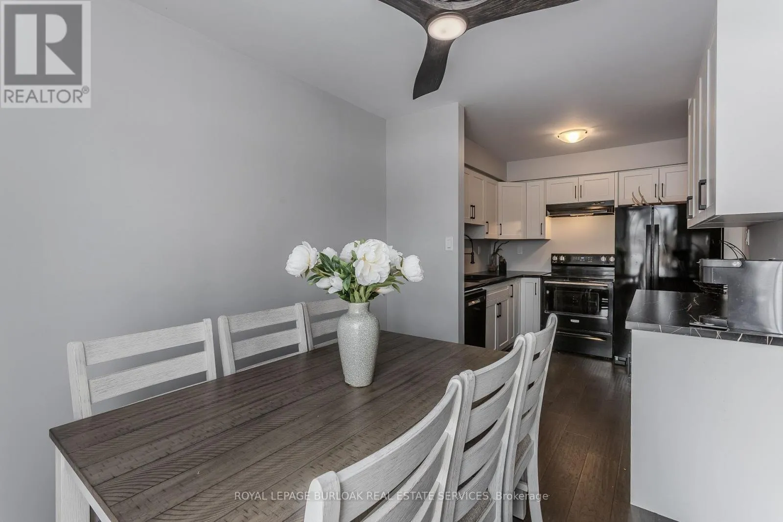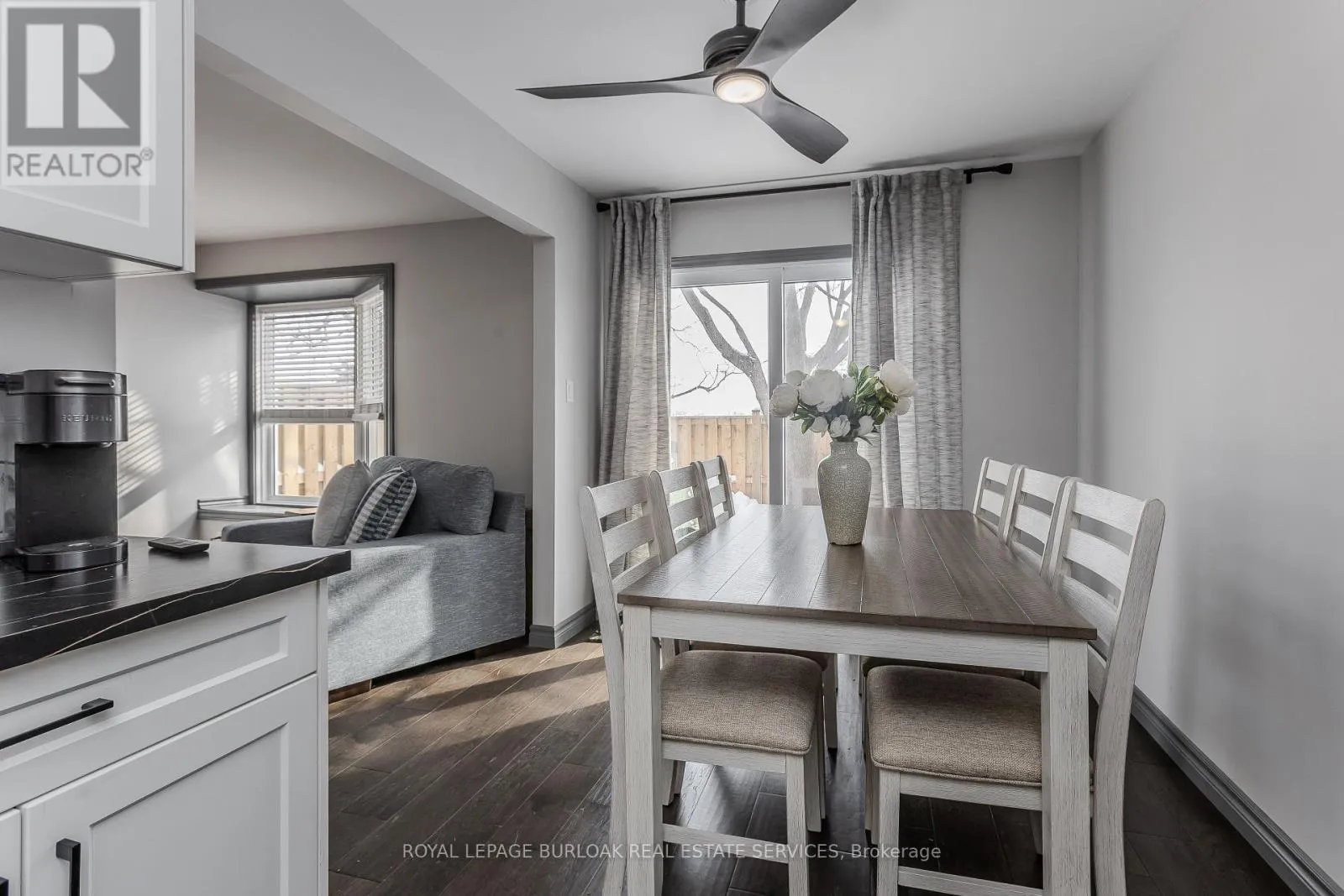 Upper Middle Road to Fairchild Blvd. Welcome to an exceptional end-unit townhome offering over 1,100 sq ft of total living space, nestled in the highly sought-after Tyandaga community-a true lifestyle setting perfect for growing families. Completely transformed in March 2025, this home was ripped to the studs and thoughtfully rebuilt, delivering peace of mind, modern finishes, and turnkey living from top to bottom. Backing directly onto a park and bike trail, enjoy tranquil views, outdoor adventures, and a family-friendly atmosphere right outside your door. An inviting covered front porch with seating and a lovely perennial garden creates a welcoming first impression. Inside, every detail has been upgraded, including all new windows and exterior doors, hand-scraped hickory hardwood flooring throughout, updated light fixtures, and fresh paint for a bright, cohesive feel. The sun-filled main floor features an open-concept layout designed for everyday living and entertaining. The spacious living room is anchored by a large bay window, while the dining area offers a walkout to the rear deck and a remote-controlled light and fan-perfect for family meals or hosting friends. The custom kitchen is both stylish and functional, showcasing stone countertops, premium black stainless steel appliances, designer faucet, custom cabinetry, deep pots-and-pans drawers, and a dedicated coffee bar. Upstairs, the generous primary bedroom is filled with natural light, complemented by two additional well-sized bedrooms and a luxurious 4-piece bath featuring large slab tile flooring, a tiled tub/shower combo, and sleek black hardware. Out back, the fully fenced yard offers privacy and mature trees, with a wooden deck ideal for family BBQs, playtime, or unwinding while overlooking the peaceful park setting. Turnkey with thoughtful upgrades, park-side views, and a welcoming community feel, this home offers the lifestyle families are searching for. (id:27476)