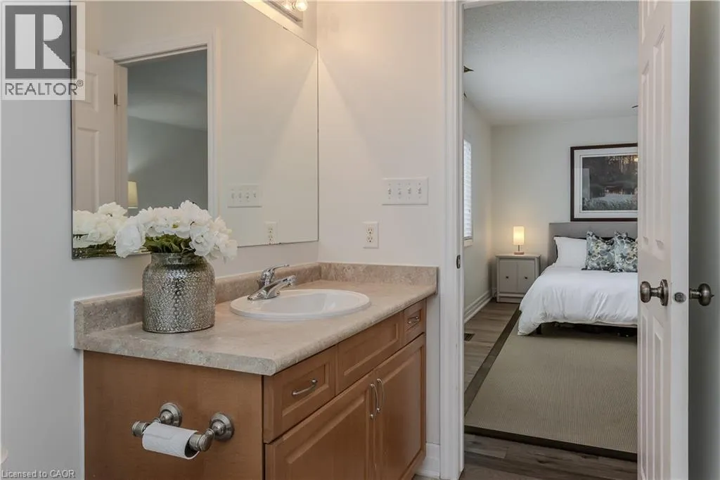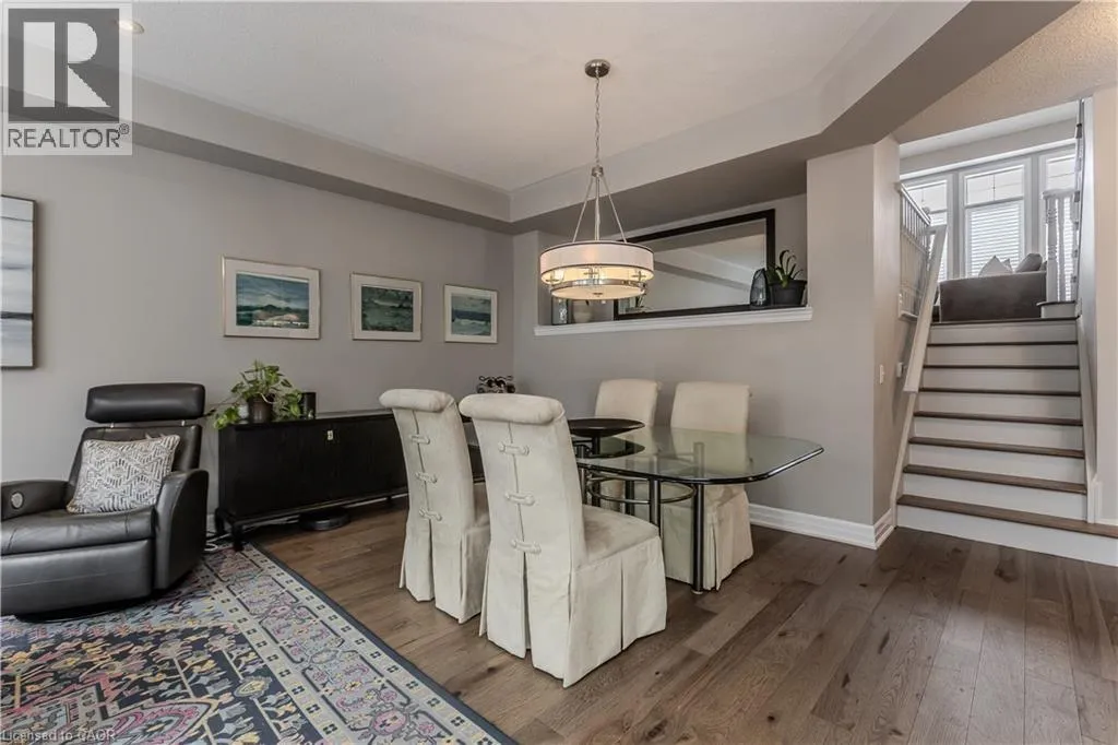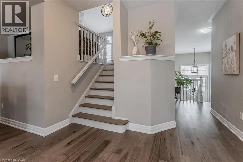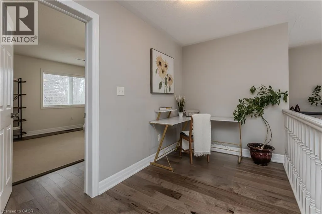 Walkers Line to Thomas Alton Blvd to Steeplechase Dr ?Welcome to this Mattamy-built Winterfield home, perfectly designed for families and set on a premium ravine lot offering privacy, space, and beautiful natural views. With 2,934sf of living space and upgrades throughout, this home blends function and lifestyle in a sought-after friendly neighbourhood. Just steps to schools, parks and everyday essentials, with easy access to the 407, GO Train, shopping and moreâideal for family life and commuters. Curb appeal welcomes you with stone steps leading to a warm, inviting entryway. Inside, hardwood flooring flows throughout the home. The spacious kitchen is the heart of the home, featuring ample custom cabinetry, stainless steel appliances, a large island with breakfast bar, and a sunny eating area with walkout to the back deck through an extra-wide glass doorâperfect for family meals and entertaining. The open-concept living and dining area offers a beautiful bay window and tray ceiling, creating an airy, welcoming space for everyday living. The upper level is thoughtfully designed, featuring a stunning middle-level family room with vaulted ceiling, cozy stone-surround fireplace, and built-in shelvingâperfect for movie nights and relaxing together. A dedicated home office area provides ideal work-from-home flexibility. The spacious primary retreat includes a 4-piece ensuite with soaker tub and walk-in shower, while three additional generously sized bedrooms and a 4-piece main bath provide plenty of room for a growing family. The finished lower level offers incredible versatility with laminate flooring, a separate garage entry, large rec room, stylish wet bar with beverage fridge, & an additional bedroom with its own 3-piece ensuiteâideal for guests, teens, or multi-generational living. Step outside to a fully fenced backyard oasis featuring an elevated composite deck, patio, green space for kids and pets to play, and peaceful ravine viewsâyour own private escape in the city. A perfect place to grow, gather, and call home. (id:27476)