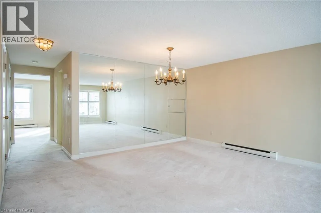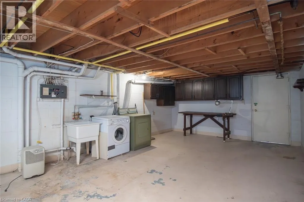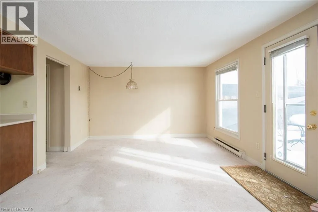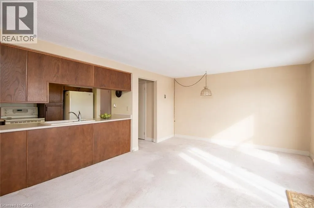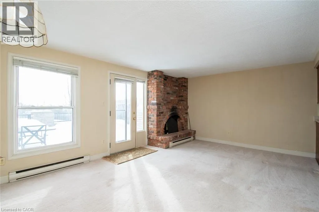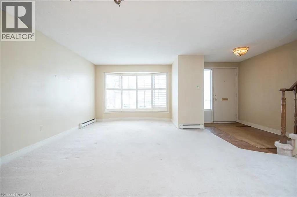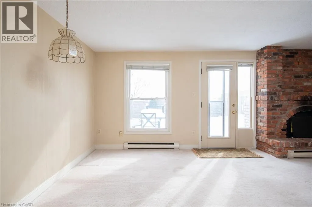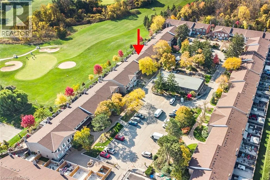 Wellington Green Complex off Brant St. past Tyandaga Park Dr. Welcome to this peaceful community nestled in the desirable Tyandaga neighbourhood! This 1,583+ sq. ft. townhouse offers a spacious layout and backs onto the Tyandaga Golf Course. The generously sized living and dining rooms are filled with natural light from a large front window, creating an inviting space for everyday living and entertaining. At the back of the home, the kitchen opens to a warm and cozy family room complete with a wood-burning fireplace â an ideal place to relax. From here, step out to the fully fenced patio, backing onto the Tyandaga Golf Course. Enjoy open views and no rear neighbours. A convenient 2-piece bathroom completes the main level. Upstairs, youâll find three well-sized bedrooms, including a large primary bedroom with two closets and a 3-piece ensuite. A 4-piece main bathroom completes the upper level. The unfinished basement offers excellent potential for future customization and includes a laundry area and direct access to the underground garage. This unit offers two dedicated parking spaces: one underground and one surface parking spot conveniently located in the front parking area of the complex. Wellington Green residents have access to a private recreation centre featuring a pool, sauna, and hot tub, along with a community outdoor patio â great amenities to enjoy throughout the year. Ideally located in the Tyandaga neighbourhood with community golf, tennis courts, shopping, schools, parks, public transit and major highways, this home is perfect for commuters. Maintained in its original condition and ready for updates, it offers a wonderful opportunity to make it your own. With some TLC, you can add your personal touches in a well-established and highly sought-after neighbourhood. (id:27476)