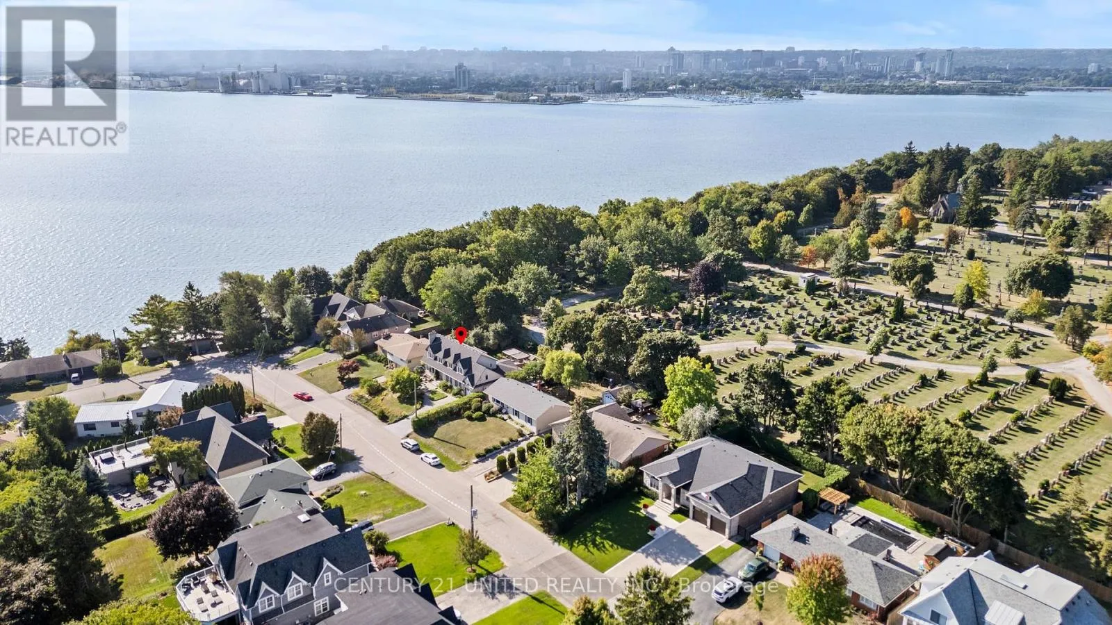 North Shore Blvd W Welcome to this exceptional 6-bed, 5-bath residence offering stunning waterfront views, ideally located on a quiet street in highly sought-after South Aldershot. Designed for multi-generational living, this versatile home features a fully self-contained main-floor in-law suite with its own private entrance, backyard, kitchen, laundry, vaulted ceilings, & cozy gas fireplace.The main residence impresses with outstanding curb appeal, beautifully landscaped gardens, an interlock & stone walkway & breathtaking bay waterfront views right from your front seating area. Inside, the main floor showcases tile flooring, a thoughtful layout, & an updated custom kitchen complete with stainless steel appliances, quartz countertops, & a bright, sitting area. The formal living & dining features hardwood floors, a wood fireplace, & a wall of windows that perfectly frame the spectacular water views. Updates include new downstairs furnace (2025), upstairs furnace (2023), kitchen remodel (2024), all bathrooms updated (2024), New roof, soffit/ fascia (2020), fresh paint, updated light fixtures & more. The second level features four spacious beds all with water views, including a large primary suite with a spa-style ensuite bath. The lower level features an additional bed, expansive rec room, dedicated gym space, bonus den, & generous laundry with built-in cabinetry, offering flexibility for future use, including the potential for a 3rd kitchen. Outdoor living is impressive, with a spacious fully fenced main backyard offering a deck, pergola with shade, & a beautifully landscaped, expansive patio ideal for entertaining or relaxing. The garage has an unfinished loft space above, offering potential for additional living area to complement the in-law suite. Enjoy city living with lake views, just an 8-min drive to GO Station. 5 min drive to LaSalle Marina & Park, 11 min drive to Spencer Smith Park. A truly one-of-a-kind opportunity to live by the water while enjoying all modern amenities. (id:27476)