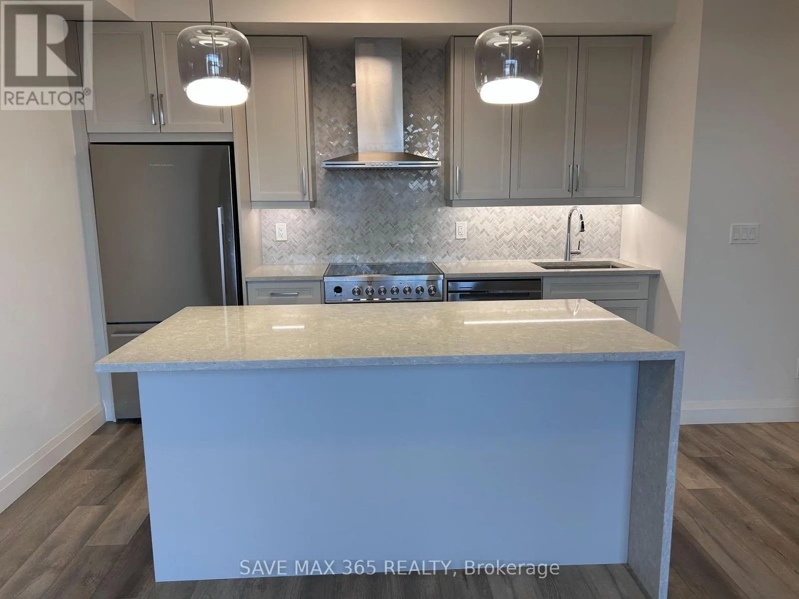 Brock Avenue & Ontario Street Best value opportunity for a beautifully finished, quiet, and bright 1 bedroom, 1 bathroom suite offering a modern open-concept layout with enhanced finishes throughout. This well-designed unit features abundant natural light and a walkout to a private balcony, ideal for everyday living and entertaining. The sleek contemporary kitchen showcases transitionally inspired cabinetry, custom countertops, with pendant lights and a generous centre/breakfast island providing ample prep and storage space. Complete with high-end stainless steel appliances and modern fixtures throughout.The spacious bedroom includes a stylish 4-piece ensuite, complemented by modern bathroom finishes. Convenient ensuite laundry adds to the functionality of this suite.Residents enjoy access to premium building amenities including a fully equipped gym and an impressive party room. Ideally located close to a wide range of shops, restaurants, waterfront trails, parks, and everyday conveniences. Minutes to Joseph Brant Hospital and public transportation, offering exceptional accessibility.An excellent opportunity for someone seeking comfort, quality, a prime location & proximity to Burlington Go Station (id:27476)