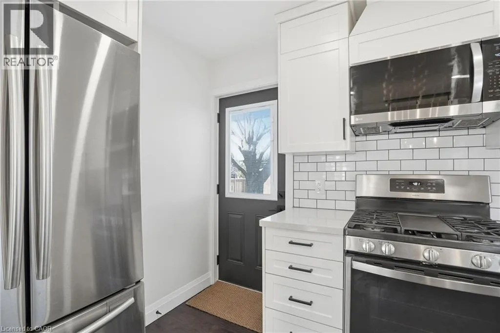 GUELPH LINE TO WOODWARD AVE TO SHARRON ST Welcome to this beautifully updated three-bedroom, two-bathroom bungalow located in sought-after South Burlington. The home features a renovated kitchen with modern finishes, updated interiors throughout and a practical layout ideal for both everyday living and entertaining. The fully finished basement offers additional living space and includes a kitchenette/wet bar, perfect for hosting guests or creating a cozy retreat. Outside, enjoy a large private, professionally landscaped backyard matching the curb appeal of the front yard. Situated in a quiet, mature neighbourhood just five minutes from downtown, this home combines comfort, privacy and unbeatable convenience. Donât be TOO LATE*! *REG TM. RSA. (id:27476)