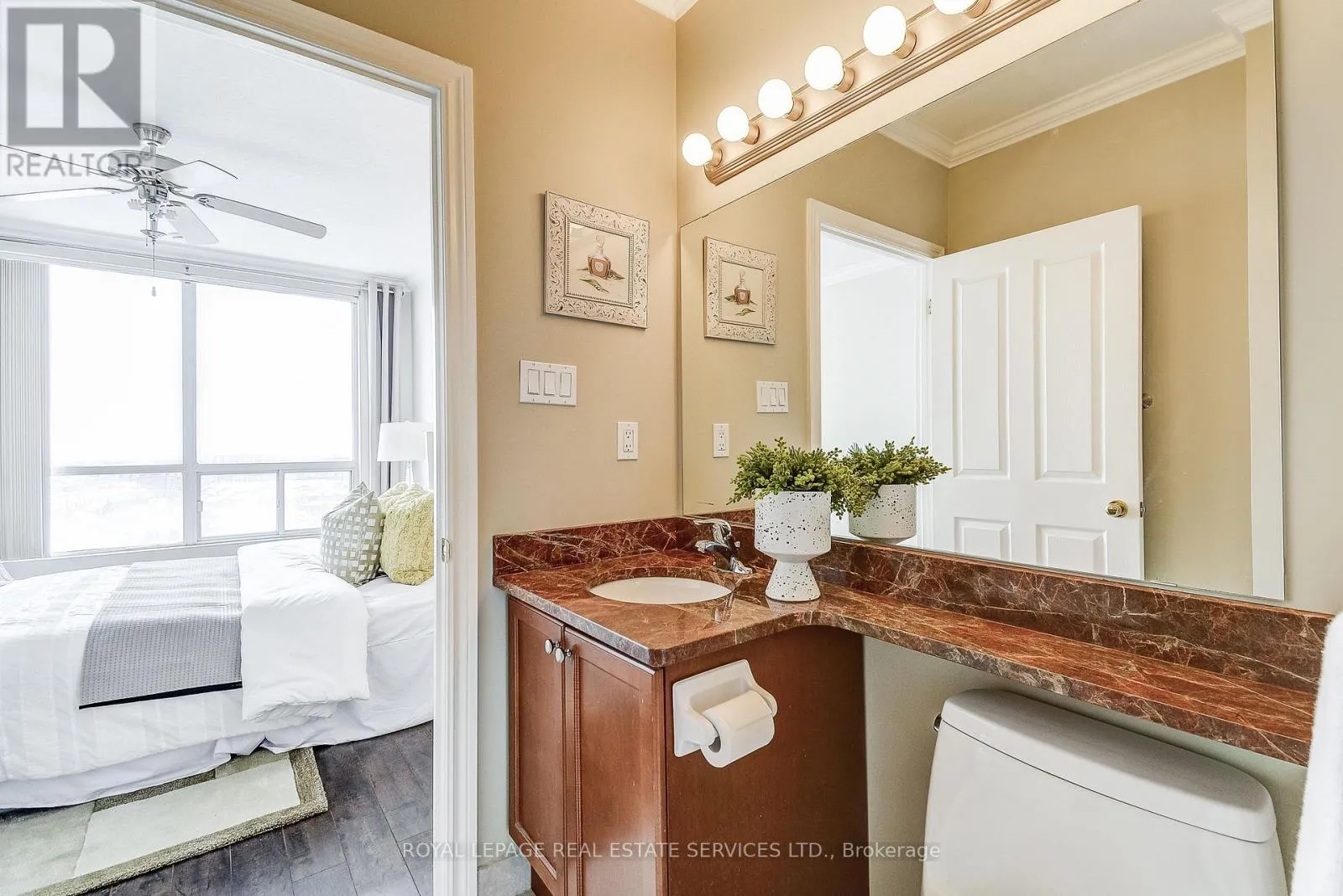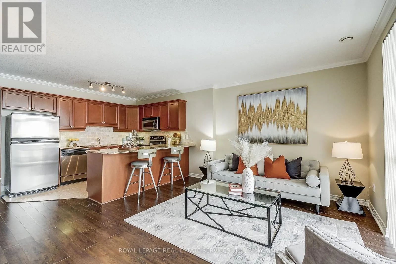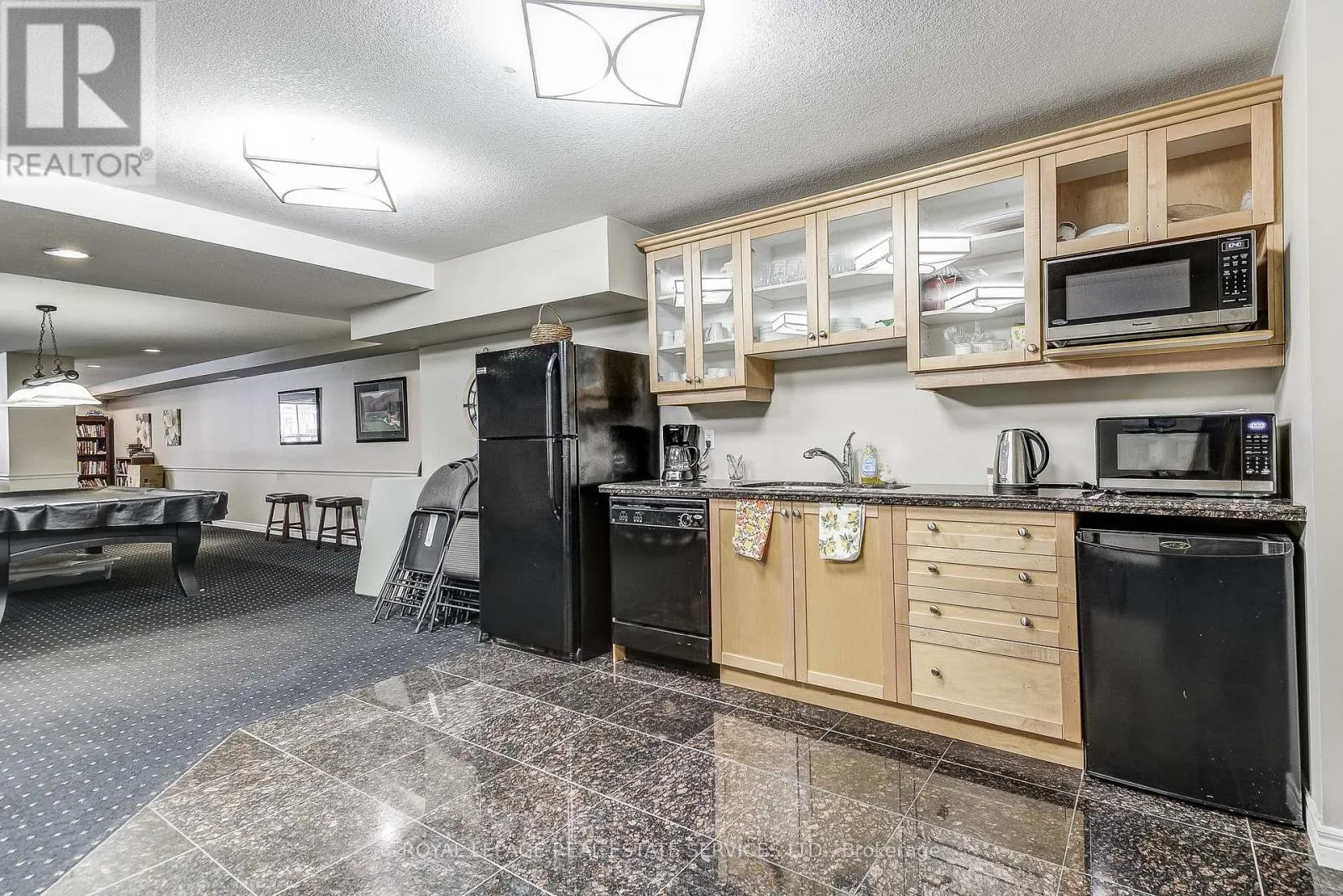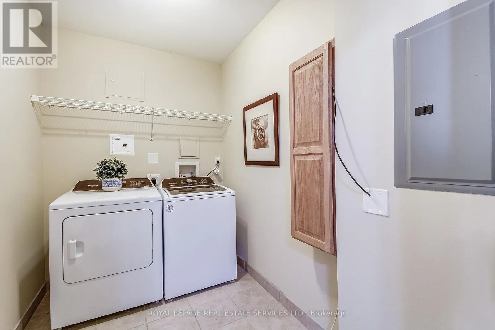 Appleby Line to Ironstone Dr Experience condo living at its best at Millcroft Place.This beautiful south facing unit, with views to the lake, offers 1,146 square feet of living space. When you walk in the door, you are greeted by a spacious foyer. Off the foyer is a walk-in laundry room and a 4-piece main bath.The open-concept layout features a lovely kitchen with granite countertops, tiled backsplash, stainless steel appliances, and a breakfast bar. Beautiful laminate flooring and crown moulding throughout the living and dining areas. The living room offers an electric fireplace and a walkout to the large balcony with views down to the lake. Laminate flooring continues into both bedrooms. The primary bedroom boasts a large walk-in closet and a 3-piece ensuite bathroom with a walk-in shower.Included are 1 underground tandem parking space for 2 cars with EV charger and 1 locker. Millcroft Place offers amenities such as an exercise room, workshop, and party room with a kitchen, pool table, and TV. A live-in superintendent ensures prompt assistance.Pets are welcome (1 dog and 1 cat, up to 25 lbs each). (id:27476)