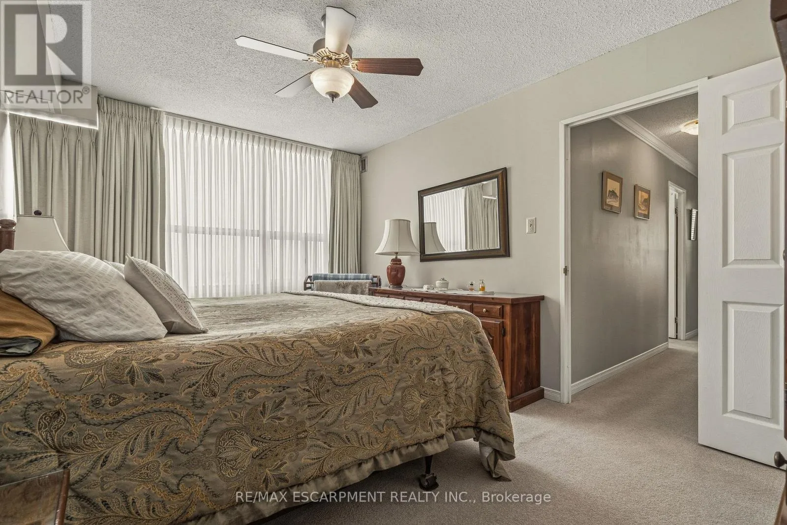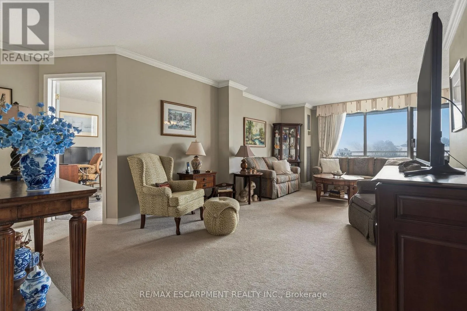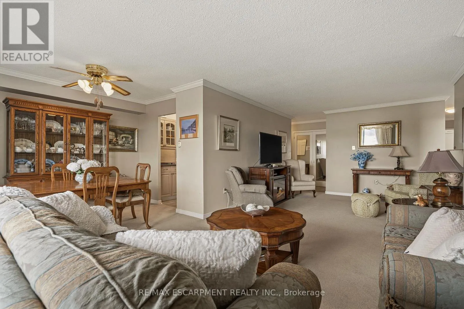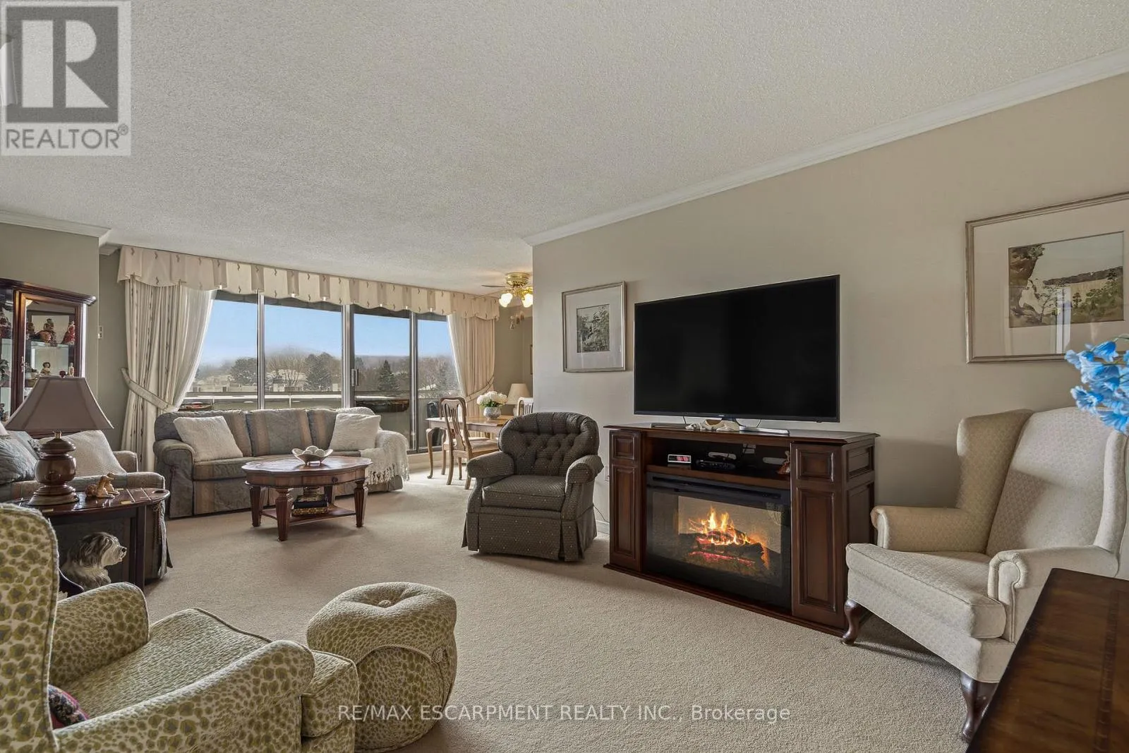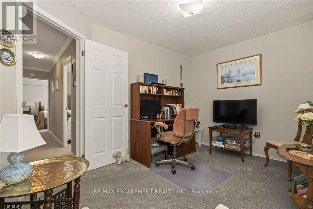 Cross Streets: Duncaster. ** Directions: From Brant St turn East onto Upper Middle Rd. Flooded with natural light, this exceptionally spacious three-bedroom, two-bath corner suite offers a thoughtfully designed layout that feels both open and inviting. Expansive windows capture serene lake and nature views, while the generous living room is anchored by a beautiful gas fireplace-creating a warm, welcoming space to relax or entertain. A separate dining area offers seamless flow and a walk-out to the large private balcony, extending your living space outdoors and providing the perfect setting to enjoy morning coffee or evening sunsets. The updated kitchen is both stylish and functional, featuring stone countertops, abundant cabinetry, and a large pantry that makes everyday living effortless. Each of the three bedrooms offer versatility, ideal for family living, guests, or a dedicated home office. The primary suite serves as a private retreat with a walk-in closet and a four-piece ensuite. In-suite laundry and a well-designed floor plan enhance both privacy and comfort throughout. Residents enjoy an exceptional range of building amenities, including a fitness centre, outdoor pool, tennis court, library, games room, craft room, workshop, and guest suite-truly everything you need, right at home. Ideally located within walking distance to shopping, transit, and everyday conveniences, with nearby parks and quick access to major highways. One parking space included #107. (id:27476)