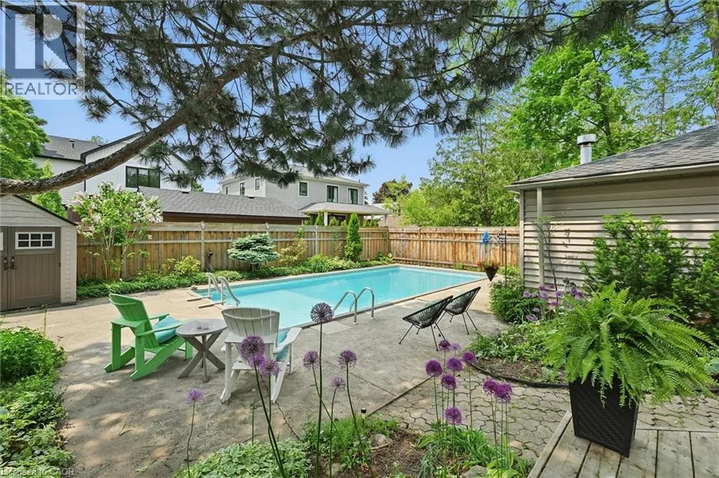 Between Drury Lane and Brant Street Welcome to the heart of downtown Burlington! Larger than it looks, this lovely 2+1 bedroom bungalow, 2 full baths, a generous spacious addition, overlooking the gorgeous gardens and large salt water pool. Double car garage w/parking up to 5 spaces. Freshly painted throughout, 3 Fireplaces! Finished rec room w/bar area great for entertaining your guests or teen retreat! Included BBQ is gas, NOT propane. Enjoy Burlingtonâs fabulous shops, restaurants and pubs, providing the ideal blend of convenience and tranquility. Steps to Spencer Smith Park's gorgeous waterfront, where you can enjoy the many festivals, splash pad, parks & wintertime skating, festival of lights! One of Canada's top rated cities! (id:27476)