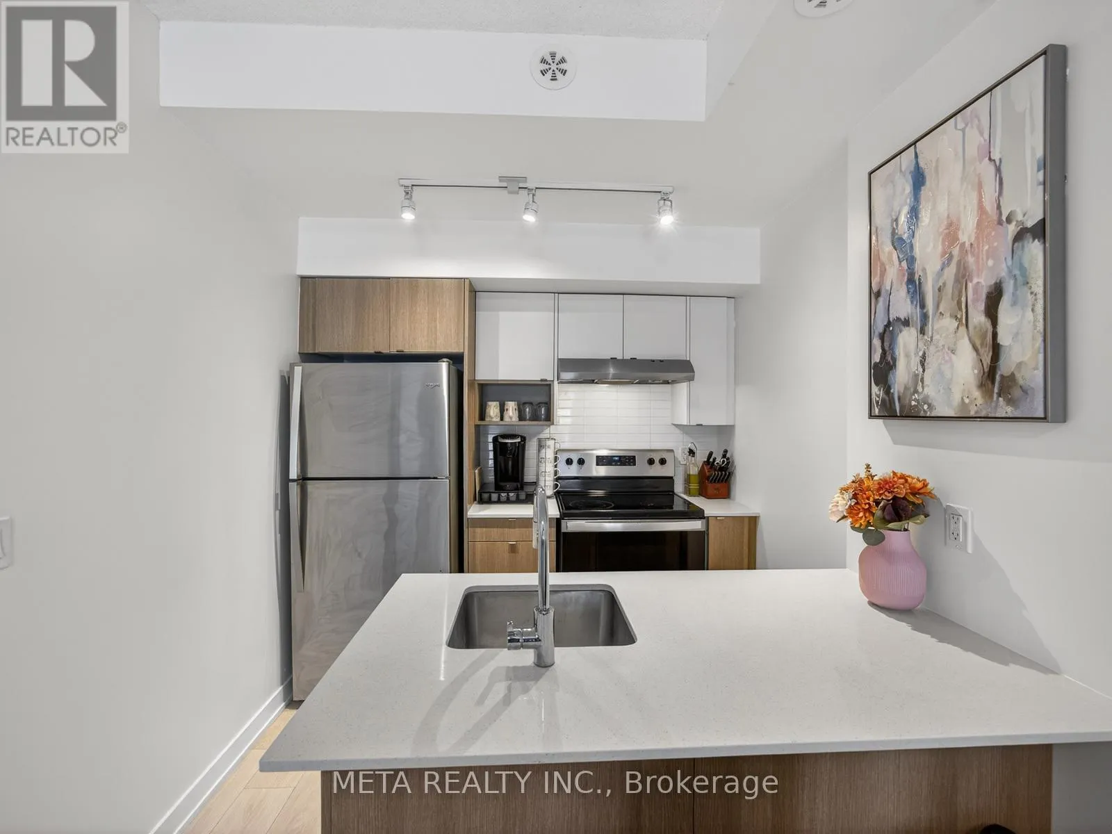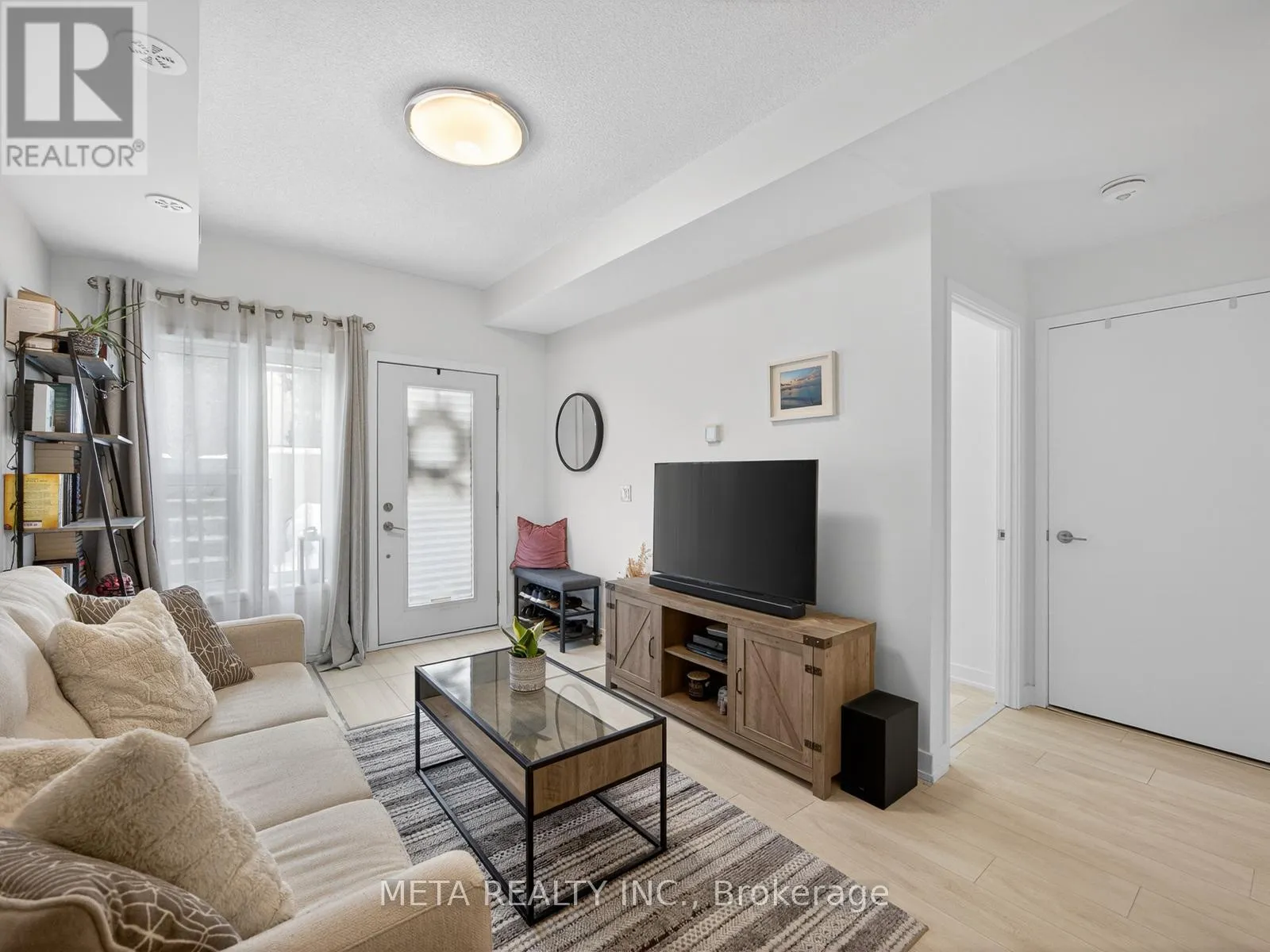Cross Streets: Waterdown and 403. ** Directions: Waterdown Rd to Masonry to Cooke Blvd. Property is located along most northern section of complex, facing towards the Aldershot GO/highway 403. Gorgeous and bright 1-bedroom, 1-bath stacked condo townhouse offering modern style living! Open-concept kitchen and living area with contemporary finishes, stainless steel appliances, breakfast bar, and soaring 9-ft ceilings! The spacious bedroom includes an upgraded custom closet organizer, while the oversized laundry closet has room for extra storage solutions! No carpet in this unit, freshly painted in 2025 - this is the perfect turn-key unit for first-time homebuyers or downsizers! Enjoy your private entrance and outdoor patio terrace. BONUS: Unit is located near the parking garage access on the north side of the complex, with no units directly across from the front door, offering excellent privacy! Unbeatable location just steps to Aldershot GO Station, with quick access to Hwy 403, QEW, and Hwy 407. Minutes to LaSalle Park, Lake Ontario, scenic trails, the Royal Botanical Gardens, Hendrie Valley, and all the shops, dining, and amenities of downtown Burlington. (id:27476)