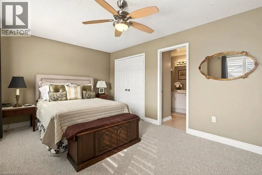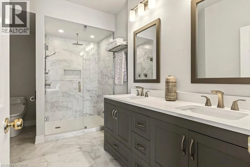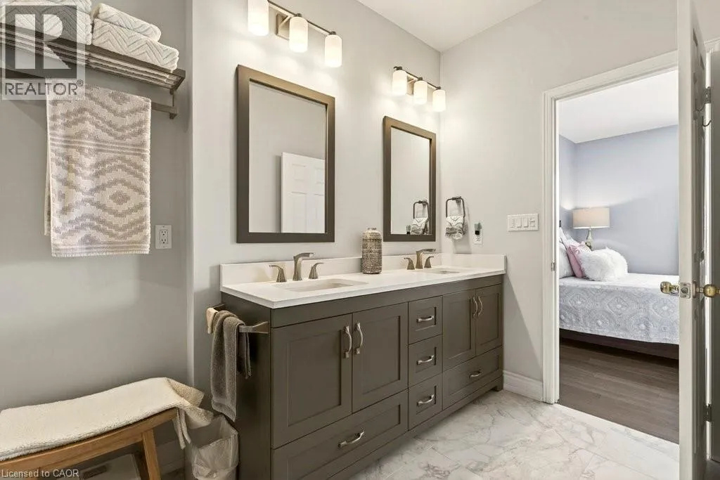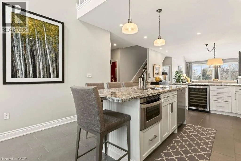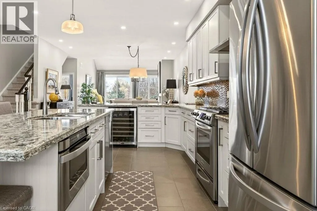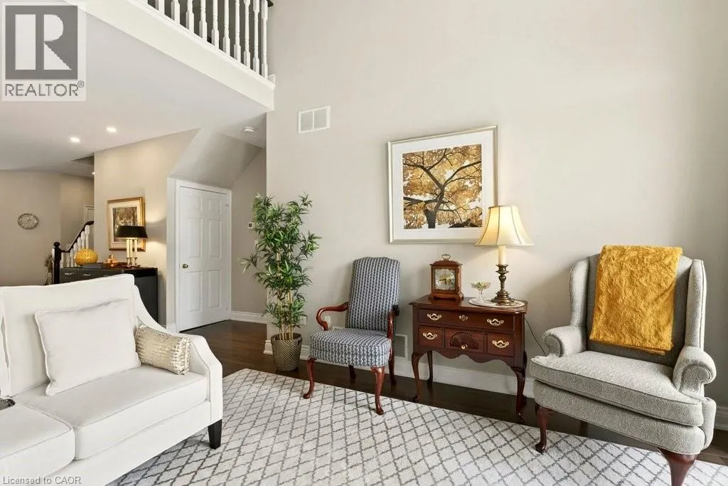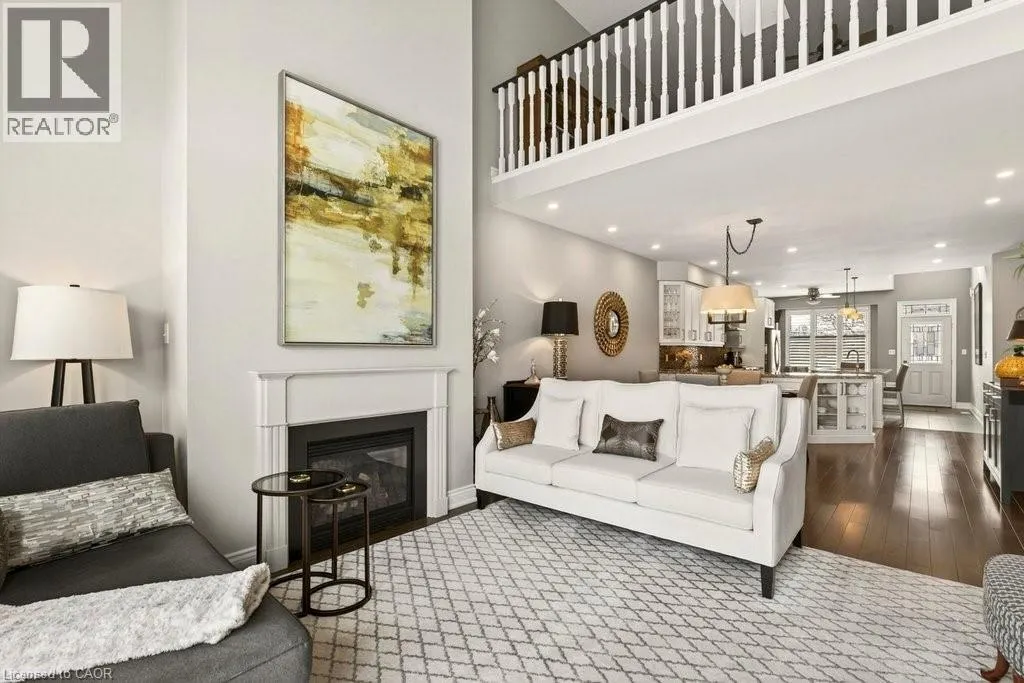 Berwick Dr/Sarazen Dr Absolutely stunning executive bungaloft in sought-after complex backing on to the 10th fairway of Millcroft Golf Club! 2,281 sq.ft. of beautifully updated open concept living space filled with natural light. Updated eat-in kitchen with stainless steel appliances (including gas stove and wine fridge), island, quartz countertops and glass subway tile backsplash. Spacious living/dining with vaulted ceiling, gas fireplace and walkout to private deck and patio with gas BBQ hookup and stunning golf course setting. Main level primary bedroom with a gorgeous spa-inspired 4-piece ensuite and walk-in closet. Upper level features a large loft/family room and a second bedroom with access to a 4-piece bathroom. Additional features and high-end finishes include 9' ceilings on the main level, hardwood floors, California shutters, pot lighting, skylights and an updated furnace (2024)! Double drive and double garage with inside entry to main level laundry/mudroom. 2 bedrooms and 2.5 bathrooms. (id:27476)