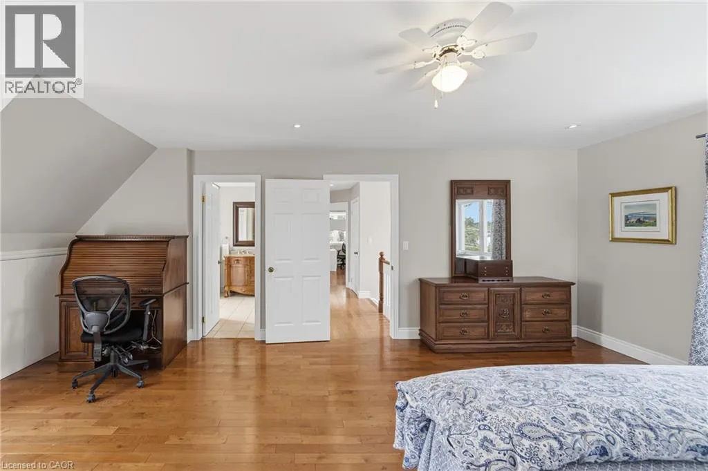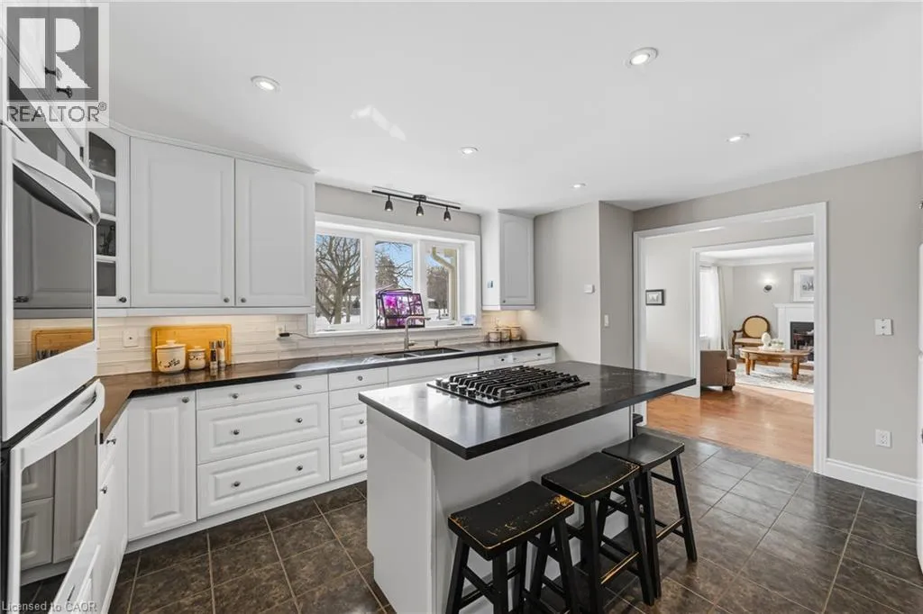SPRUCE - HAMPTON HEATH This one's a rare find that is sure to impress! Curb appeal matters, so check out this bright and spacious 3-bedroom, 3-bathroom two-storey Cape Cod-style home located in the desirable Elizabeth Gardens community of southeast Burlington. Set on a large, private, fenced, irregular lot; this home offers exceptional space both inside and out. The oversized double garage comfortably fits two cars and includes a convenient upper-level loft for added storage. The main level features hardwood flooring and tile throughout, a welcoming front facing living room with a cozy gas fireplace, and a nicely updated kitchen with quartz countertops, double wall oven, and a gas cooktop - perfect for the at-home chef. The separate dining room sits just off the kitchen, ideal for entertaining. The full main-floor bathroom and inside access to the garage add everyday convenience. At the rear of the home, a family room overlooks and leads out to the impressive backyard, creating the perfect indoor-outdoor connection. Upstairs, youâll find three generous sized bedrooms with hardwood flooring, upper-level laundry, oversized bathroom with ensuite privileges, and ample storage throughout. A stunning oversized window floods the stairway with natural light, a true focal point of this home! The basement has been beautifully updated in recent years and includes a full 3 piece modernized bathroom. The basement also offers a kitchenette, more storage, and separate den or home office space as you see fit, all of this providing exceptional space for years to come. Additional updates include a newer metal roof and HVAC systems for long-term peace of mind. This prime southeast Burlington location is a short walk to the lake, parks, schools, shopping, transit, the new Skyway & Robert Bateman community centres, and all amenities you would ever need - this is a home that truly checks all the boxes. (id:27476)
