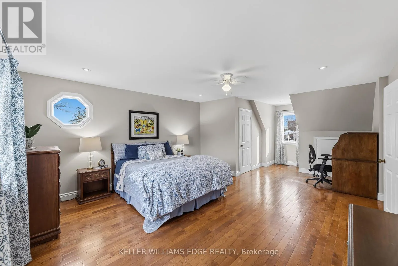 Cross Streets: Spruce/ Hampton Heath. ** Directions: SPRUCE - HAMPTON HEATH. This one's a rare find that is sure to impress! Curb appeal matters, so check out this bright and spacious 3-bedroom, 3-bathroom two-storey Cape Cod-style home located in the desirable Elizabeth Gardens community of southeast Burlington. Set on a large, private, fenced, irregular lot; this home offers exceptional space both inside and out. The oversized double garage comfortably fits two cars and includes a convenient upper-level loft for added storage. The main level features hardwood flooring and tile throughout, a welcoming front facing living room with a cozy gas fireplace, and a nicely updated kitchen with quartz countertops, double wall oven, and a gas cooktop - perfect for the at-home chef. The separate dining room sits just off the kitchen, ideal for entertaining. The full main-floor bathroom and inside access to the garage add everyday convenience. At the rear of the home, a family room overlooks and leads out to the impressive backyard, creating the perfect indoor-outdoor connection. Upstairs, you'll find three generous sized bedrooms with hardwood flooring, upper-level laundry, oversized bathroom with ensuite privileges, and ample storage throughout. A stunning oversized window floods the stairway with natural light, a true focal point of this home! The basement has been beautifully updated in recent years and includes a full 3 piece modernized bathroom. The basement also offers a kitchenette, more storage, and separate den or home office space as you see fit, all of this providing exceptional space for years to come. Additional updates include a newer metal roof and HVAC systems for long-term peace of mind. This prime southeast Burlington location is a short walk to the lake, parks, schools, shopping, transit, the new Skyway & Robert Bateman community centres, and all amenities you would ever need - this is a home that truly checks all the boxes. (id:27476)