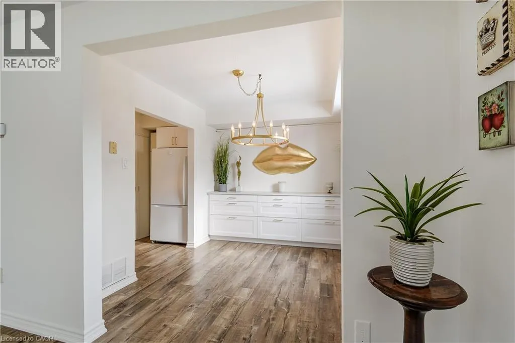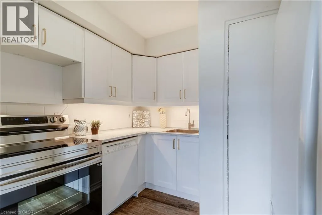 East on Guelph Line, North on Claridge from New Street. Spacious 2-bedroom townhouse condo in the heart of Burlington offering a rare, fully fenced and private backyard retreat, perfect for those seeking both indoor comfort and outdoor living. This move-in ready home showcases fresh professional paint throughout, wide plank laminate wood floors, a newly renovated white kitchen with built-in dining room buffet, and a large second-floor laundry for everyday convenience. The open concept main floor Living and Dining Rooms flow seamlessly to an oversized, fully fenced backyard with a new interlock patio, perennial gardens, and two storage sheds, creating an ideal setting for outdoor entertaining and relaxation. Upstairs, the second floor features a spacious Primary Bedroom with wide plank laminate floors and walk-in closet, a large second bedroom with laminate floors, a roomy linen closet, an updated 4-piece bath, and a full-size laundry area. This well-managed complex has numerous recent updates, including a new roof in 2023, new front awning, eaves and downspouts within the last three years, refreshed hallways, updated front doors, and more, offering peace of mind and pride of ownership. One parking space is included, with lots of additional visitor parking options nearby. The fantastic core location is walkable to the lake, unique shops, restaurants, Burlington Centre Mall, and walking and cycling trails to downtown Burlington, with easy access to transit for commuters. This lovely home is truly a must-see for anyone seeking a vibrant, walkable Burlington lifestyle with a private backyard retreat. This lovely home is truly a must-see! (id:27476)