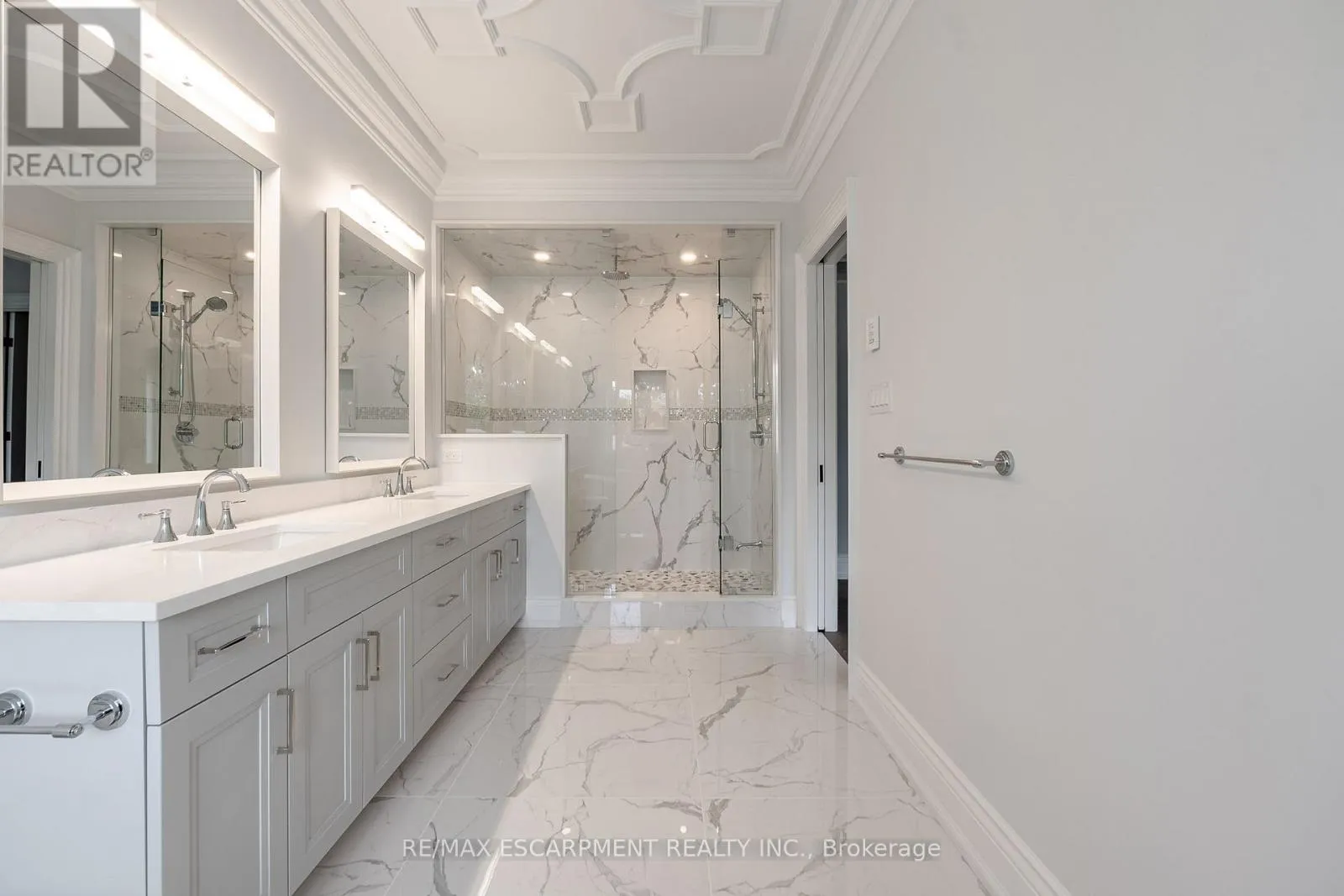 Cross Streets: Lasalle Park Road and Bayside Court. ** Directions: Plains Road to Lasalle Park Road to Bayside Court. Quality and luxury in this exquisite 2025 4-bed (all with ensuites), 6 bath custom build in an exclusive pocket in south Aldershot, steps to the lake, Lasalle Park, and the Burlington Golf and Country Club! Enjoy a premium street position on a quiet cul-de-sac offering 4 spacious bedrooms, each with its own ensuite.Over 5100 sqft of luxuriously finished floor space with every convenience for the busy family. Impressive foyer with beautiful, polished porcelain inlay, white oak hardwoods, soaring ceiling height to the second floor and walk-in, lit closet with custom organisation.Sun-filled main floor home office for live/work arrangements and a convenient oversized powder room.Dine with large groups of friends and family in your sophisticated, dedicated dining room with custom tray ceiling, extra-large windows and mosaic white oak hardwoods.Wow to this kitchen! If you love to cook, you will be blown away with both function and aesthetics of this masterpiece.Premium lit Barzotti cabinetry in a neutral palette with premium JennAir monogram series appliances throughout, including double oven, 6 burner gas range, lockable wine fridge, premium quartz surfaces, heated flooring and extra-large walnut-stained island to match the custom walnut range hood.Everyone will enjoy the privacy of their own ensuite, connected to extra-large bedrooms adorned with beautiful, imported tile, white oak hardwoods, custom w/i closets, designer lighting, and elegant decorative plaster ceilings.Breathtaking primary ensuite shows off imported Italian Calcutta polished porcelain, freestanding soaker tub, Barzotti double sink vanity, heated flooring and glass shower with double rain heads.Entertainers dream in the lower level, complete with a dedicated glass enclosed gym space, sauna with integrated lighting and sound system, kitchen servery area and home theatre for movie nights!Nearby top-rated schools, minutes to DT & GO station.Welcome to your BRAND-NEW impeccable dream home! Luxury Certified. (id:27476)