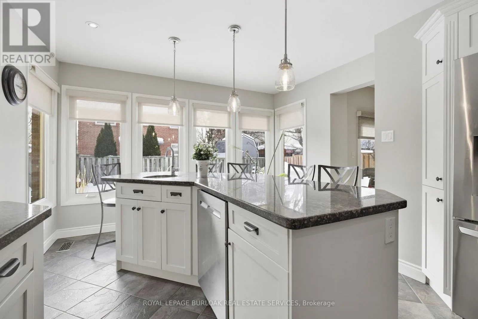 Cross Streets: Hazelwood Avenue. ** Directions: Upper Middle Road / Deer Run Avenue / Hazelwood Avenue / Quail Valley Drive. Fabulous 4 bedroom/2.5 bathroom detached two storey home with tasteful décor throughout in the fabulous Headon Forest Community of North Burlington. Main floor highlights include an updated eat-in kitchen with high-end appliances and a breakfast bar, a family room with a fireplace, a separate dining room area, living room, mudroom and a powder room. The second floor features a large primary bedroom with a 4-piece ensuite and a walk-in closet, three other good-sized bedrooms and an additional 4-piece bathroom. A finished lower level includes a large recreation room, laundry and plenty of storage. The home's exterior features a low maintenance private backyard with a pool that is ideal for both outdoor enjoyment and entertainment. Meticulously maintained, this home is located in one of Burlington's most sought-after neighbourhoods and is close to excellent schools, parks, shopping, highways, and many of the amazing amenities the city has to offer. AN ABSOLUTE MUST SEE! (id:27476)