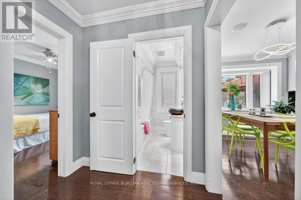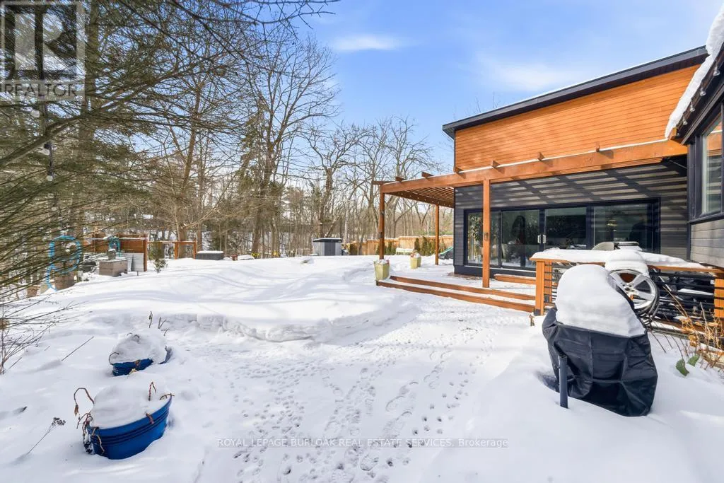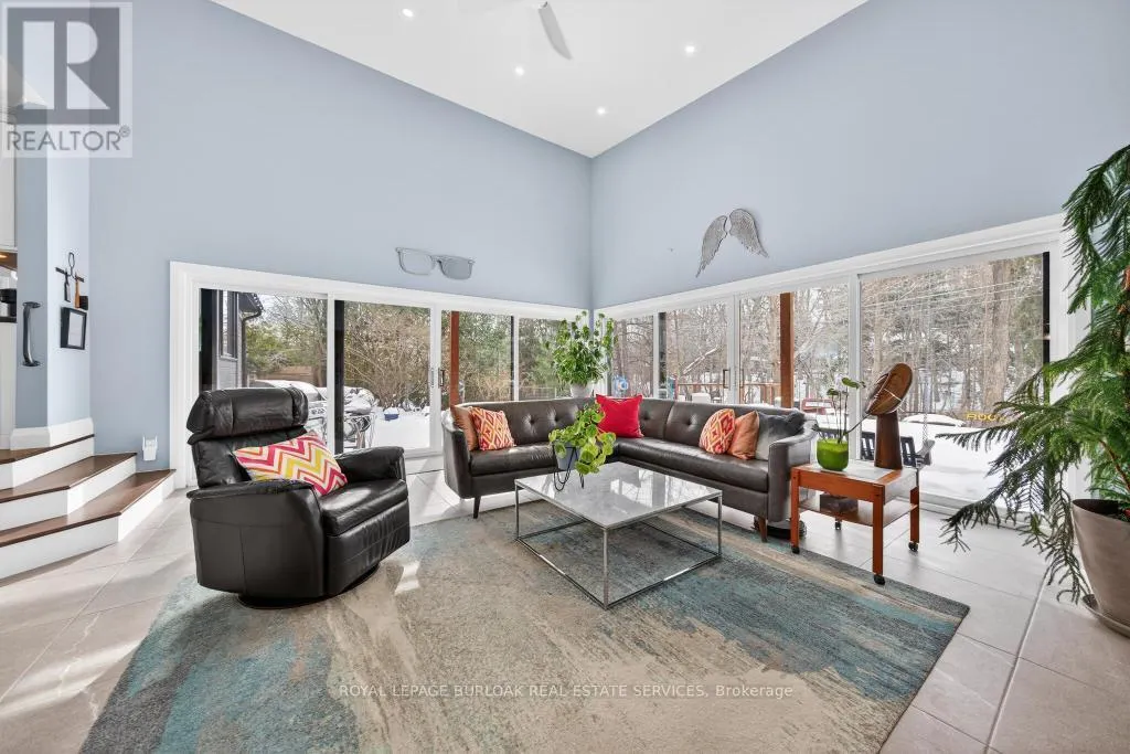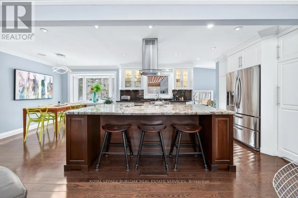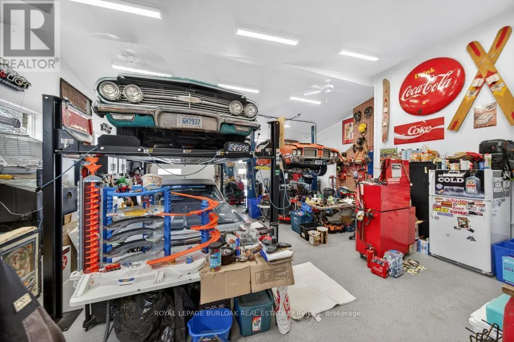 Lakeshore and Goodram Rare offering in coveted Shoreacres, South Burlington. This beautifully renovated bungalow backs onto a ravine, offering complete privacy and a tranquil, resort-like setting with an in-ground 18 x 36 kidney shape heated pool and 2 decks with forest views-ideal for family living and entertaining. Extensively updated in 2018, the home features a stunning sunroom addition with soaring 15-ft ceilings and serene views of the backyard oasis. The jaw dropping garage is a mechanic/contractors dream, a 1200 sq ft man cave, 16-ft ceilings, 2 x 10 ft doors, drive through back door, 3-5 carparking, 2 x 220 volt outlets, 200 amp hydro service, fully finished with drywall, furnace and a convenient 2-pc bath, it is truly an unmatched garage space in the city. The main floor offers 3 generous bedrooms, a 4-pc bath, hardwood floors throughout and newer windows (2016), providing comfortable one-level living. The fully finished lower level is well suited for extended family or guests, featuring a bright in-law suite with large windows, separate entrance, a 4th bedroom, stylish 3-pc bath with seamless walk-in shower, finished laundry room and abundant storage. A rare, flexible layout in one of Burlington's most desirable neighbourhoods. Country living in the city could not be better. (id:27476)