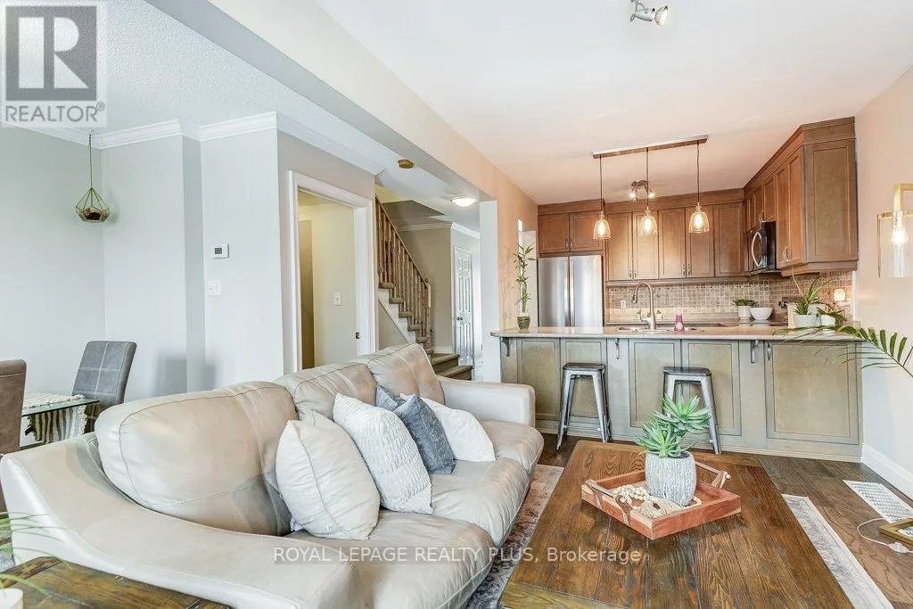 Cross Streets: Appleby/Mainway. ** Directions: Appleby & Mainway. Gorgeous Sun-Filled Townhome with No Rear Neighbours! Welcome to this beautifully updated, move-in-ready townhome offering bright open-concept living and exceptional functionality. The renovated kitchen features a breakfast bar overlooking the spacious living and dining areas - perfect for entertaining or everyday family life. Convenient direct garage entry adds everyday ease.Hardwood flooring runs throughout the kitchen, living room, dining room, and all bedrooms, creating a warm, cohesive feel throughout the main and upper levels.Upstairs, the spacious primary bedroom features his & hers closets. One secondary bedroom includes a built-in closet organizer, while the third bedroom offers generous space ready for your personal touch - ideal for families, guests, or a dedicated home office.The professionally finished basement expands your living space with a stylish rec room featuring tile and laminate flooring, a modern 3-piece bath, and ample storage.Step outside to your private, south-facing backyard oasis complete with a fabulous deck, retractable awning, brand new turf, and fresh wooden flower beds - creating a low-maintenance, beautifully landscaped retreat. With no rear neighbours, you'll enjoy added privacy year-round.Major updates include: new flooring (2022), new fridge, stove & microwave (2026), dishwasher (2024), furnace (2025), roof (2012), and deck (2013). Two-car driveway parking. Located close to highways, schools, parks, and shopping, this home checks all the boxes for comfort, convenience, and value. (id:27476)