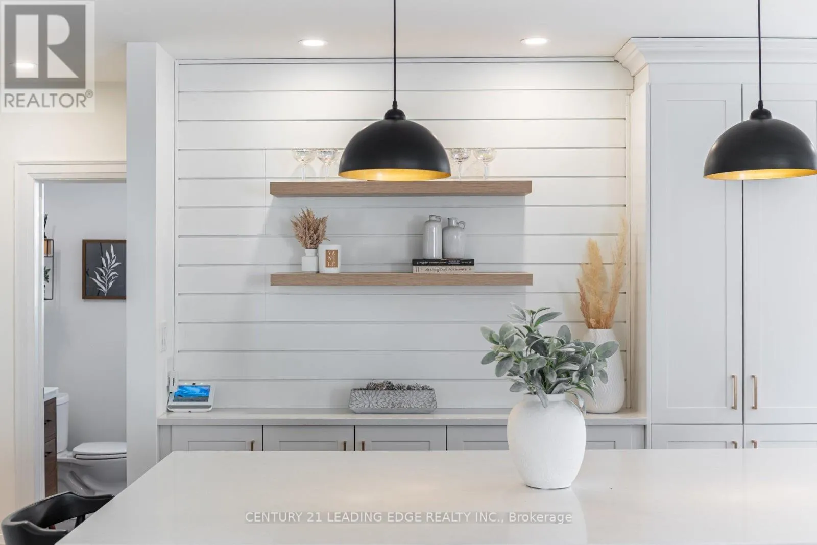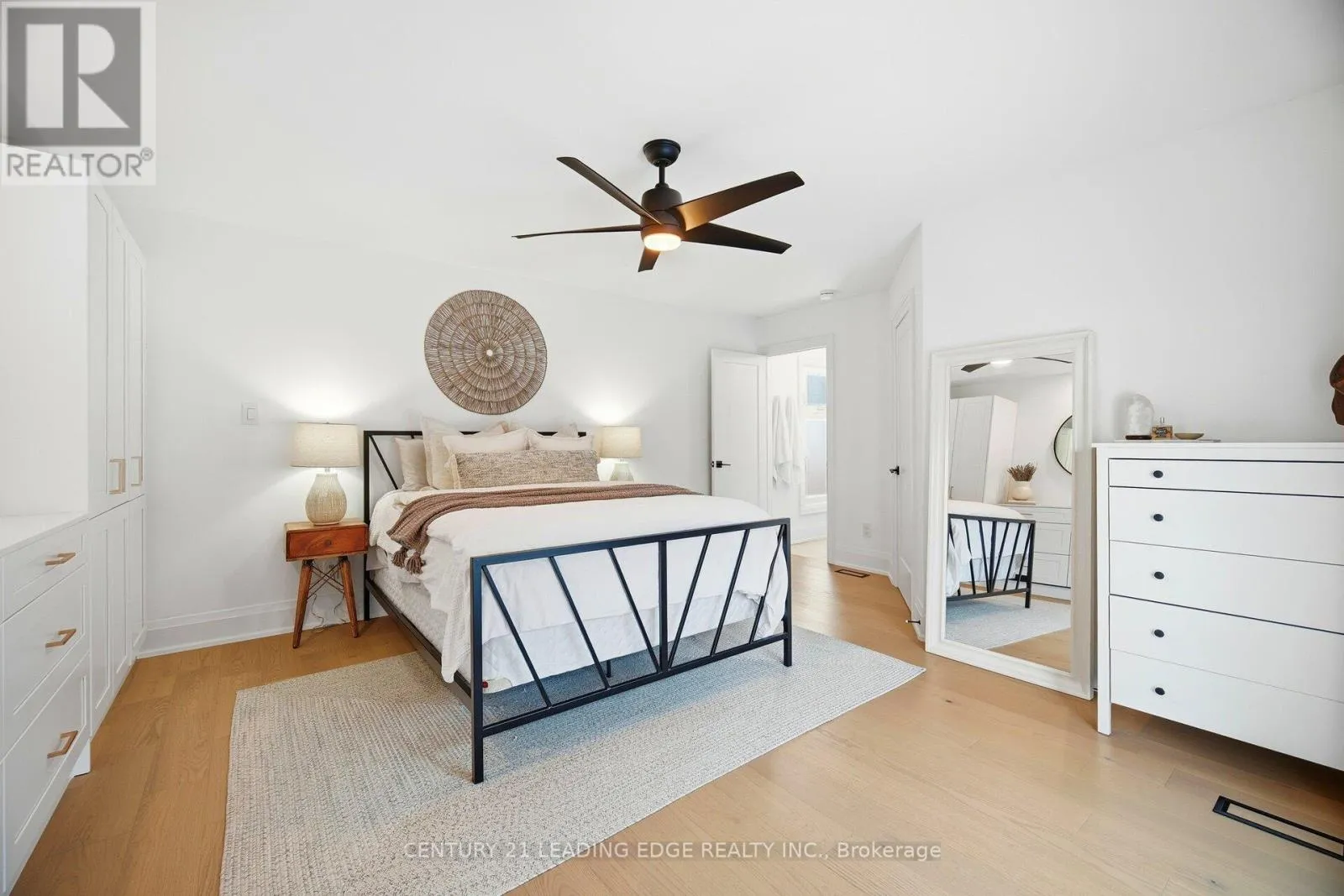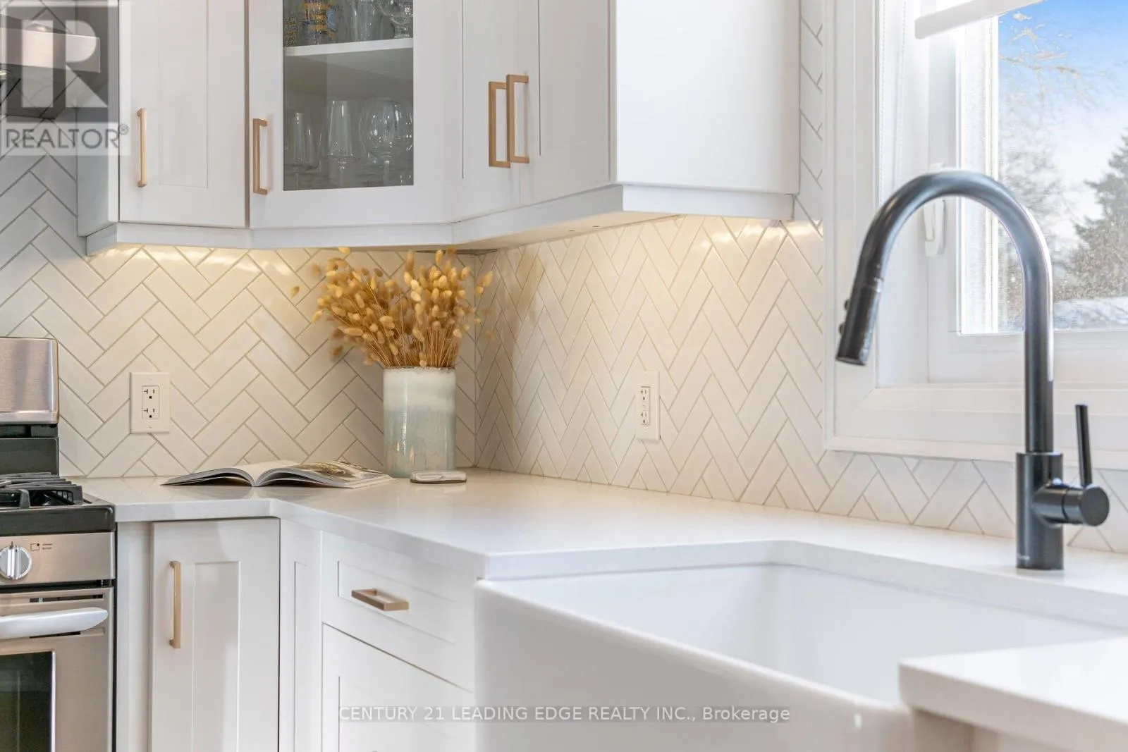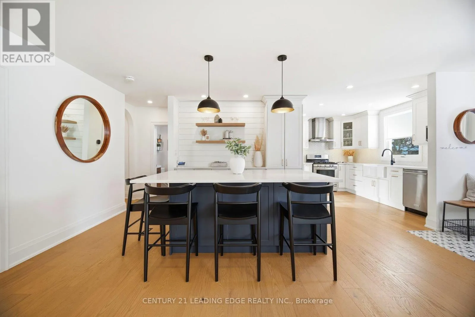 Kingsway and Townsend Welcome to 979 Kingsway Drive - a fully renovated, custom-finished bungalow nestled in one of Burlington's most sought-after pockets of Aldershot.Completely transformed in 2023, this home blends modern elegance with thoughtful functionality. Wide-plank engineered hardwood floors flow throughout the main level, complemented by upgraded trims, new interior doors, and designer lighting. The open-concept layout is centred around a stunning custom kitchen featuring premium Caesarstone quartz countertops, stainless steel appliances, a spacious island with double storage, and seamless sightlines into the living and dining areas - perfect for entertaining or everyday family living.The inviting living room is anchored by a new gas fireplace (B-Vent), adding warmth and character to the space.The primary bedroom retreat offers a beautifully finished ensuite and a custom built-in closet, complete with blackout blinds for added comfort and privacy. Additional bedrooms are generously sized, ideal for family, guests, or home office use. Bathrooms have been fully renovated with new fixtures, modern vanities, upgraded tile work, and timed exhaust fans.Major upgrades provide peace of mind:All new electrical and plumbing (2023) Furnace (2023) & Air Conditioning (2024)Windows (Upstairs 2023 / Basement 2019)Insulation (2022)Ecobee Smart Thermostat (2023)New driveway (2025)The exterior is equally impressive. Professionally landscaped grounds feature new sod (2024-2025), a refinished powered shed (2025), updated outdoor lighting with sensor garage lights, and a new deck extension with wrap-around stairs (2024). A backyard gas line (2022) makes outdoor cooking effortless.Situated in the highly desirable Aldershot/LaSalle community, this home offers quick access to parks, Burlington Golf & Country Club, Lake Ontario, top-rated schools, the GO Station, and major highways - making commuting simple while enjoying a mature, established neighbourhood (id:27476)