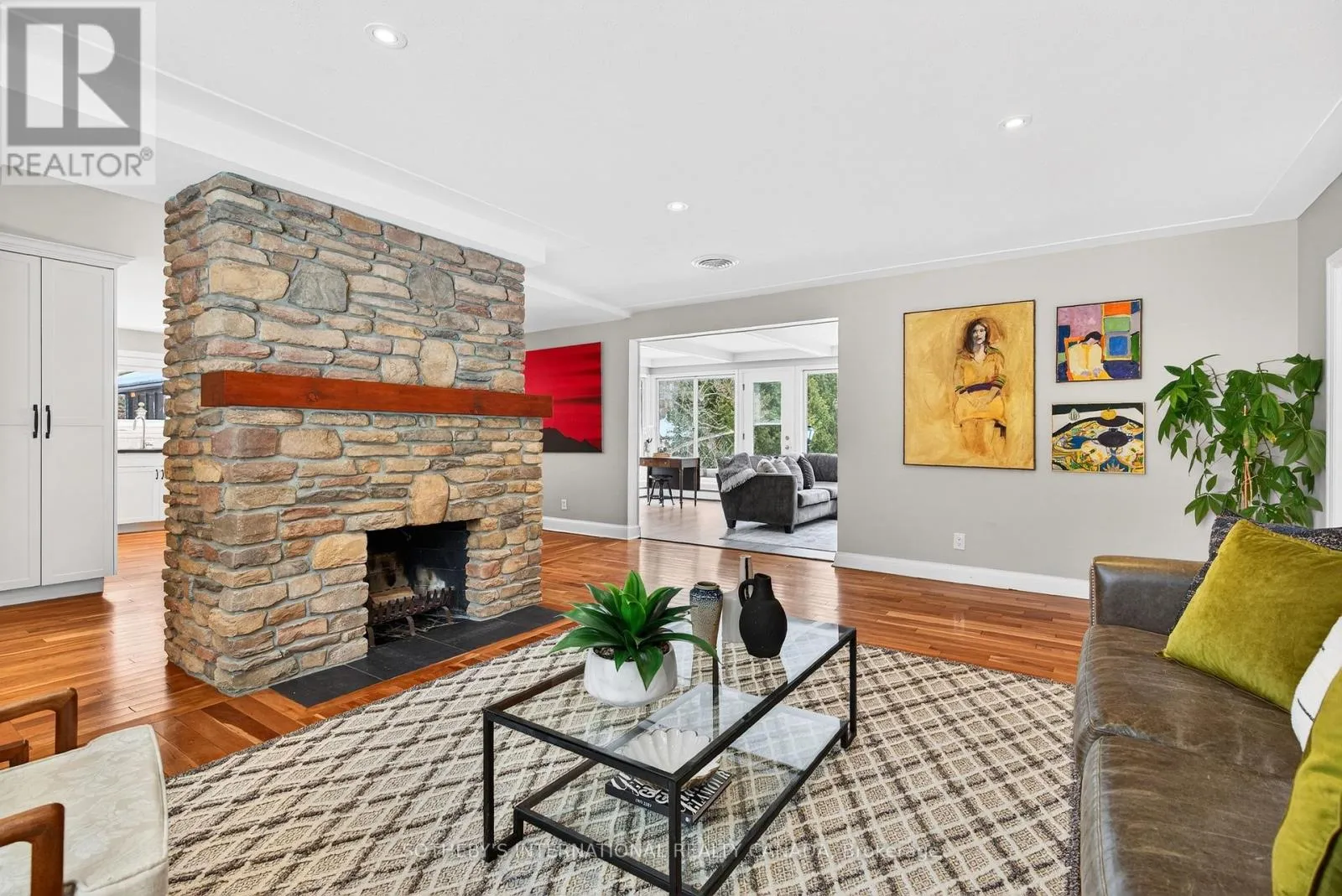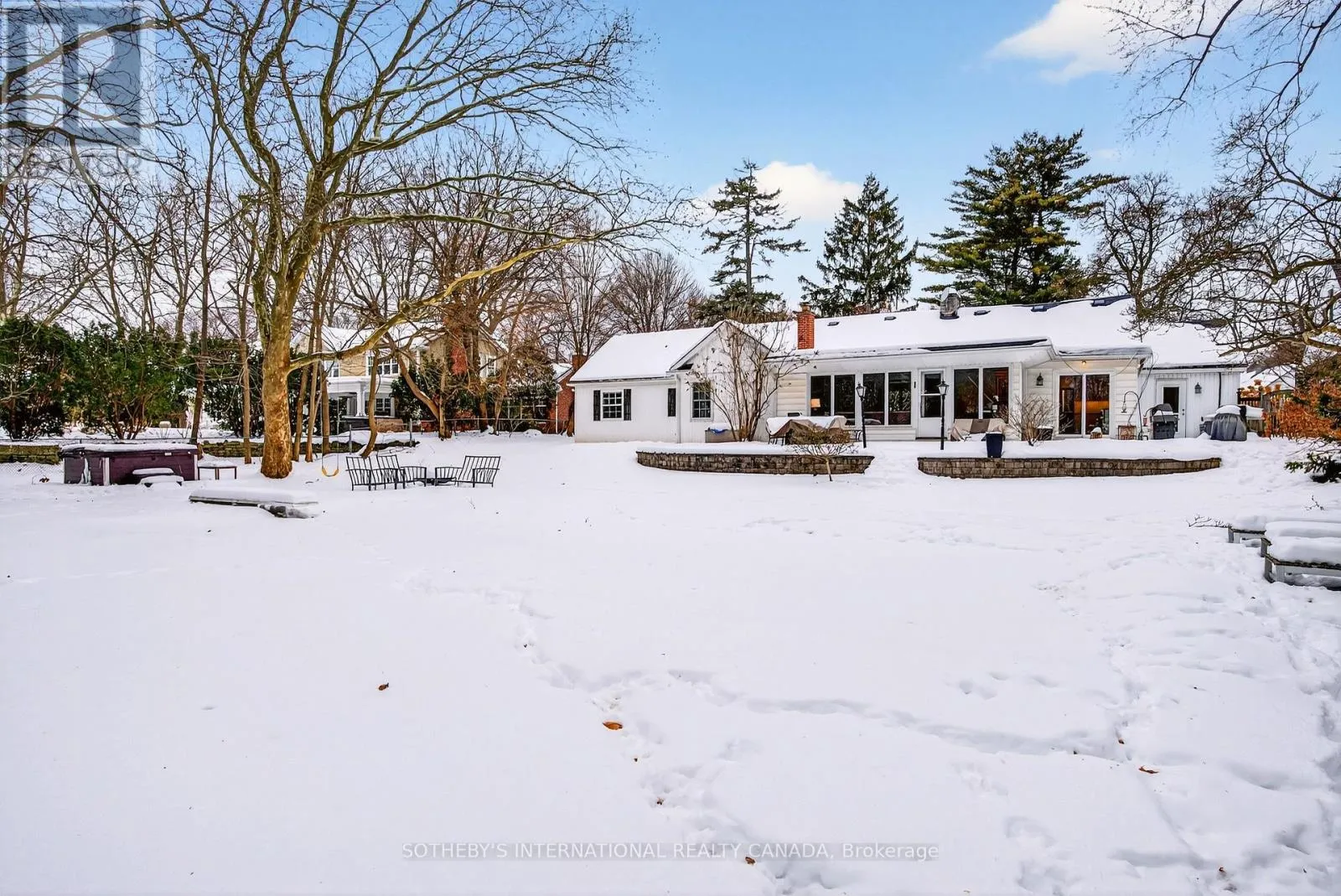 Cross Streets: North Shore to King Rd to Cedar Ave. ** Directions: King Road and Cedar Ave. In Aldershot, streets feel wider, trees taller, and life moves at a gentler pace. Neighbours stroll to the lake, cyclists head toward waterfront trails, and the Burlington Golf & Country Club sits just moments away - the kind of community families search for and rarely leave.Tucked along one of the neighbourhood's most desirable streets, this one-storey ranch-style home sits on an extraordinary lot rarely found this close to the lake - a property whose scale and privacy set it apart, with mature trees, expansive green space, and room to truly spread out. Thoughtfully updated for modern living, the west wing was fully renovated in 2025, while the remainder of the home has been carefully improved over time, creating a cohesive, move-in ready residence.Hardwood flooring flows through the principal living areas and bedrooms. The bright living room features a wood-burning fireplace and bay window, while the spacious kitchen offers a large island, quality appliances, and walkout access to the patio for easy entertaining. A sun-filled sunroom with panoramic windows and a second fireplace provides a relaxing year-round retreat overlooking the yard.The bedroom wing offers generous rooms, excellent built-in storage, and is served by a beautifully renovated bathroom with heated floors, while the layout also allows flexibility for multi-generational living. A functional mudroom/laundry area with garage and backyard access adds everyday convenience, and the oversized double garage with loft storage above offers valuable extra space.Outside, the remarkable backyard features a gunite inground pool, hot tub, and flagstone patio - an exceptional private setting just steps from the lake. (id:27476)