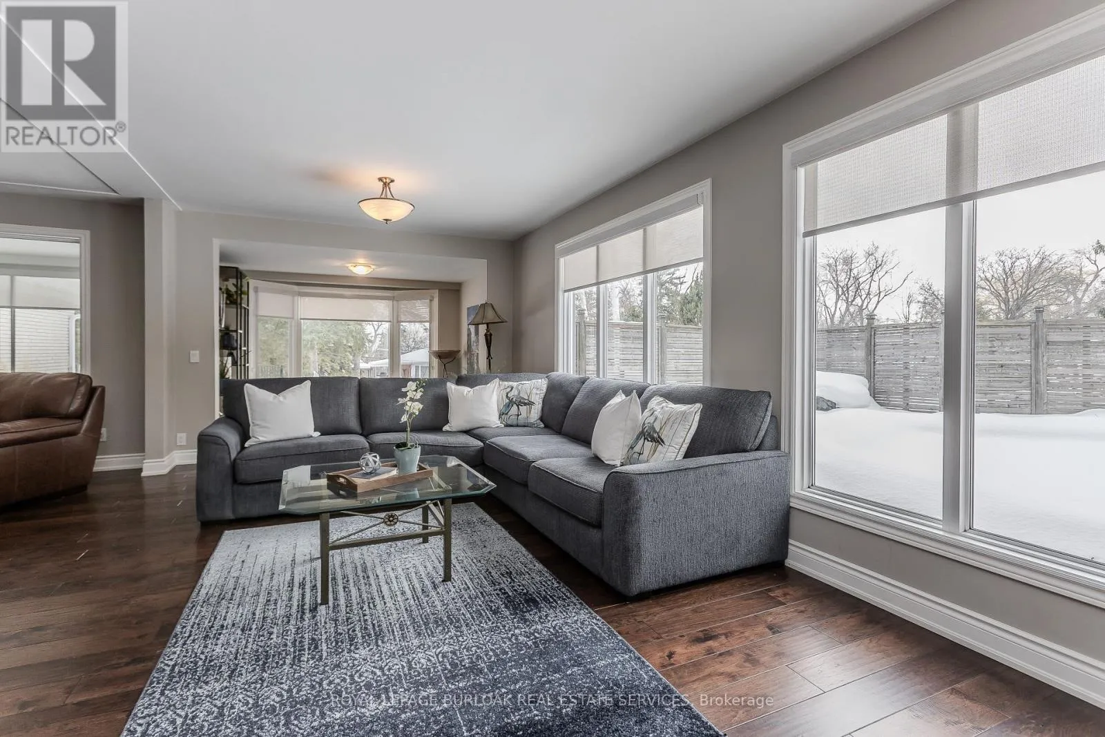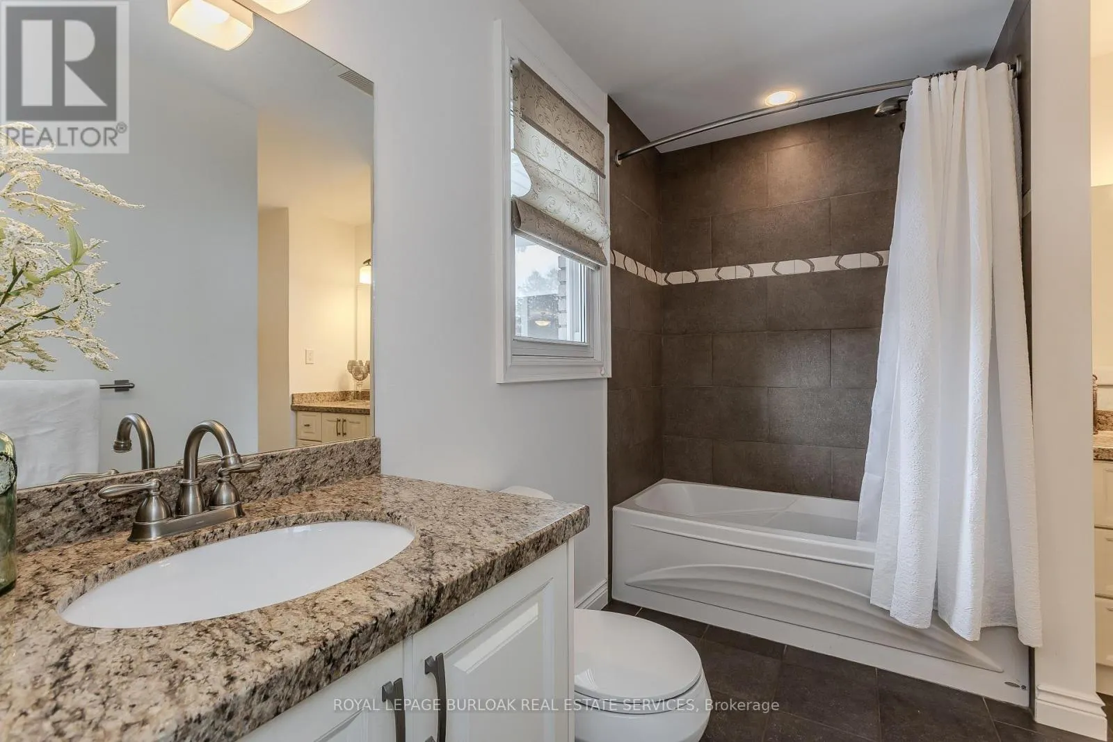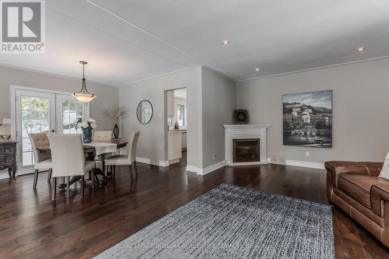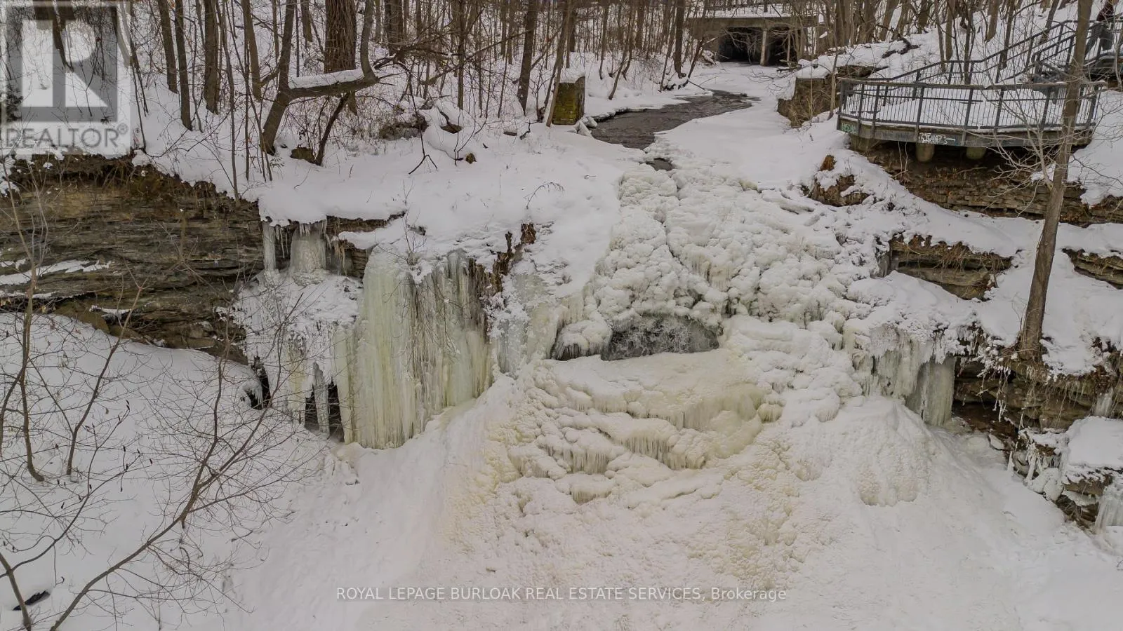 Cross Streets: Waterdown Road. ** Directions: Waterdown Road to Ireson Road. Key location for nature lovers, minutes from Smoky Hollow waterfalls, and countless trails to enjoy. This custom corner-lot ranch-style bungalow offers the perfect blend of nature and everyday convenience for families. With 3291sf of living space, this home delivers comfort and functionality, all surrounded by mature trees and peaceful scenery while still being close to daily amenities, GO Station, Hwys, Waterdown, Burlington and Hamilton. Beautiful curb appeal welcomes you with manicured gardens, glass-enclosed front porch, and large side yard w/ a wrought iron fence. Rare 9-car parking provides incredible flexibility for families or guests. Inside, an open-concept layout showcases hardwood flooring, large windows, and tons of natural light throughout. The living room features a fireplace, while the dining room offers a walkout to the yard. A den w/ a bay window creates an ideal reading nook or workspace. The spacious kitchen is designed for family life with tile backsplash, granite countertops, custom cabinetry, breakfast bar, and Whirlpool appliances, flowing seamlessly into a warm sitting room w/ a stone-surround gas fireplace. The main level features a spacious primary retreat w/ walk-in closet and private 4pc ensuite with dual vanity, along with three additional well-sized bedrooms and a modern 3pc bath with walk-in shower - ideal for busy family mornings. The finished basement expands your living space with laminate flooring, a large rec room with fireplace, dedicated home gym, and an additional bedroom - perfect for teens, guests, or multi-generational living. Step outside to an expansive backyard designed for making memories, featuring endless green space, a shed, and a large wood deck with pergola for relaxing or entertaining. The fenced above-ground pool with surrounding deck creates the ultimate summer hangout for kids and family gatherings. A rare opportunity to enjoy privacy, and nature - all while staying connected to everything your family needs. (id:27476)