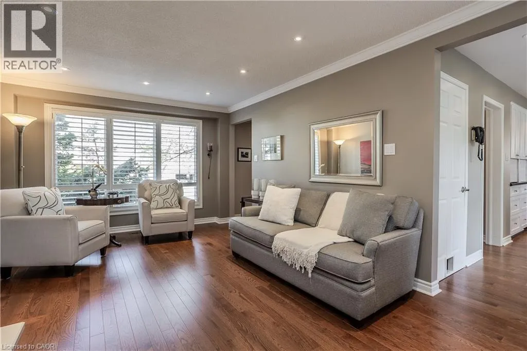 Four Seasons Dr to Crofton Way to Heather Hills Dr Welcome to your forever home in the quiet, exclusive Tyandaga communityâone of Burlingtonâs most sought-after neighbourhoods! Surrounded by mature trees, miles of trails just down the road, parks and just minutes to downtown, the lake, Tyandaga Golf Course and major highways, this location offers the perfect balance of nature and convenience. This beautiful 2-storey detached home sits on a stunning, professionally landscaped pool-sized lot and offers over 3,122 sq ft of total finished living space. With a double car garage (inside entry) and driveway parking for four, there's room for the whole family and guests. Step inside to find rich hardwood floors throughout, a stylish eat-in kitchen with granite counters, stainless steel appliances, subway tile backsplash, pot lights and a breakfast barâideal for casual family meals. The sunlit living room with a cozy wood-burning fireplace flows seamlessly from the kitchen, while a separate dining room provides space for special gatherings. The oversized family room is a true retreatâfeaturing a gas fireplace, hardwood floors and a walkout to a private balcony overlooking the yard. Upstairs, the spacious primary suite offers a 4-piece ensuite, while the additional bedrooms are generously sized and share an updated 3-piece bath. The fully finished lower level adds even more living space with engineered hardwood floorsâperfect for a rec room, gym, or home office. The backyard is your private oasis, fully fenced with interlock patio and lush gardensâready for summer living! This is the lifestyle youâve been waiting for. (id:27476)