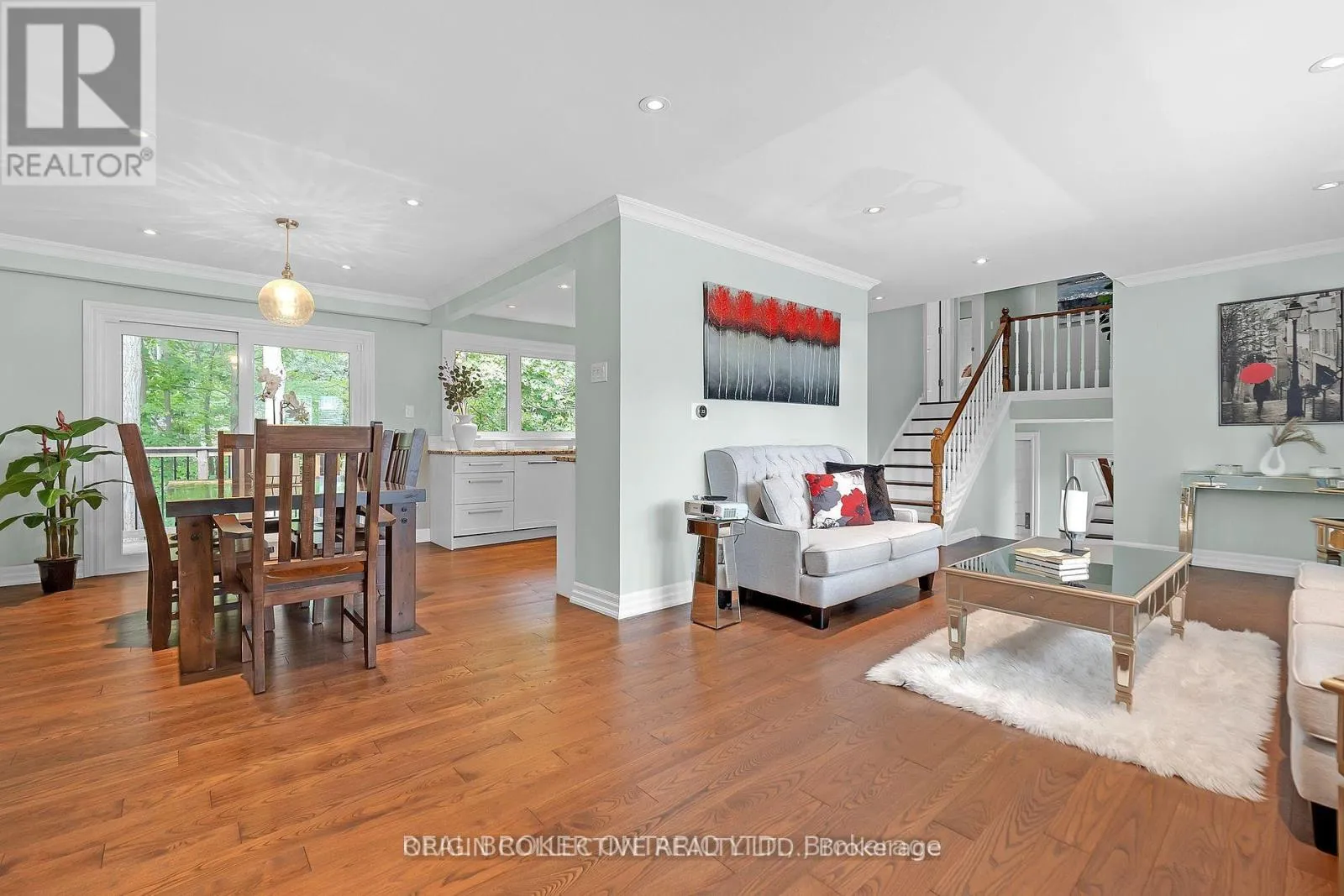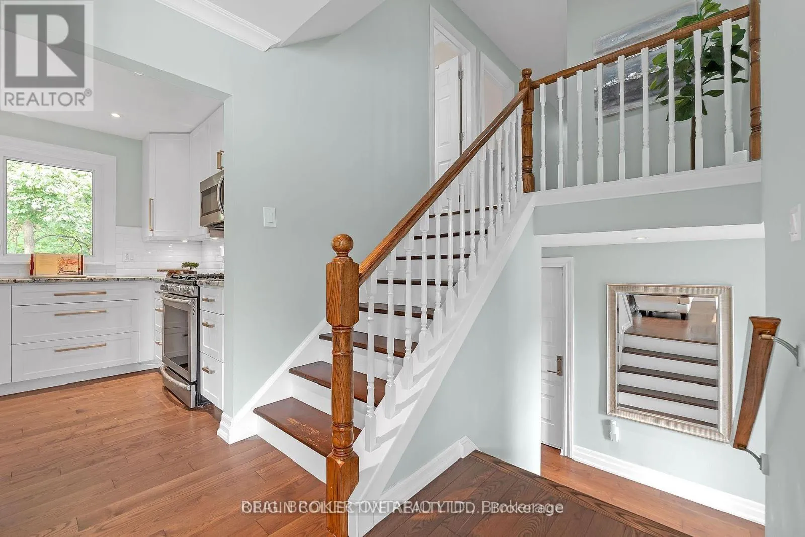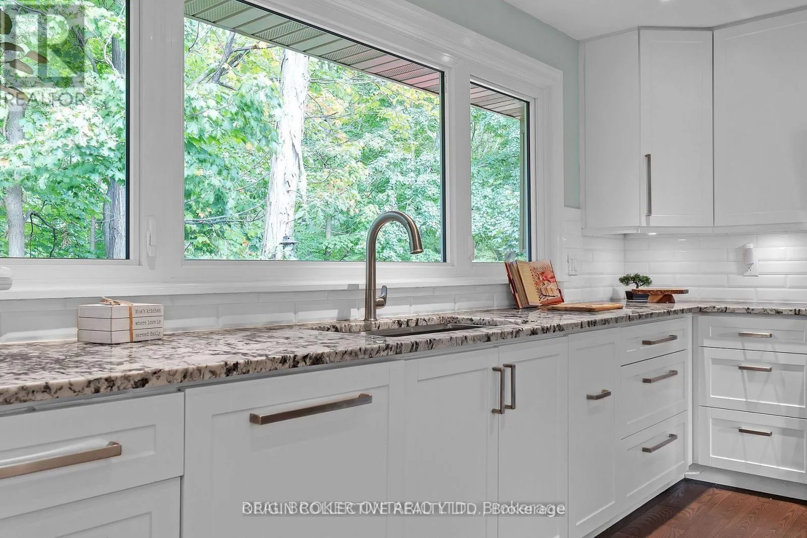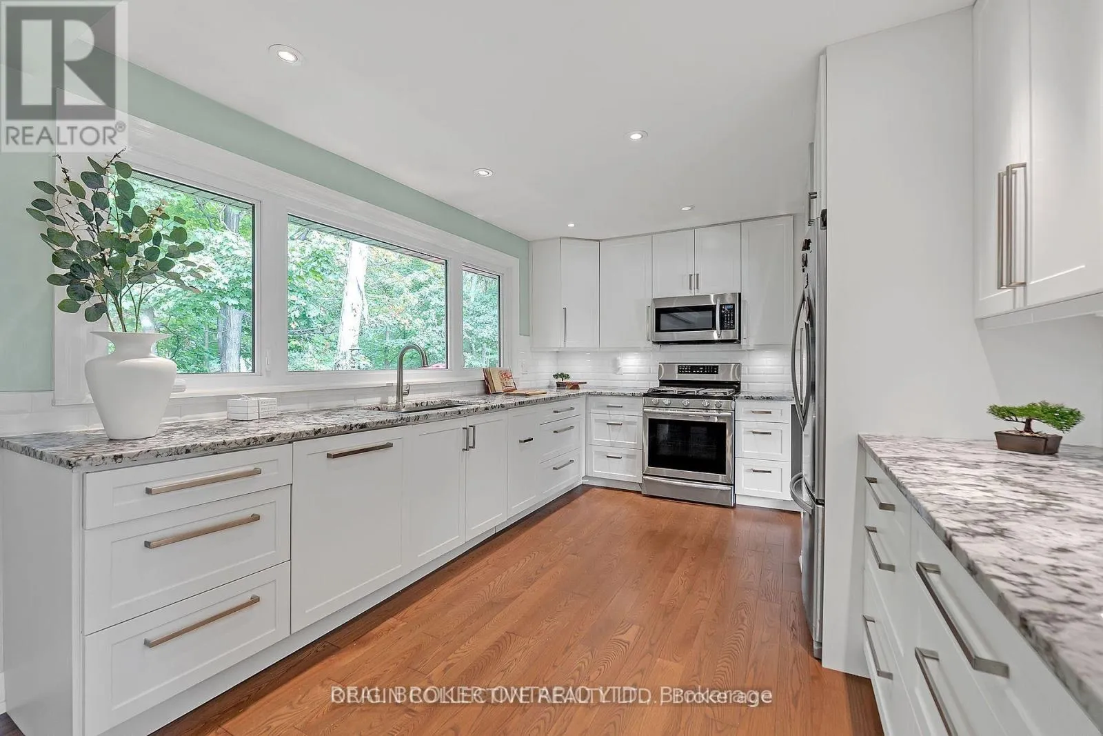 Cross Streets: Heather Hills Dr / Skyview Dr. ** Directions: North Service to Skyview Dr. Nestled on a premium ravine lot in the highly sought-after Tyandaga community, this exceptional 4-bedroom, 3-bathroom residence offers refined living in a private, natural setting.The main level showcases solid ash hardwood flooring, designer LED pot lighting, and an expansive open-concept layout ideal for both elegant entertaining and everyday comfort. The gourmet kitchen features granite countertops, a statement large-basin sink with hands-free faucet, stainless steel appliances, and a gas range - seamlessly connecting to the living space.Upstairs, four generously sized bedrooms offer abundant natural light. The primary suite is complemented by a spa-inspired ensuite with heated floors, a frameless glass shower, and a heated LED mirror.The fully finished above-grade lower level includes a spacious recreation room with walkout to a multi-level deck overlooking the ravine - a rare and private backdrop perfect for hosting or unwinding. Minutes to downtown Burlington, top-tier schools, golf, scenic trails, major highways, and Aldershot GO. An exceptional opportunity to lease a refined home in one of Burlington's most prestigious neighbourhoods. ***Photos are from previous listing; property currently tenant-occupied*** (id:27476)