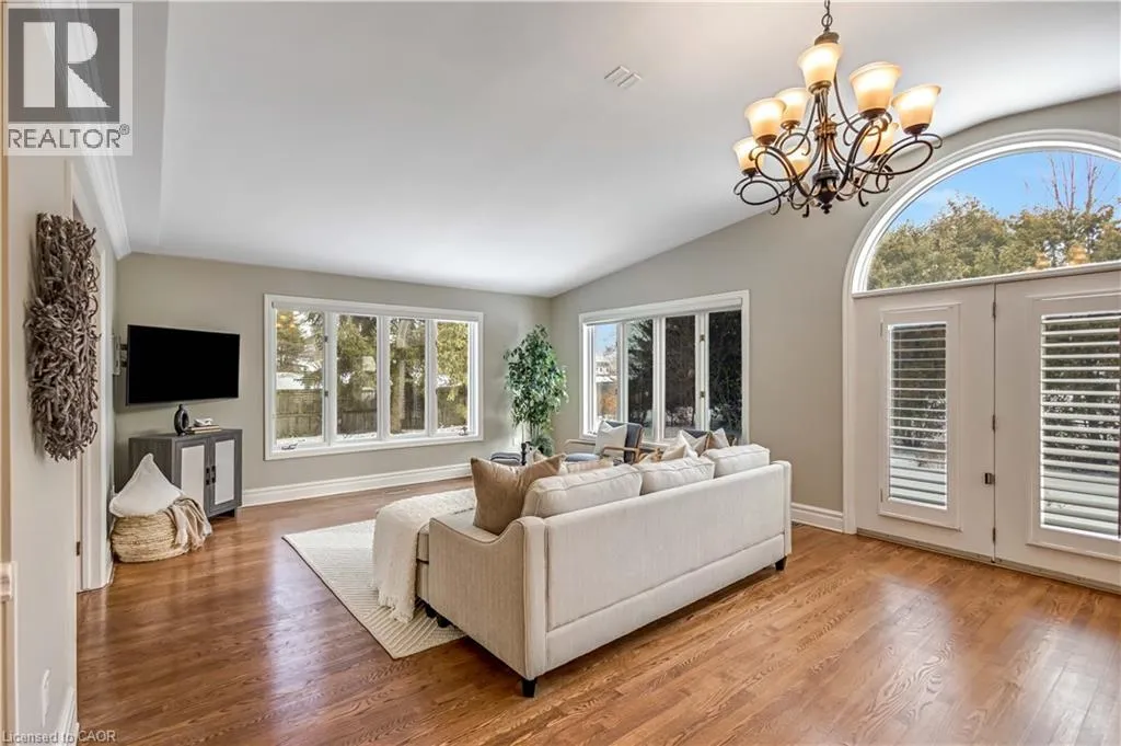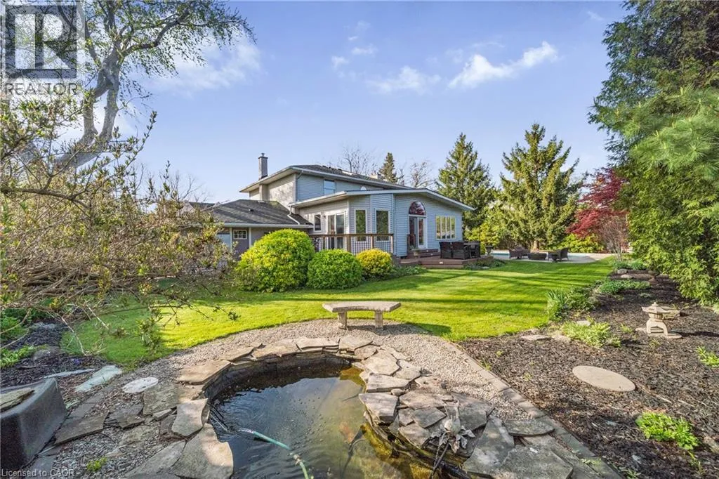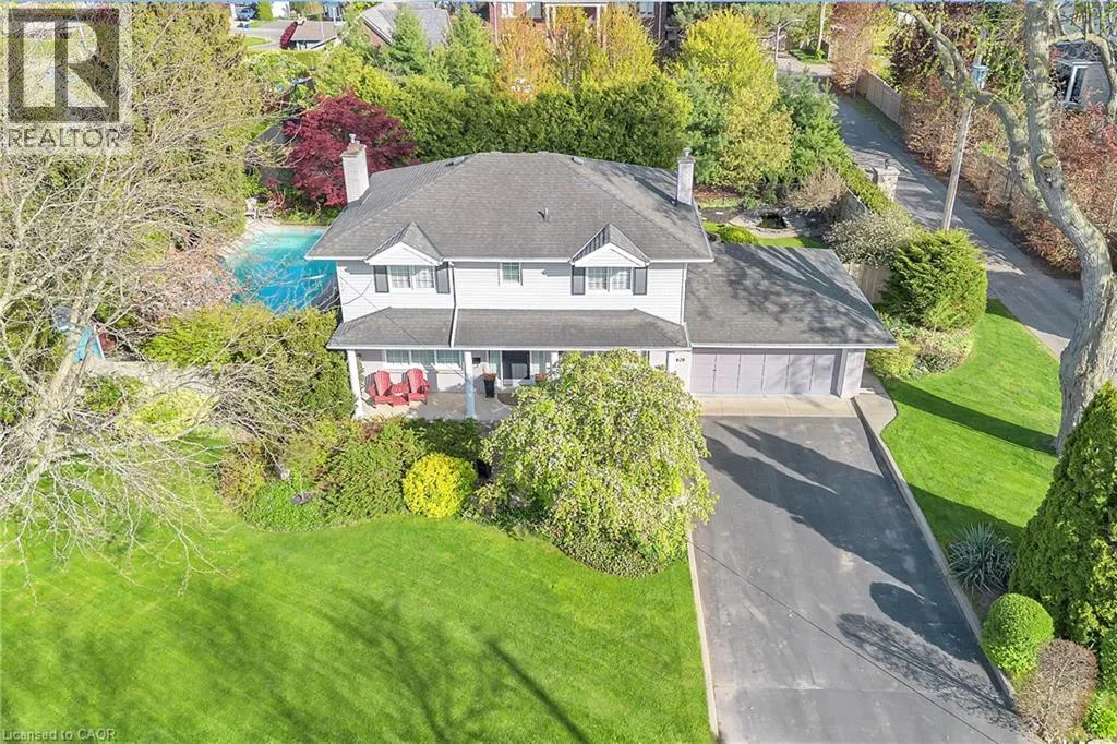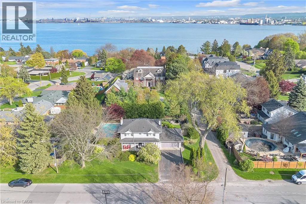 Plains Rd W to Danforth Ave. Corner of Danforth and Hendrie Welcome to this meticulously maintained two-storey home in the highly coveted and peaceful Aldershot South community. Offering over 3,200 sq ft of beautifully finished living space, this stunning 3+1 bedroom, 2.5 bathroom home perfectly blends elegance, comfort, and everyday functionality. Set on a beautifully landscaped lot designed for exceptional privacy, this home offers true tranquility in the city. Start your mornings on the charming covered front porch, where friendly neighbours and a strong sense of community make this neighbourhood so special. The bright, chefâs kitchen is designed to impress with quartz countertops, breakfast bar, high-end appliances, and a separate beverage fridge. The spectacular family room offers cathedral ceilings, two skylights, and a dramatic wall of windows. Upstairs, retreat to the spacious primary suite alongside two generously sized bedrooms. The spa-inspired 5-piece bathroom features a glass-enclosed shower, double quartz vanity, and a luxurious BainUltra freestanding soaker tub with massaging jets and chromatherapy lighting. The finished basement provides incredible versatility with a large rec room plus an oversized bedroom and an adjacent 3-piece bathroom, perfect for guests, teens, or multi-generational living. Other features include: hardwood floors, classic wainscoting, and elegant crown moulding throughout. The separate dining room showcases a striking coffered ceiling, ideal for hosting memorable gatherings. Step outside to your private backyard oasis featuring a tranquil pond, lush gardens, and a two-tier composite deck. The impressive 36â x 18â in-ground gunite saltwater pool with non-slip Rubaroc surround is ready for unforgettable summer entertaining. An in-ground sprinkler system keeps the grounds pristine with ease. Additional highlights include a double garage and private driveway with parking for 6 vehicles. Enjoy this unbeatable location just steps to the RBG, lakefront trails, LaSalle Park & Spencer Smith Park (id:27476)