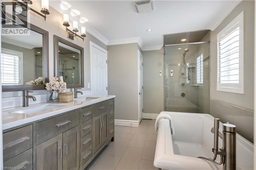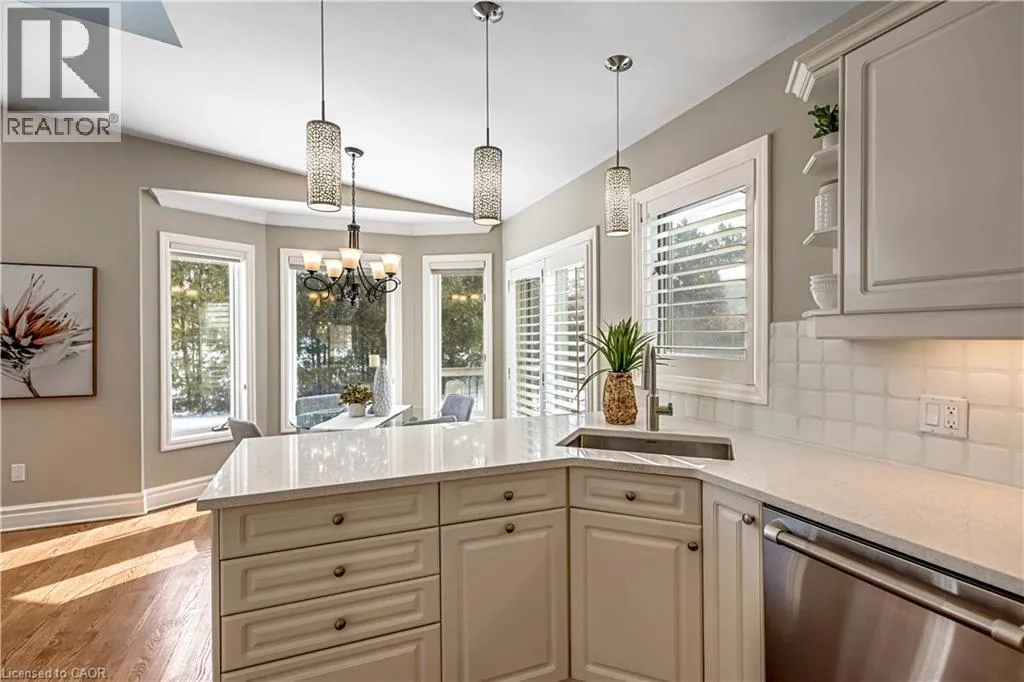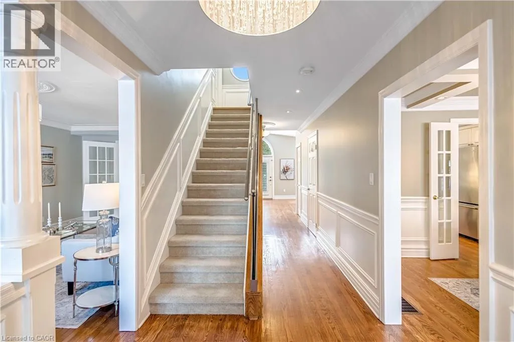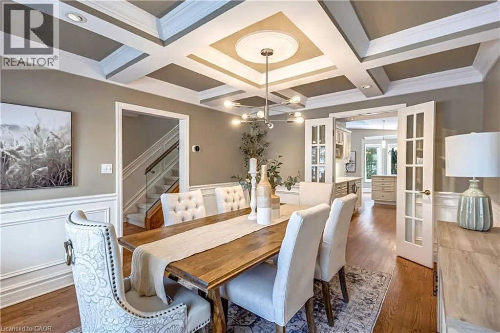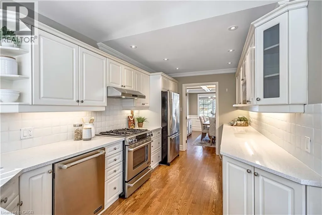 Plains Rd W to Danforth Ave. Corner of Danforth and Hendrie Welcome to this meticulously maintained two-storey home in the highly coveted and peaceful Aldershot South community. Offering over 3,200 sq ft of beautifully finished living space, this stunning 3+1 bedroom, 2.5 bathroom home perfectly blends elegance, comfort, and everyday functionality. Set on a beautifully landscaped lot designed for exceptional privacy, this home offers true tranquility in the city. Start your mornings on the charming covered front porch, where friendly neighbours and a strong sense of community make this neighbourhood so special. The bright, chefâs kitchen is designed to impress with quartz countertops, breakfast bar, high-end appliances, and a separate beverage fridge. The spectacular family room offers cathedral ceilings, two skylights, and a dramatic wall of windows. Upstairs, retreat to the spacious primary suite alongside two generously sized bedrooms. The spa-inspired 5-piece bathroom features a glass-enclosed shower, double quartz vanity, and a luxurious BainUltra freestanding soaker tub with massaging jets and chromatherapy lighting. The finished basement provides incredible versatility with a large rec room plus an oversized bedroom and an adjacent 3-piece bathroom, perfect for guests, teens, or multi-generational living. Other features include: hardwood floors, classic wainscoting, and elegant crown moulding throughout. The separate dining room showcases a striking coffered ceiling, ideal for hosting memorable gatherings. Step outside to your private backyard oasis featuring a tranquil pond, lush gardens, and a two-tier composite deck. The impressive 36â x 18â in-ground gunite saltwater pool with non-slip Rubaroc surround is ready for unforgettable summer entertaining. An in-ground sprinkler system keeps the grounds pristine with ease. Additional highlights include a double garage and private driveway with parking for 6 vehicles. Enjoy this unbeatable location just steps to the RBG, lakefront trails, LaSalle Park & Spencer Smith Park (id:27476)