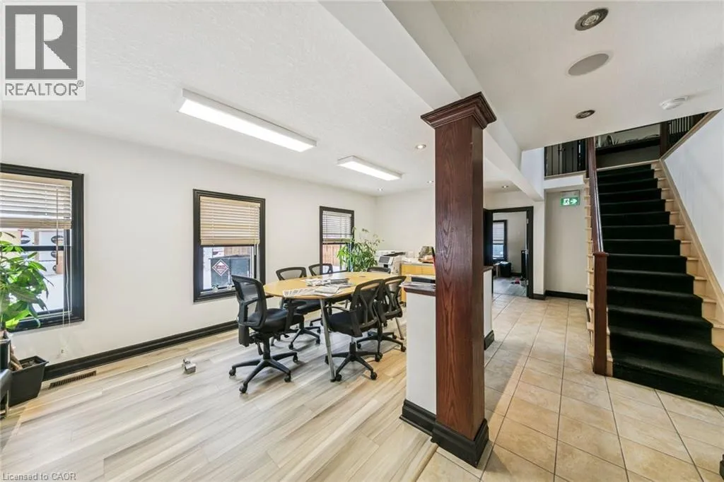 Ontario Street & Locust Street Well-appointed 2,089 sq ft office space with a functional layout, including open workspace and private offices. Features a built-out kitchen and additional basement storage space (not included in square footage). Bright interior with ample windows and skylight. Prominent corner property offering excellent exposure. Accessible location with many nearby amenities. (id:27476)