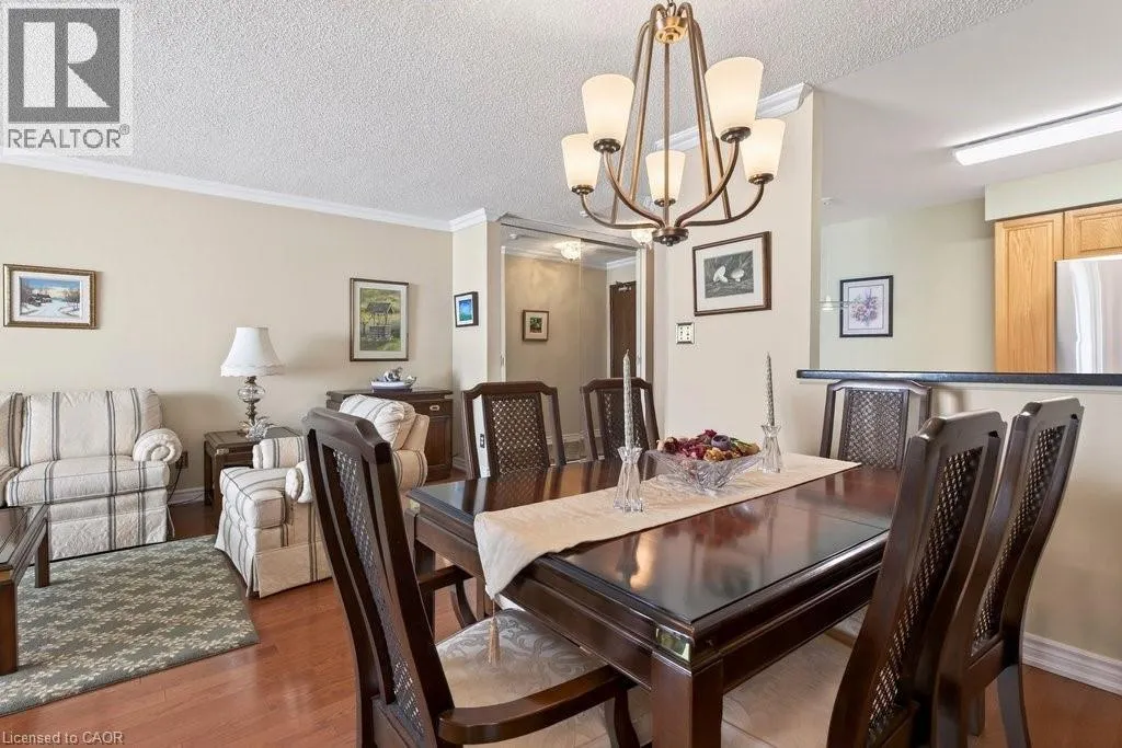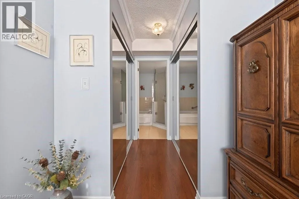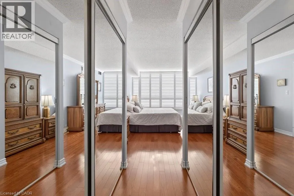 Welcome to elevated living at the Grande Regency in the heart of Burlington! Perched on the 16th floor and boasting the sought-after Richmond floor plan, this impeccable 2-bedroom plus den, 2-bathroom condo offers expansive views and an exceptional lifestyle just moments from the cityâs vibrant waterfront and downtown core. Flooded with natural light, this beautifully maintained suite features rich hardwood floors throughout, crown moulding, and elegant California shutters. The thoughtfully designed layout boasts a spacious open-concept living and dining area - perfect for entertaining or relaxing. The large kitchen offers ample cabinetry and workspace with granite counters. The generous primary bedroom includes a private ensuite 4-piece bath with soaker tub and marble counter, abundant closet space, and laundry, while the second bedroom, den, and 3-piece bath provide flexibility for guests, a home office, or family living. The Grande Regency also features extensive amenities including an outdoor pool, tennis courts, library, party room, and concierge for safety. Step outside and find yourself just minutes from the charm and convenience of downtown Burlington, the scenic trails and waterfront at Spencer Smith Park, Maple Trail running right behind the building, boutique shopping, dining, festivals, and easy access to major highways and transit. Whether youâre downsizing or seeking an ideal urban retreat, this stunning 16th-floor residence offers comfort, style, and an unbeatable location. Donât miss your opportunity to call this exceptional condo home! (id:27476)
