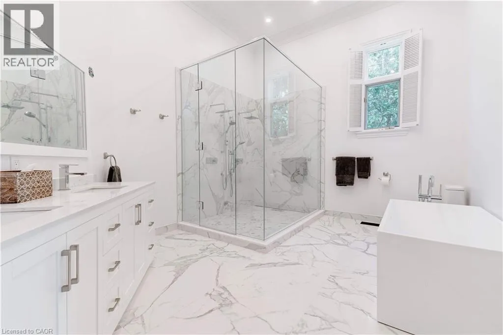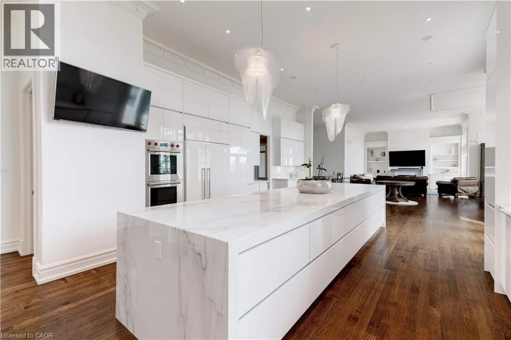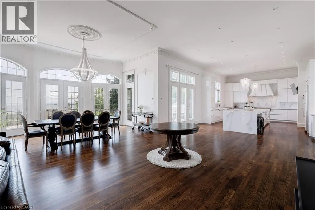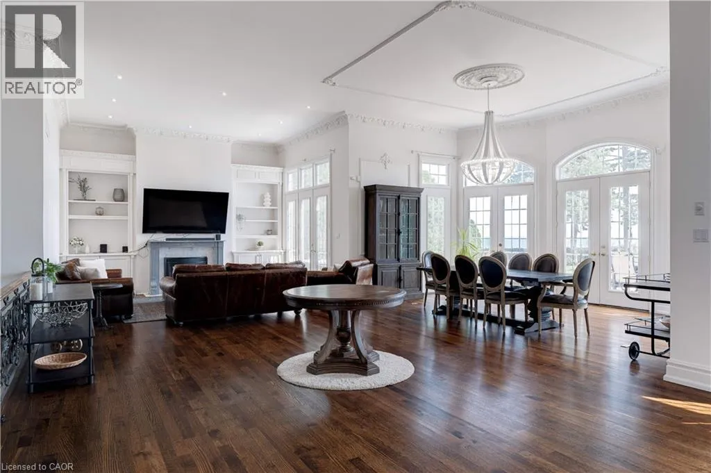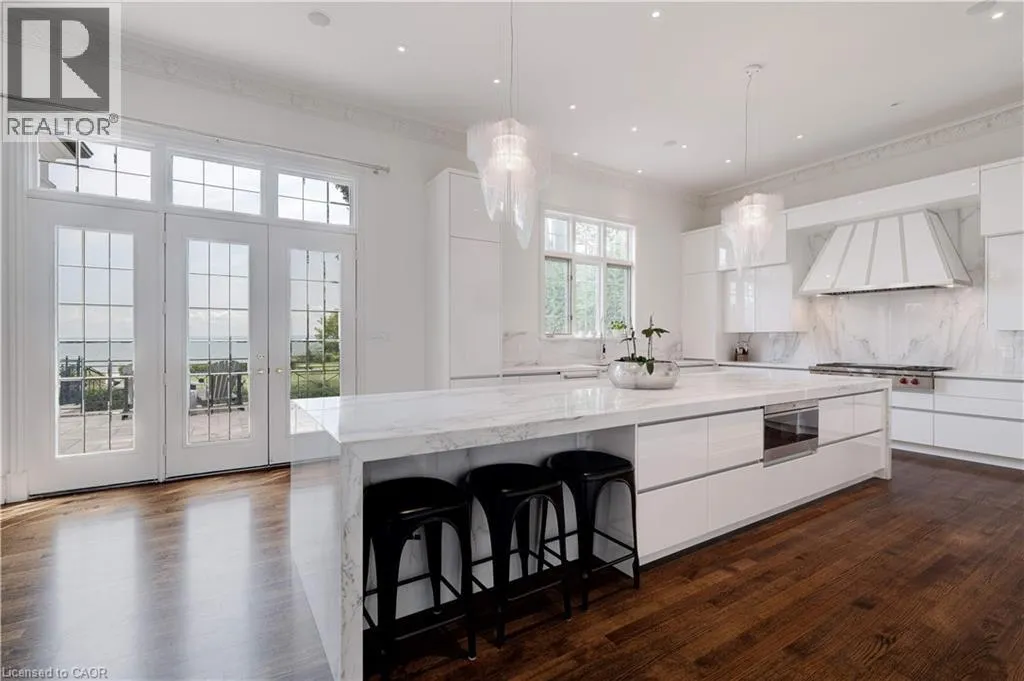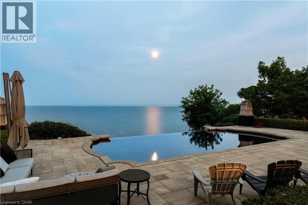 South on Appleby to Lakeshore rd. Right on Lakeshore. Welcome to 4410 Lakeshore Road, a stunning 1.2-acre lakefront estate in Burlingtonâs sought-after Shoreacres neighbourhood. This custom-built bungalow offers 5 bedrooms (3 on the main level, 2 on the lower level) and 4 bathrooms, with 4,365 sq. ft. of living space on the main floor alone. Inside, you'll find 12-foot ceilings, detailed crown mouldings, and an elegant yet inviting layout. The expansive great room and chefâs kitchen are perfect for entertaining, while the main-floor primary suite provides stunning lake views. The walk-up lower level features a second kitchen, spacious recreation room, and additional bedroomsâideal for guests or multigenerational living. Step outside to your private oasis: a sparkling inground pool, lush landscaping, and direct access to Lake Ontario, perfect for serene mornings and captivating sunsets. With a detached 2-car garage and parking for 30+, this property offers the ultimate in both luxury and practicality. Located near top-rated schools, parks, and upscale amenities, this exclusive estate combines privacy with convenience in one of Burlington's finest communities. (id:27476)