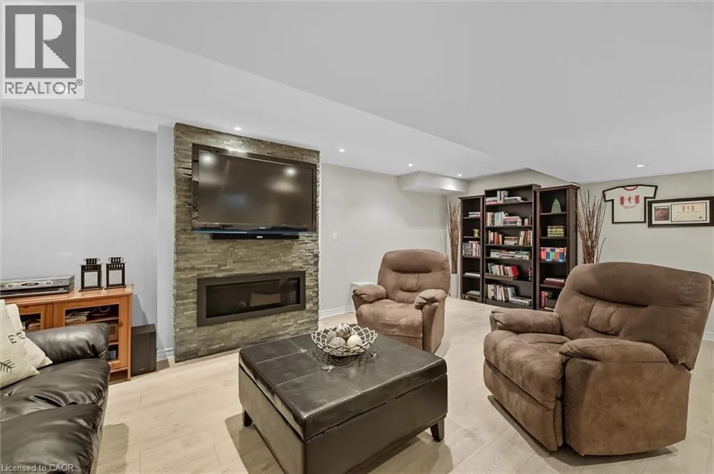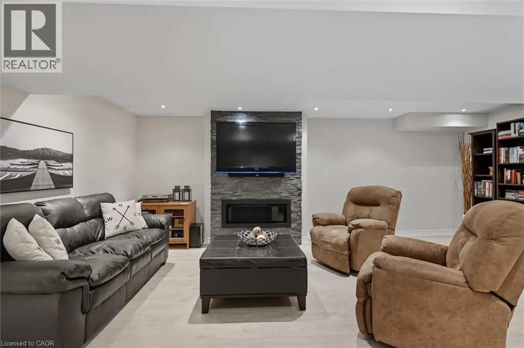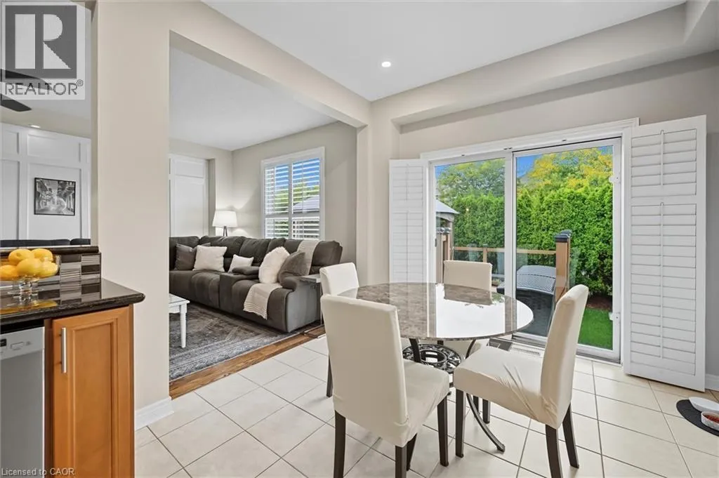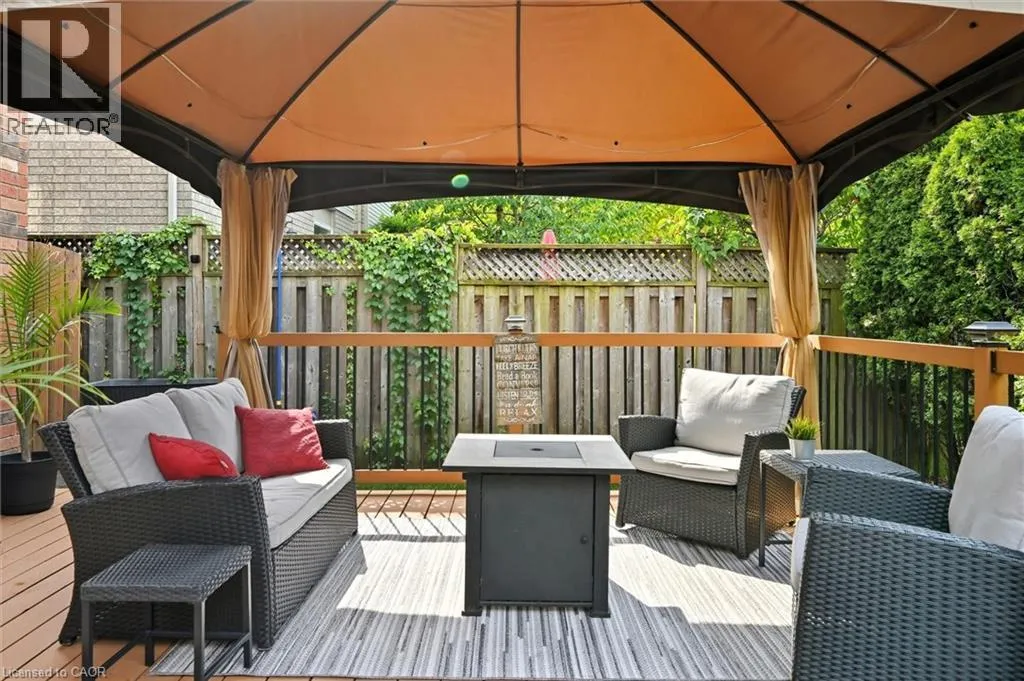 Dryden Ave to Emerson Dr to Stokes Lane Welcome to this absolute turnkey 4 bedroom, 4 bathroom family home located in Burlingtonâs highly desirable Orchard community. Perfectly positioned backing onto a greenbelt with a woodland walking trail, this bright spacious home offers the ideal blend of comfort, function, and style, with thoughtful upgrades throughout. NOTE the Sq.Footage of this BEAUTY! Open concept main level features custom wood wall/entry bench, 9âfoot ceilings, warm toned hardwood floors, hardwood staircase w/black iron like spindles and lots of natural light. Fabulous eat-in kitchen boasts loads of cabinetry and counter space, pot lighting, modern fixtures, and LG stainless-steel appliances as well as a walk out to deck, private yard and fence to walking trail. Updated powder room with tile flooring, vanity, and wainscoting. Upstairs, youâll find 4 really good size bedrooms and 2 bathrooms. You will love the super spacious primary suite with large walk-in closet and a newly renovated ensuite with quartz counter, custom glass shower (2025). Updates include three modern double-flush toilets. The finished basement expands your living space with a cozy gas fireplace and stone feature wall, plus a convenient powder room, offering a great retreat for family movie nights or entertaining guests. There is also lots of storage here. Outdoor living offers a 400 sq ft two-level cedar deck (2013), meticulously maintained, complete with a 10âx12â covered gazebo with curtains and durable polyester roof â ideal for relaxing or entertaining. Full roof done in (2022) with transferable warranties for peace of mind. Beyond your yard, enjoy direct access to a walking trail that links through the Orchard to Pathfinder Park and Orchard Community Park, a family-friendly network of paths, playfields, and the new leash-free area. Close to excellent schools, parks, shopping, restaurants, and commuter routes, this home is a rare find in one of Burlingtonâs most sought-after communities! (id:27476)