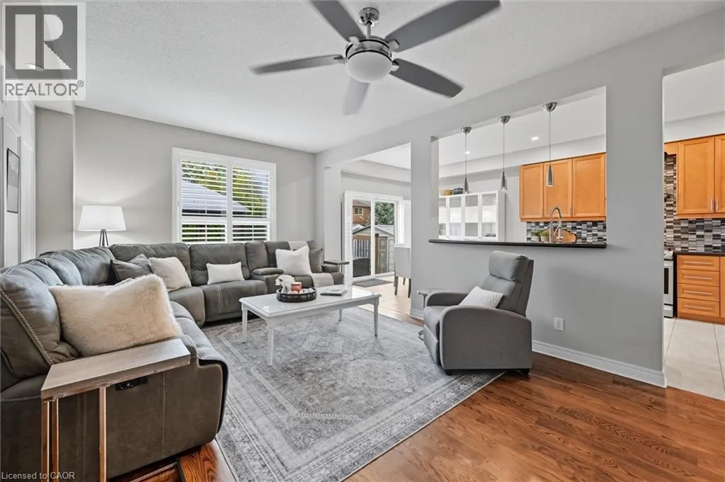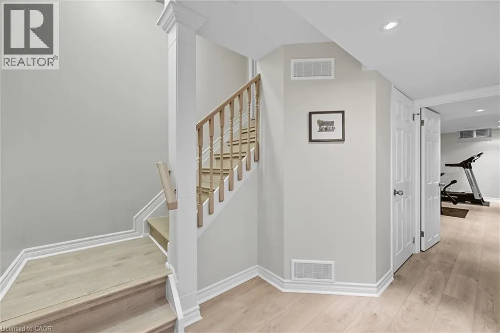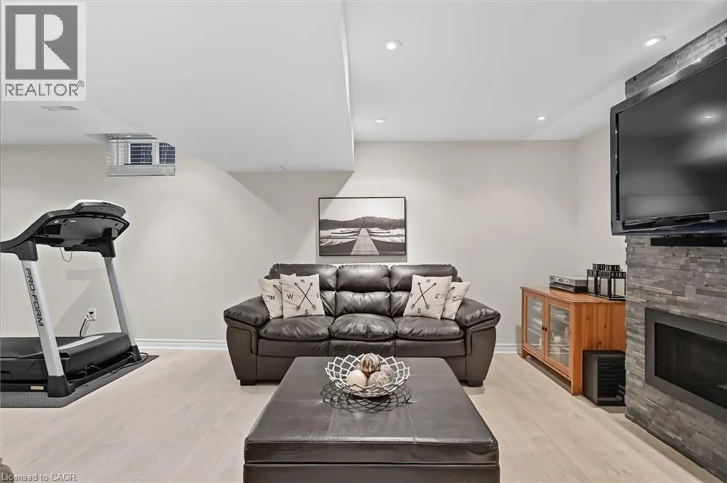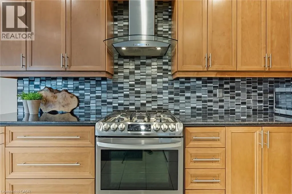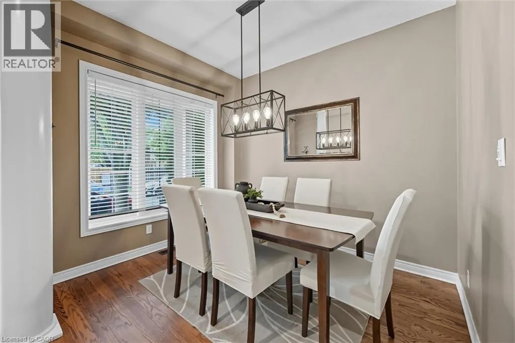 Dryden Ave to Emerson Dr to Stokes Lane Welcome to this absolute turnkey 4 bedroom, 4 bathroom family home located in Burlingtonâs highly desirable Orchard community. Perfectly positioned backing onto a greenbelt with a woodland walking trail, this bright spacious home offers the ideal blend of comfort, function, and style, with thoughtful upgrades throughout. NOTE the Sq.Footage of this BEAUTY! Open concept main level features custom wood wall/entry bench, 9âfoot ceilings, warm toned hardwood floors, hardwood staircase w/black iron like spindles and lots of natural light. Fabulous eat-in kitchen boasts loads of cabinetry and counter space, pot lighting, modern fixtures, and LG stainless-steel appliances as well as a walk out to deck, private yard and fence to walking trail. Updated powder room with tile flooring, vanity, and wainscoting. Upstairs, youâll find 4 really good size bedrooms and 2 bathrooms. You will love the super spacious primary suite with large walk-in closet and a newly renovated ensuite with quartz counter, custom glass shower (2025). Updates include three modern double-flush toilets. The finished basement expands your living space with a cozy gas fireplace and stone feature wall, plus a convenient powder room, offering a great retreat for family movie nights or entertaining guests. There is also lots of storage here. Outdoor living offers a 400 sq ft two-level cedar deck (2013), meticulously maintained, complete with a 10âx12â covered gazebo with curtains and durable polyester roof â ideal for relaxing or entertaining. Full roof done in (2022) with transferable warranties for peace of mind. Beyond your yard, enjoy direct access to a walking trail that links through the Orchard to Pathfinder Park and Orchard Community Park, a family-friendly network of paths, playfields, and the new leash-free area. Close to excellent schools, parks, shopping, restaurants, and commuter routes, this home is a rare find in one of Burlingtonâs most sought-after communities! (id:27476)