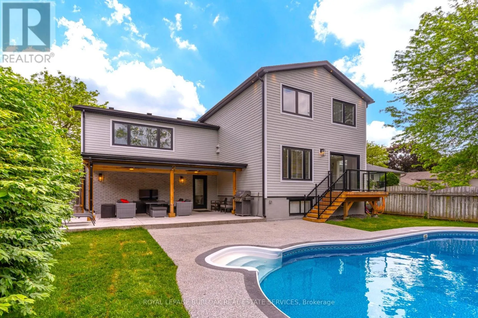 Cross Streets: Appleby/Lakeshore. ** Directions: Appleby & Lakeshore. Boasting a massive 1,500 sq ft addition, this 2023 custom rebuild offers nearly 3,500 sq ft of meticulously finished living space designed for the modern family. The main floor is a masterclass in functional luxury, featuring wide-plank oak floors, open-riser stairs, and a chef's kitchen with a 10-ft quartz island, double ovens, and a dedicated coffee bar. One of the home's standout features is the 550 sq ft bonus room-a light-filled sanctuary perfect for a home theatre or playroom, which the seller is even willing to convert into a 4th bedroom suite to fit your needs. Upstairs, you'll find three oversized bedrooms, including a primary retreat with a spa-style ensuite and convenient top-floor laundry. The versatility continues in the finished lower level, currently a self-contained suite perfect for guests or teens, with the option for the seller to remove the kitchen to create a custom rec room or office. Step outside to your private salt water pool oasis equipped with all-new 2023 hardware and a stunning 350 sq ft covered porch with cedar accents and cooling fans. Every major component is brand new-roof, HVAC, electrical, plumbing, and windows-all wrapped in premium Fraser Wood siding on a peaceful street. It's a rare combination of scale, style, and peace of mind, built for real life without the "to-do" list. (id:27476)