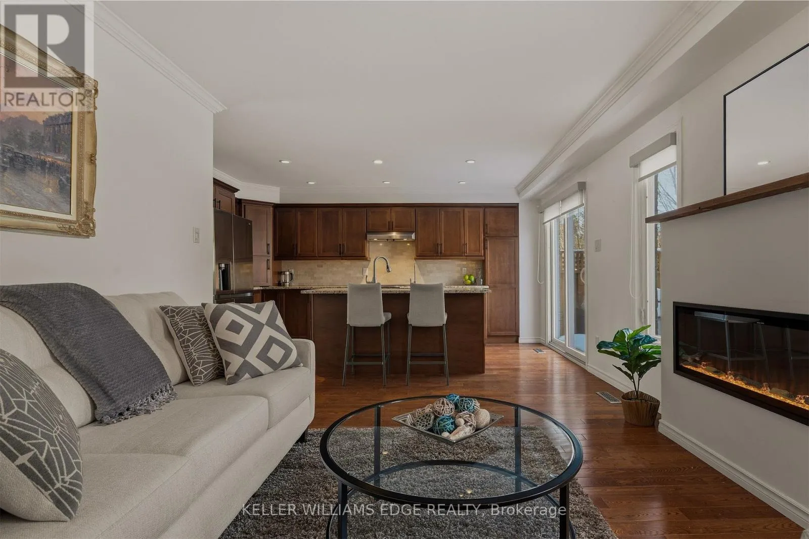 Cross Streets: Hampton Heath Rd. ** Directions: On Lakeshore between Burloak and White Pines. Executive townhome offering over 1,800 sq. ft. of finished living space in a prime location just steps to the lake and everyday amenities.The main level has been thoughtfully upgraded and features a beautiful chef's kitchen with custom cabinetry, granite countertops, striking backsplash, oversized island, pot lighting and a contemporary fireplace. A walk-out leads to your private sun deck and BBQ area, perfect for relaxing or entertaining. With two separate sitting areas and a spacious dining room, the layout comfortably accommodates gatherings of any size.The second level offers two generous primary bedrooms, each with recently renovated spa-like ensuites, enhanced by a bright open layout and skylights that fill the space with natural light.The fully finished lower level provides exceptional versatility with an oversized recreation room, third bedroom, 2-piece bath and an abundance of storage/utility space.Ideal for families, downsizers, retirees or anyone seeking a low-maintenance lock-and-leave lifestyle. Move-in ready with newer furnace, A/C and water purification system.Condo fees include landscaping, salting and snow removal to your door, with driveway replacement scheduled for 2026. Conveniently located near the GO Train, highway access, Lake Ontario, shopping, restaurants and banking. (id:27476)