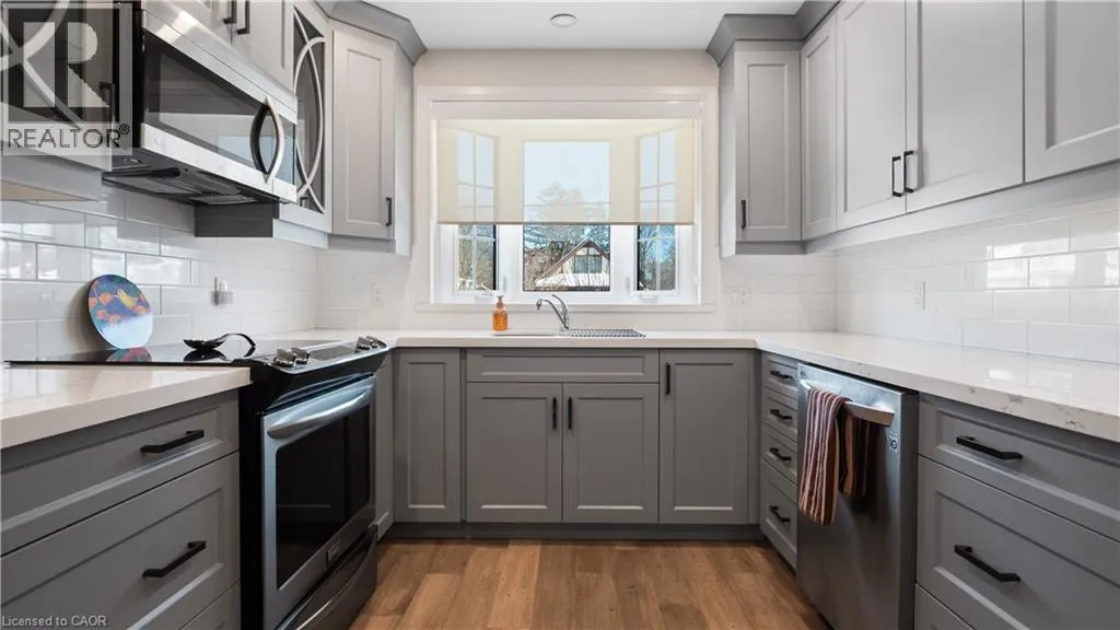 Plains Rd E, North on Cedarwood Place Welcome to 1032 Cedarwood Place, a fully renovated, move-in-ready bungalow on a quiet street in Burlingtonâs highly desirable Aldershot neighbourhoodâan area known for its family-friendly feel, and proximity to amenities. Sitting on a rare 50â x 222â lot with mature trees, this property offers space, privacy, and flexibility. Renovated from top to bottom, this 2+1 bedroom, 2-bath, 4-garage home allows buyers to move in with confidence. The main level features a sleek custom kitchen with high-end appliances, engineered hardwood flooring throughout, and a spacious primary bedroom with a modern ensuite and custom shower. A second bedroom on the main floor provides room for growing families, guests, or a dedicated home office. The fully finished lower level adds real value in todayâs market, offering a self-contained 1-bedroom in-law suite complete with kitchenette, full bathroom, and laundryâideal for extended family, multi-generational living, or offsetting ownership costs with rental income. Outside, the thoughtfully landscaped backyard creates a peaceful setting for entertaining or relaxing, with an awning system that connects to an impressive double, double detached garage. With parking for up to four vehicles and an expansive lot depth, this property delivers functionality rarely available in this location. Whether youâre a buyer looking for a turnkey primary residence, a downsizer who still wants space and comfort, or someone seeking a home with built-in income potential, 1032 Cedarwood Place offers smart value, flexibility, and long-term confidence in one of Burlingtonâs most established communities. (id:27476)