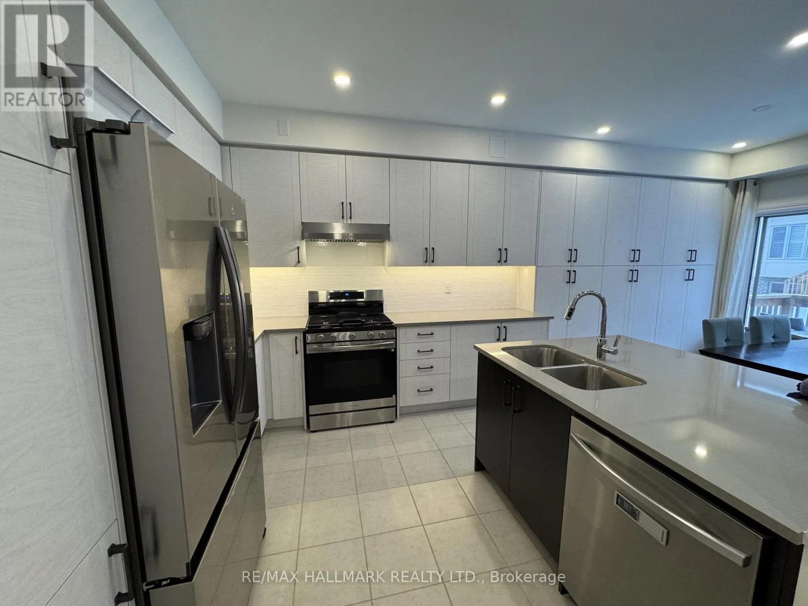 Dundas/Walkers Welcome to Alton Village in Burlington. This exceptional two-year-old detached home by Sundial Homes offers approximately 2,938 sq. ft. of professionally finished living space with 4 bedrooms and 5 bathrooms, thoughtfully designed for modern family living.The open-concept main level features a private study ideal for a home office, a spacious great room with gas fireplace and pull-down TV mount, and a bright breakfast area overlooking the upgraded and extended kitchen. The kitchen is equipped with wall-to-wall cabinetry and premium Samsung appliances, offering both style and functionality for everyday living and entertaining. The main floor also includes a powder room with upgraded vanity and a conveniently located laundry room with added storage and shelving.Upstairs, you'll find two generously sized bedrooms with private 4-piece ensuites, including the primary retreat. Two additional well-proportioned bedrooms are serviced by a beautifully renovated 3-piece bathroom. Three bedrooms feature premium blackout blinds with side channels for enhanced comfort and privacy.The fully finished basement expands the living space with a large open-concept recreation room and an additional 4-piece bathroom, perfect for extended family, a media lounge, or flexible lifestyle use.Additional upgrades include newly installed pot lights throughout all three levels, upgraded toilets throughout, a WiFi-enabled smart front door lock, and a WiFi garage door opener for seamless access.Ideally located in one of Burlington's most family-oriented communities, this home is within walking distance to parks, schools, grocery stores, restaurants, and a GO Transit bus station, with easy access to major highways and Burlington's vibrant lakeshore and beaches. A true turnkey opportunity in a highly desirable neighbourhood. (id:27476)