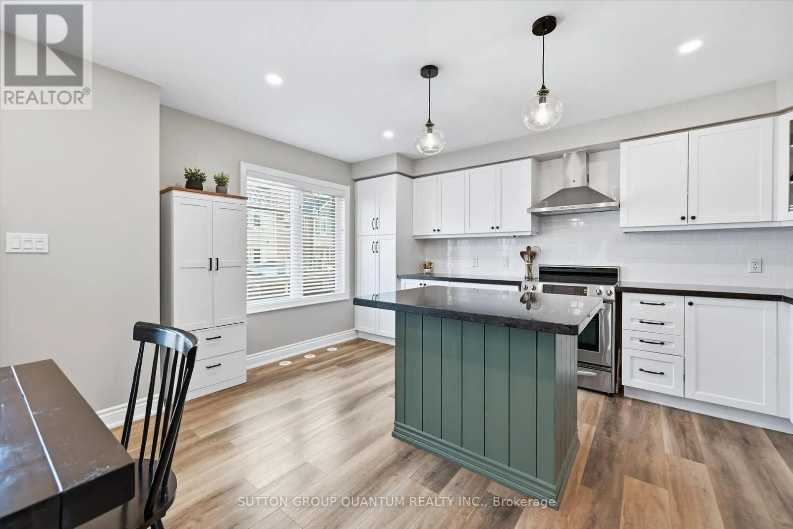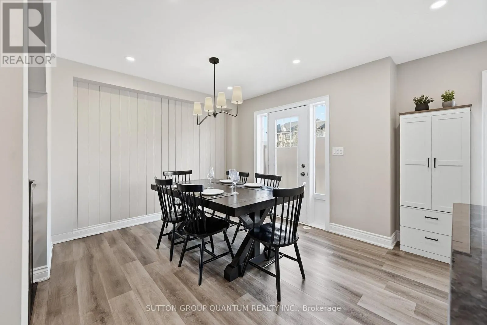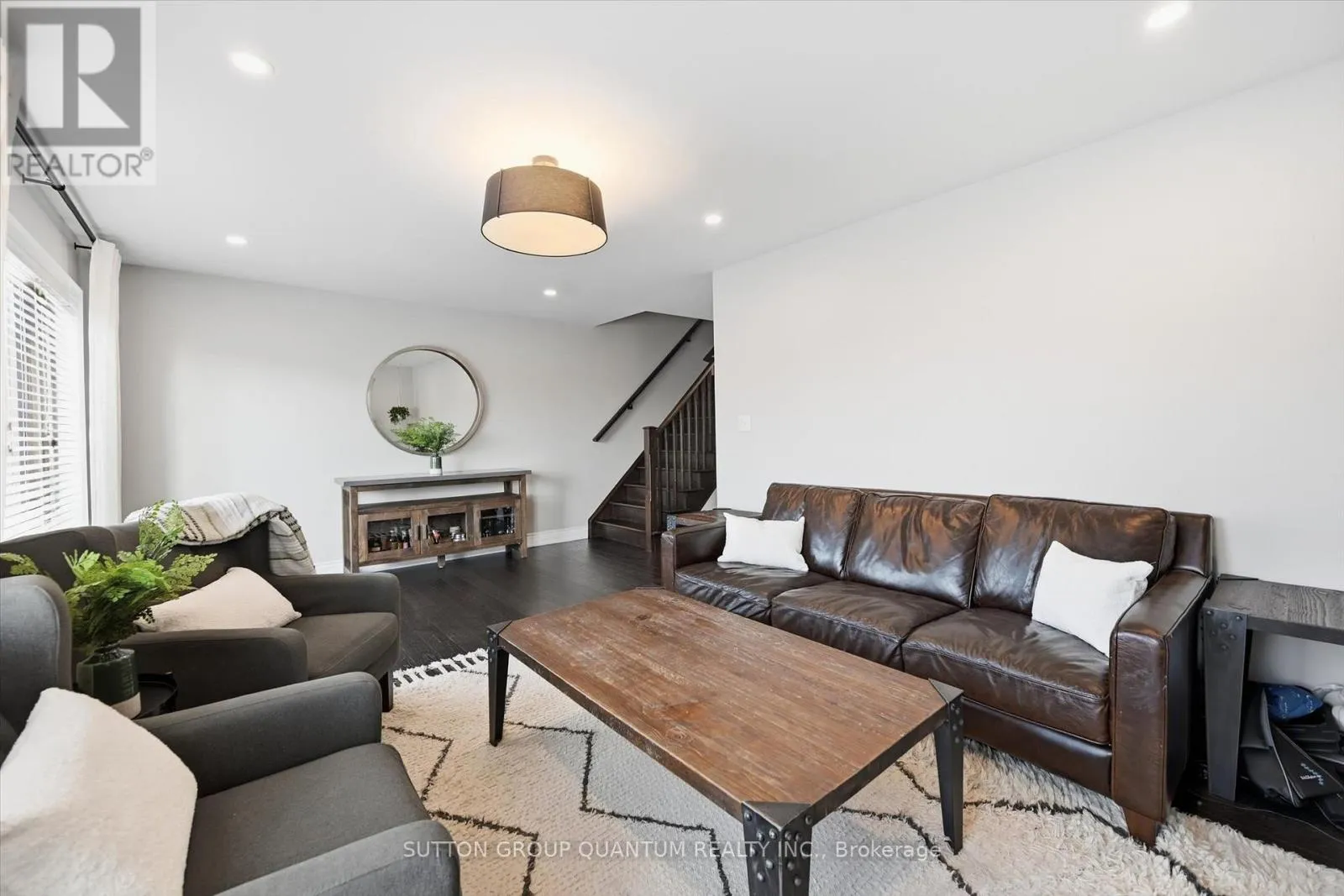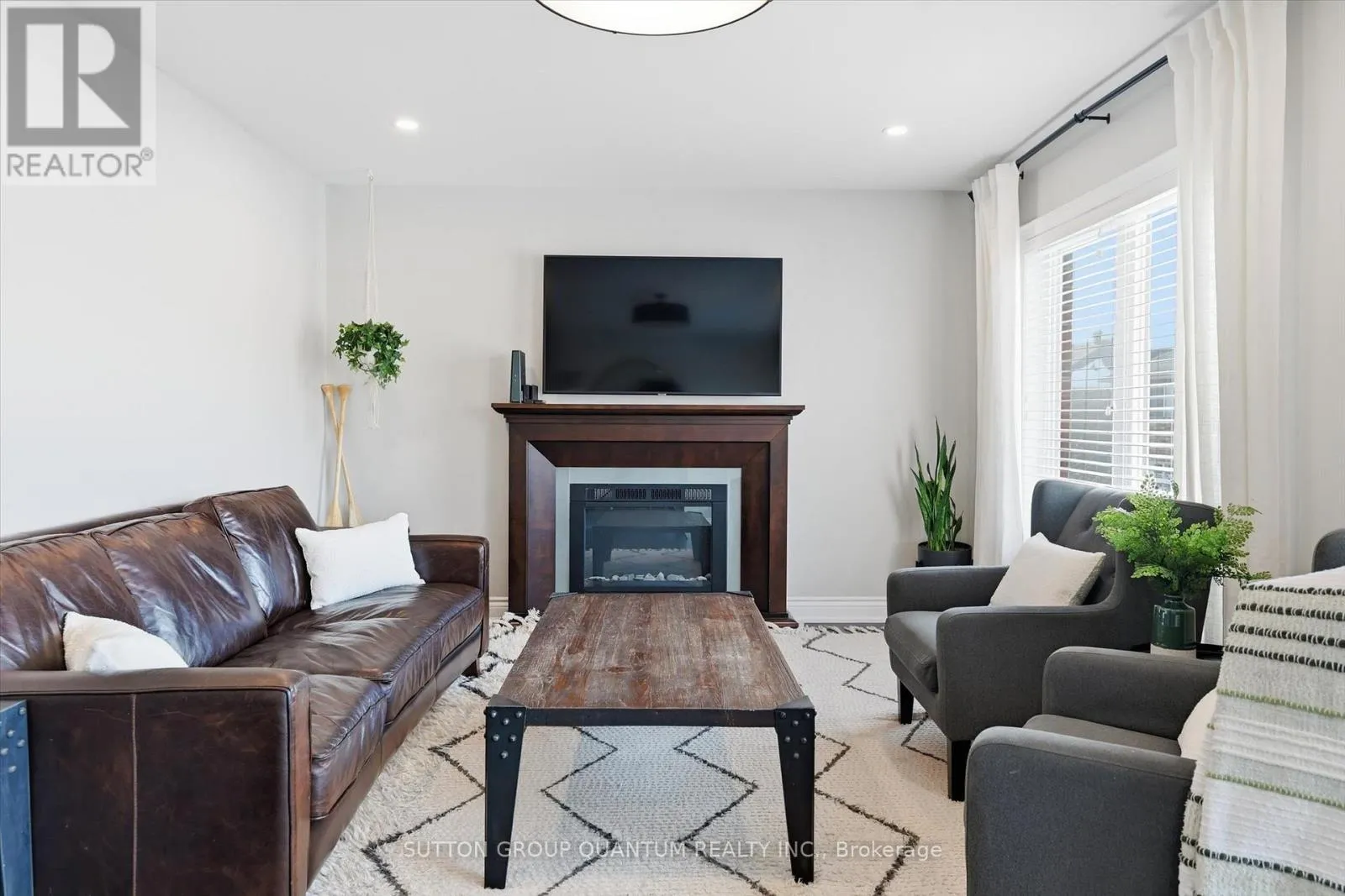 Rotary/Dundas Finally! A completely renovated 3 bed, 3 bath townhouse in Alton Village! Which brings me to the top 7 reasons to buy #26: 1. The Essential 2 full bathrooms on the bedroom level with extensive upgrades in all three bathrooms including new toilets, tiling, vanities, light fixtures, flooring, mirrors, and master ensuite shower glass enclosure with matching black accents. 2. Sought after Alton Village/Burlington location with top schools featuring Alton Village Elementary ranked 94th percentile in ON, and Dr. Frank J. Hayden secondary ranked 88th percentile in ON. Short walk from the Farm Boy/Starbucks/Shoppers Drug Mark plaza, and only 10-15 min drive to the QEW and Appleby Go Train station. 3. Large and modern, open concept kitchen features refinished white cabinets, upgraded matte black hardware, upgraded backsplash, s/s appliances, upgraded matching black faucet, stone counters, and the coveted kitchen island with a trendy green accent color. 4. Landscaped low-maintenance backyard retreat features a deck covered in turf for proper drainage and maximum utility; a very expensive upgrade. 5. High-end finishes throughout include gorgeous engineered hardwood on the main and top floor with matching wood stairs and updated flooring across all 3 levels. Custom built-in library shelving, upgraded light fixtures incl pot lights, board and batten kitchen decor, heated floors on lower-level, eco bee smart thermostat, and a fresh coat of paint ('25). 6. Private community/laneway with private playground; includes ample visitor parking and unparalleled safety with no public access to the property. 7. Modern construction with concrete slab-on-grade (no basement leaks), copper electrical, modern plumbing, 2017 roof, 2021 furnace and AC, and vinyl (never-rot) windows. Nothing to do but move in and enjoy! But don't hesitate, book your showing today, as when it sells there likely won't be another one like it as these models are rare! (id:27476)