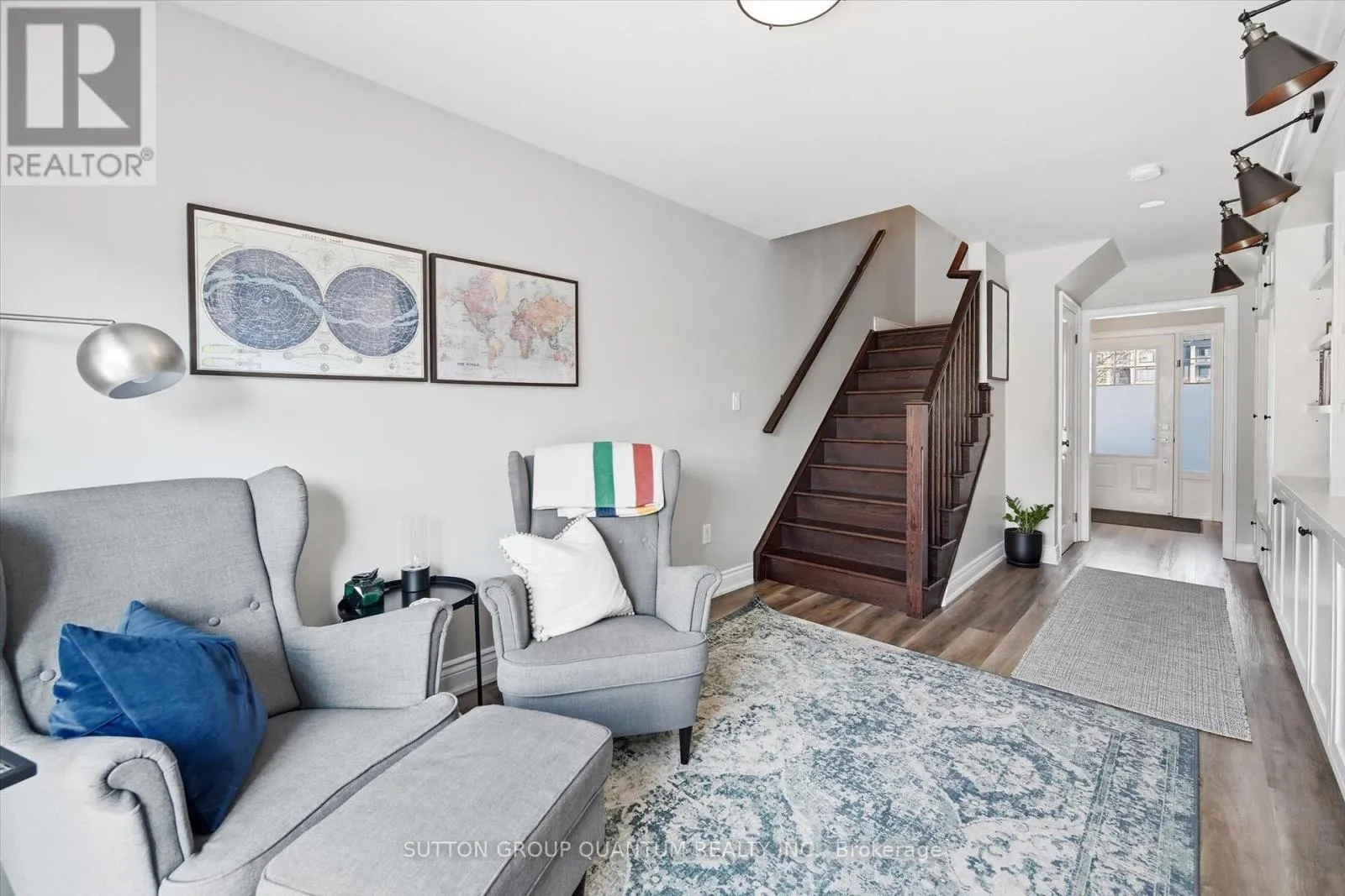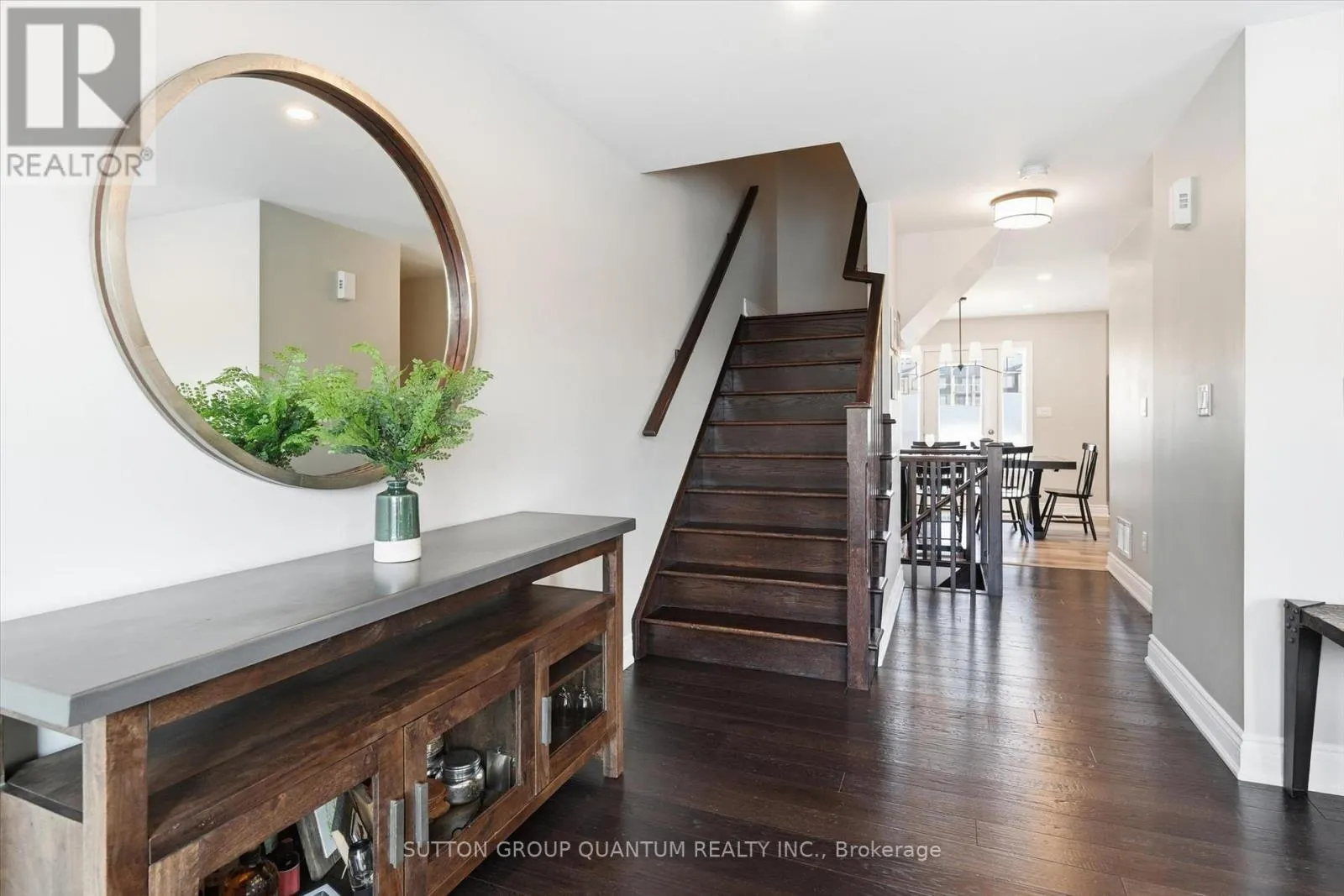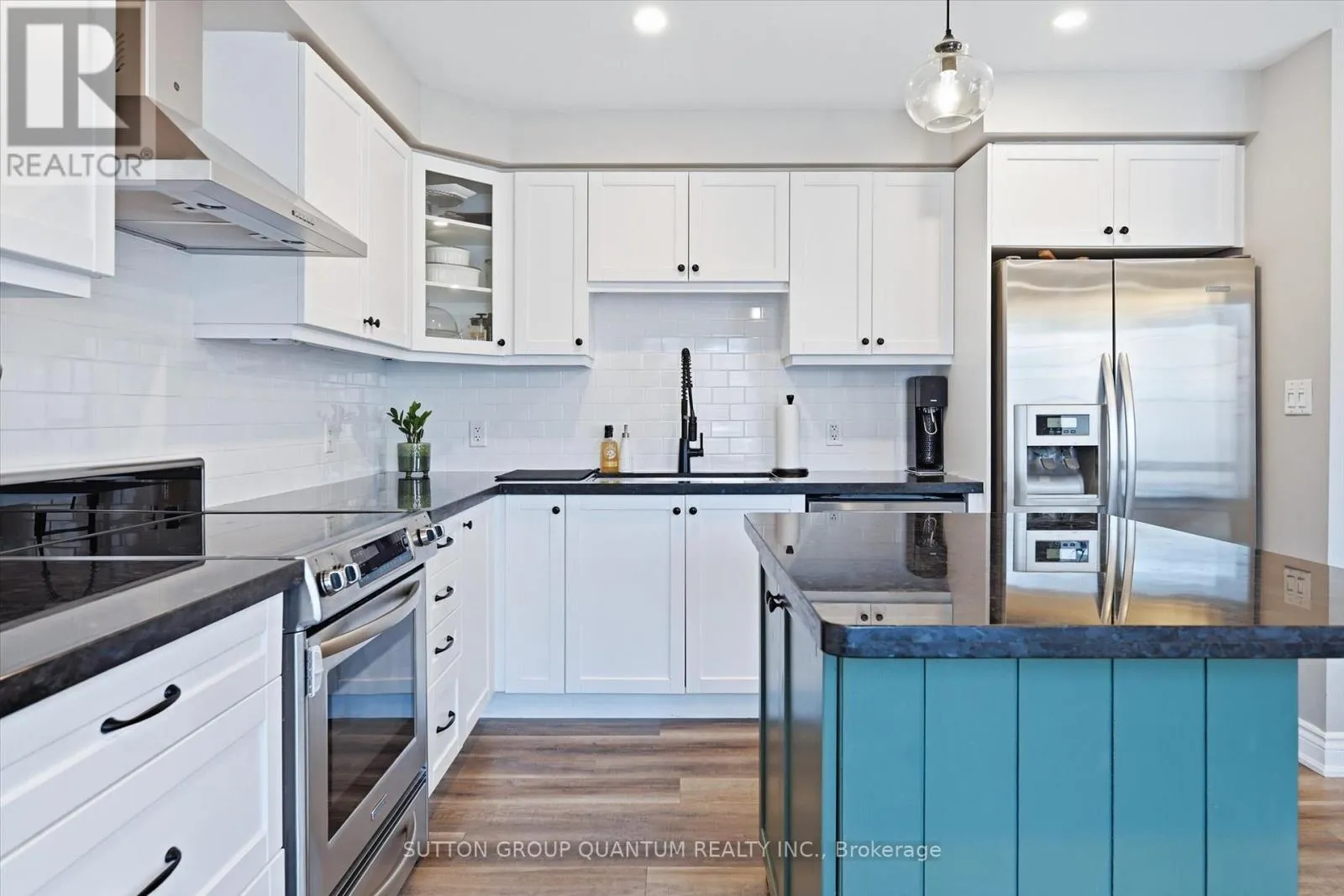 Rotary/Dundas Finally! A completely renovated 3 bed, 3 bath townhouse in Alton Village! Which brings me to the top 7 reasons to buy #26: 1. The Essential 2 full bathrooms on the bedroom level with extensive upgrades in all three bathrooms including new toilets, tiling, vanities, light fixtures, flooring, mirrors, and master ensuite shower glass enclosure with matching black accents. 2. Sought after Alton Village/Burlington location with top schools featuring Alton Village Elementary ranked 94th percentile in ON, and Dr. Frank J. Hayden secondary ranked 88th percentile in ON. Short walk from the Farm Boy/Starbucks/Shoppers Drug Mark plaza, and only 10-15 min drive to the QEW and Appleby Go Train station. 3. Large and modern, open concept kitchen features refinished white cabinets, upgraded matte black hardware, upgraded backsplash, s/s appliances, upgraded matching black faucet, stone counters, and the coveted kitchen island with a trendy green accent color. 4. Landscaped low-maintenance backyard retreat features a deck covered in turf for proper drainage and maximum utility; a very expensive upgrade. 5. High-end finishes throughout include gorgeous engineered hardwood on the main and top floor with matching wood stairs and updated flooring across all 3 levels. Custom built-in library shelving, upgraded light fixtures incl pot lights, board and batten kitchen decor, heated floors on lower-level, eco bee smart thermostat, and a fresh coat of paint ('25). 6. Private community/laneway with private playground; includes ample visitor parking and unparalleled safety with no public access to the property. 7. Modern construction with concrete slab-on-grade (no basement leaks), copper electrical, modern plumbing, 2017 roof, 2021 furnace and AC, and vinyl (never-rot) windows. Nothing to do but move in and enjoy! But don't hesitate, book your showing today, as when it sells there likely won't be another one like it as these models are rare! (id:27476)