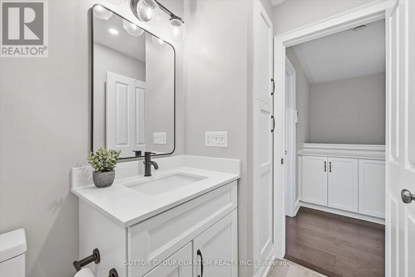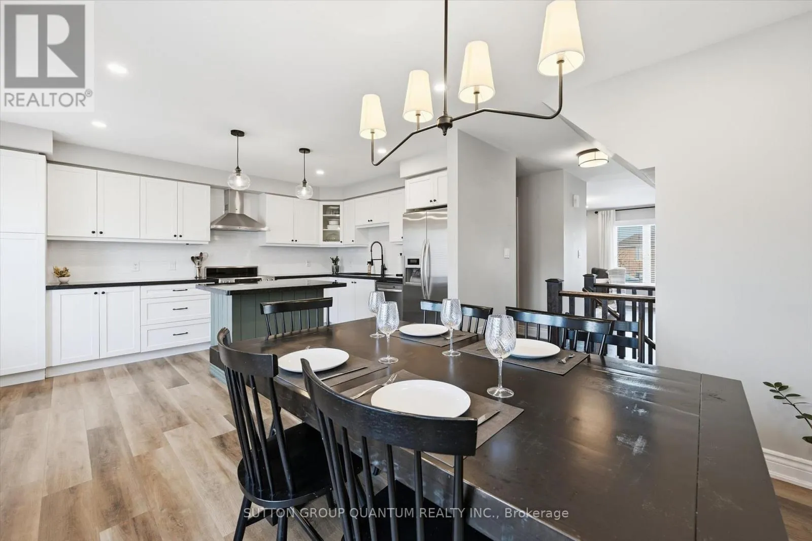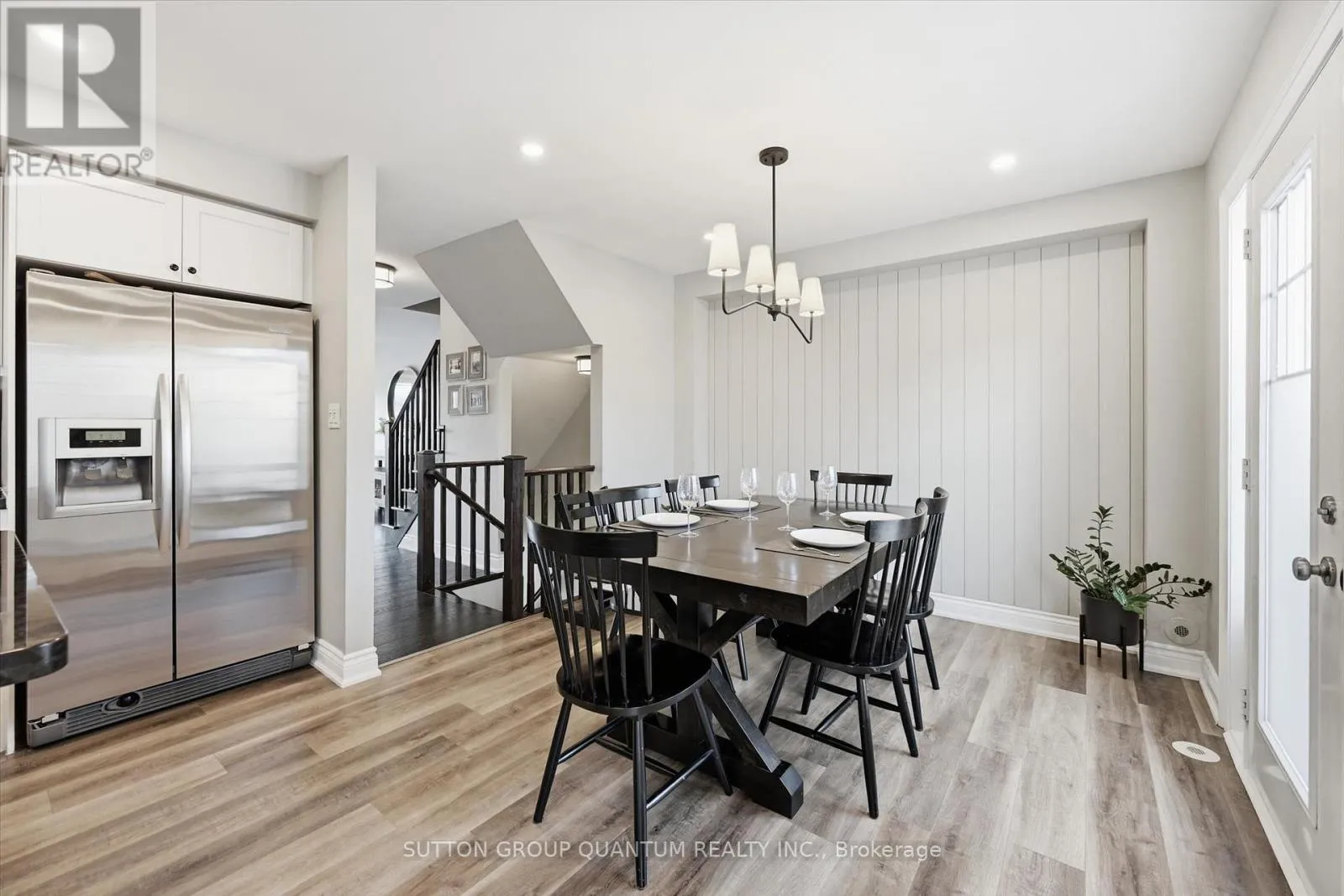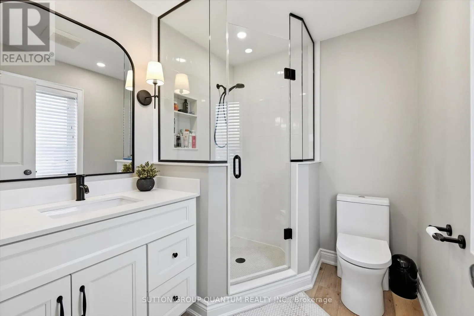 Rotary/Dundas Finally! A completely renovated 3 bed, 3 bath townhouse in Alton Village! Which brings me to the top 7 reasons to buy #26: 1. The Essential 2 full bathrooms on the bedroom level with extensive upgrades in all three bathrooms including new toilets, tiling, vanities, light fixtures, flooring, mirrors, and master ensuite shower glass enclosure with matching black accents. 2. Sought after Alton Village/Burlington location with top schools featuring Alton Village Elementary ranked 94th percentile in ON, and Dr. Frank J. Hayden secondary ranked 88th percentile in ON. Short walk from the Farm Boy/Starbucks/Shoppers Drug Mark plaza, and only 10-15 min drive to the QEW and Appleby Go Train station. 3. Large and modern, open concept kitchen features refinished white cabinets, upgraded matte black hardware, upgraded backsplash, s/s appliances, upgraded matching black faucet, stone counters, and the coveted kitchen island with a trendy green accent color. 4. Landscaped low-maintenance backyard retreat features a deck covered in turf for proper drainage and maximum utility; a very expensive upgrade. 5. High-end finishes throughout include gorgeous engineered hardwood on the main and top floor with matching wood stairs and updated flooring across all 3 levels. Custom built-in library shelving, upgraded light fixtures incl pot lights, board and batten kitchen decor, heated floors on lower-level, eco bee smart thermostat, and a fresh coat of paint ('25). 6. Private community/laneway with private playground; includes ample visitor parking and unparalleled safety with no public access to the property. 7. Modern construction with concrete slab-on-grade (no basement leaks), copper electrical, modern plumbing, 2017 roof, 2021 furnace and AC, and vinyl (never-rot) windows. Nothing to do but move in and enjoy! But don't hesitate, book your showing today, as when it sells there likely won't be another one like it as these models are rare! (id:27476)