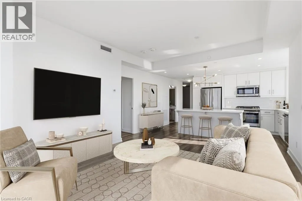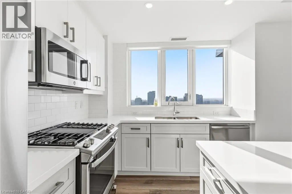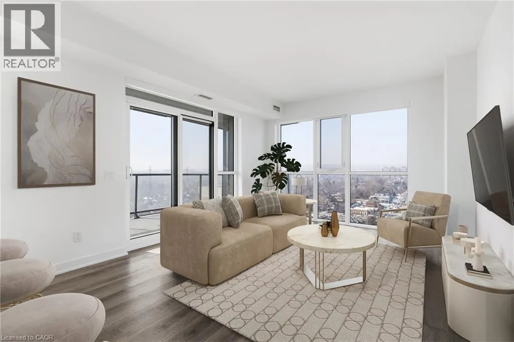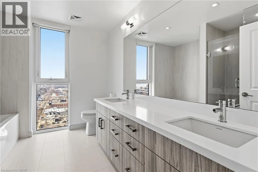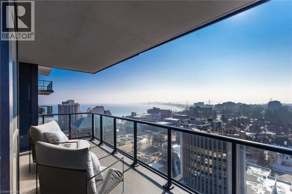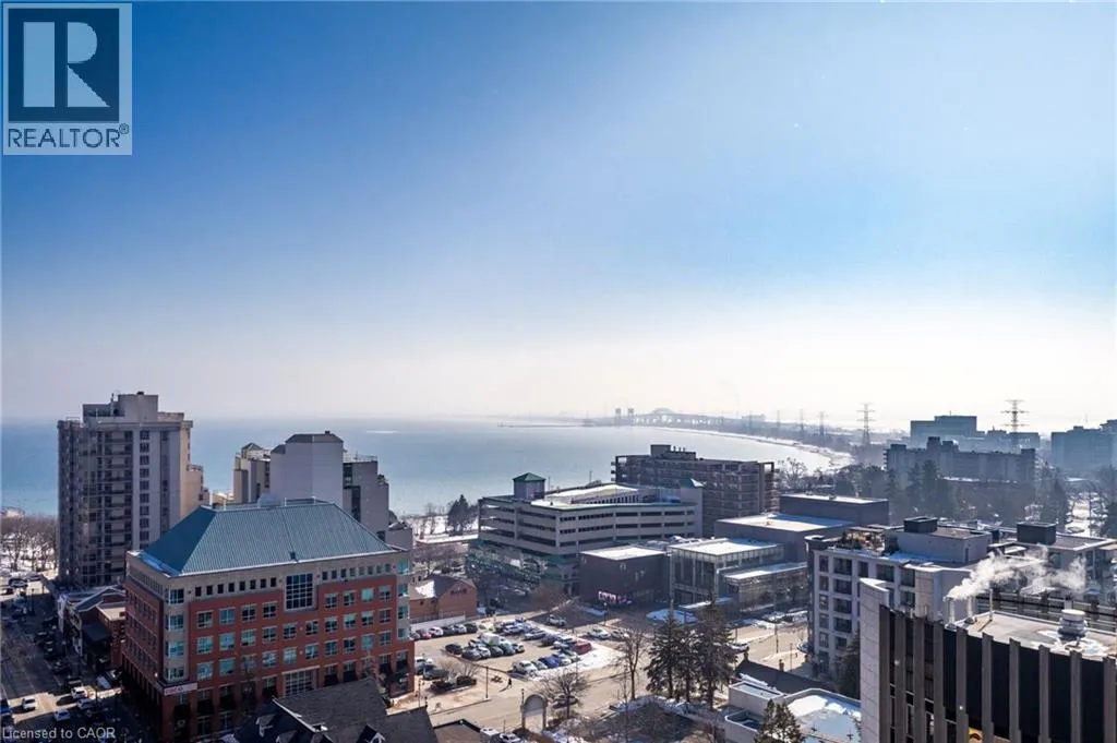 Main Entrance located on James Street, parking garage entrance on John Street Welcome to this stunning 1,102 sq ft corner suite offering refined condo living with panoramic views that truly set it apart. This beautifully designed 2-bedroom, 2-bathroom residence combines space, light, and sophistication â complete with 2 owned parking spaces, a rare and valuable bonus. Perched to capture breathtaking vistas of Lake Ontario, the downtown skyline, and the escarpment, the expansive 180 sq ft private balcony with gas hookup is the perfect place to unwind or entertain. Enjoy incredible sunset views while dining or relaxing. Inside, floor-to-ceiling windows flood the open-concept living area with natural light, highlighting the thoughtful layout and premium feel throughout. The primary suite is a true retreat, featuring a luxurious 5-piece ensuite with a dramatic floor-to-ceiling window and a spacious walk-in closet. Residents enjoy exceptional building amenities including an indoor pool, fully equipped fitness centre, yoga room, elegant party room with separate dining area, billiards room, guest suite, and a spectacular rooftop terrace â offering resort-style living every day. This is elevated condo living at its finest â breathtaking views, generous space, outstanding amenities, and the convenience of two owned parking spaces. A rare opportunity not to be missed. (id:27476)