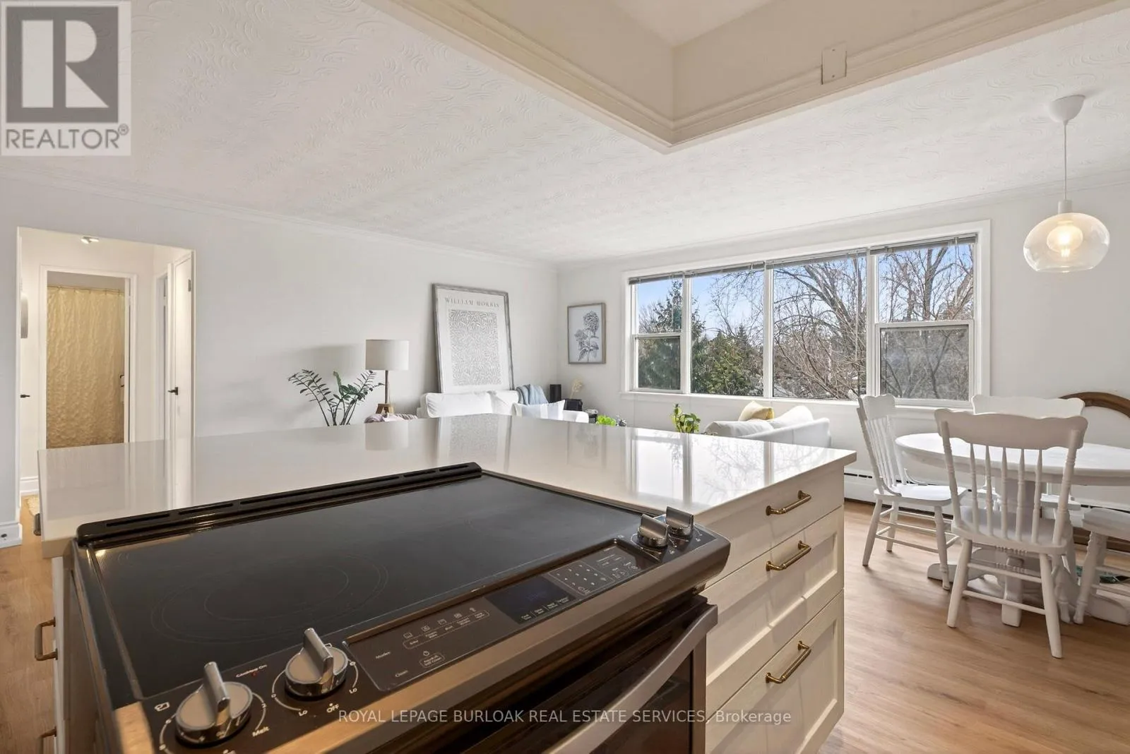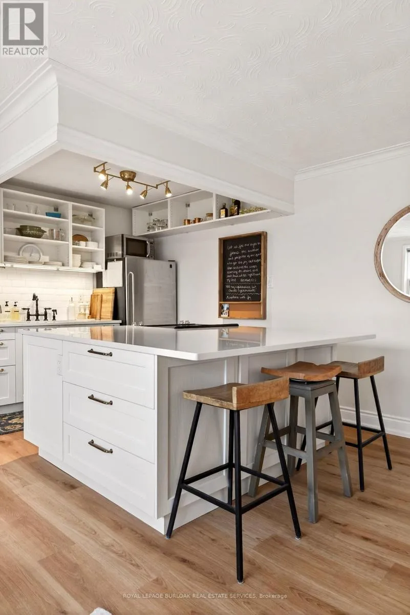 BRANT / BLAIRHOLM NEWLY RENOVATED! Offered at $2250 unfurnished and $2350 furnished, this bright and stylish condo in the heart of Downtown Burlington offers large windows, natural light, and a welcoming place to call home. The open-concept layout features a newly renovated kitchen with a huge island, quartz countertops, and modern finishes, flowing seamlessly into the living area. The unit is freshly painted, carpet-free, and finished with new flooring throughout, updated lighting, and neutral tones. The updated 4-piece bathroom includes a new vanity and shower faucet. Window A/C units are installed in both the living room and bedroom. Three spacious closets provide ample storage, and one parking space is conveniently located beside the rear entrance. Walking distance to the waterfront, Spencer Smith Park, restaurants, shopping, and the GO Station, deal for tenants seeking comfort, natural light, and an unbeatable downtown lifestyle. (id:27476)