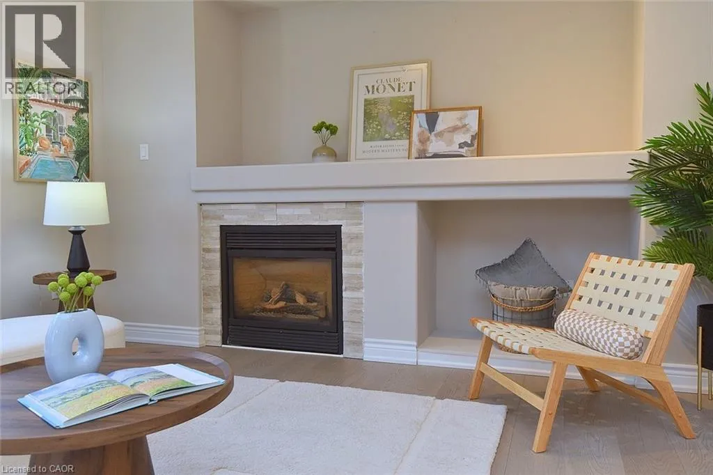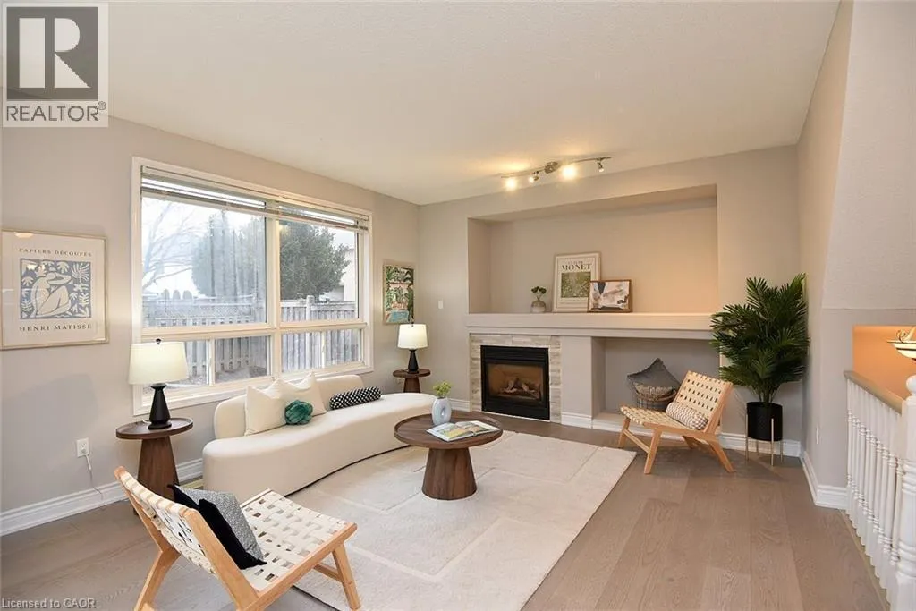 Appleby Line to Dryden to Blue Spruce Beautiful 4 bedroom, 3 bath, double car garage home in The Orchard, Burlington's most vibrant, sought-after family neighbourhoods close to schools, shops and numerous amenities! Open concept with a cozy gas fireplace in the Great room which opens to the eat-in kitchen with maple kitchen cabinets and a centre island. Private fenced yard with exposed aggregate concrete patio. The master retreat boasts a walk in closet and 4 piece bath with soaker tub and separate shower. 3 other generous sized bedrooms plus a computer niche upstairs. The professionally finished basement is great for a large family, as a media and games room, with pot lights! All newer flooring, newer bathrooms and freshly painted. (id:27476)