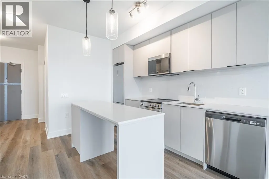 QEW to Brant St South, turn on James St. Pristine 1 Bed + Den, 2 Full Bathroom Residence With Loads of Upgrades At Martha James Boutique Condos in Prime Burlington Location. This Never-Before-Occupied Home Offers Approx. 700 Sq Ft Of Sun-Drenched, Open-Concept Living Space With Soaring Ceilings, Expansive Windows, and Stunning Lake Views from The Balcony. The Gourmet Kitchen Showcases Elegant Quartz Countertops, Premium Stainless-steel Appliances With Built-In Microwave, And A Chic Backsplash. Internet And State-Of-The-Art Smart Home Technology Provided Throughout The Building Including Facial Entry. Exceptional Amenities Include A Concierge-Serviced Lobby, Automated Parcel Lockers, A Stylish Social And Co-Working Lounge, A Fully Equipped Fitness Centre With Yoga Studio, And A Roof-Top Terrace With BBQ Facilities. Ideally Situated Near The QEW, GO Transit, Upscale Shopping, And Fine Dining, This Residence Delivers Unparalleled Convenience And Contemporary Luxury Living. In-Suite Laundry, And One Parking Space Directly In Front of Locker Are Included. (id:27476)