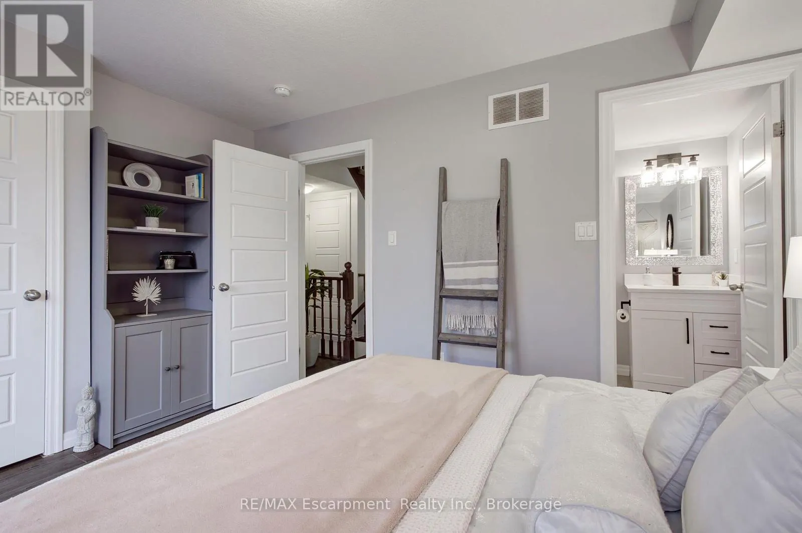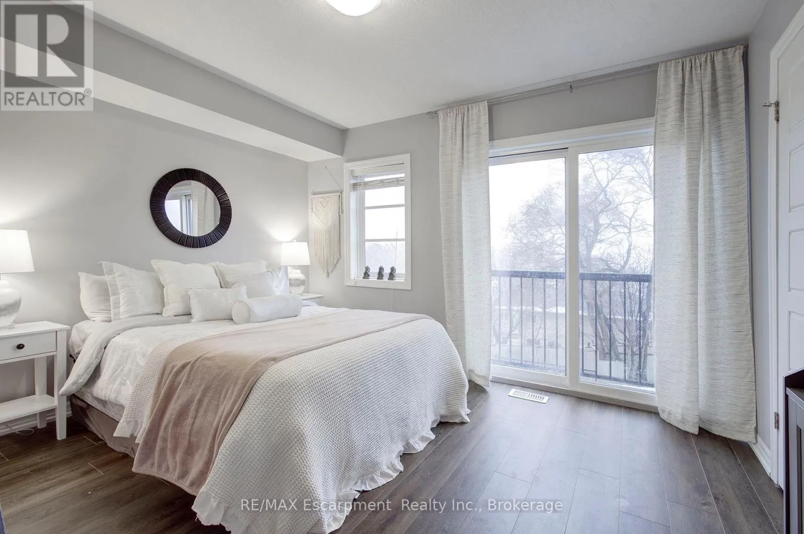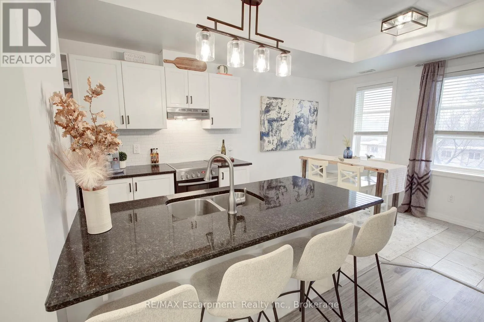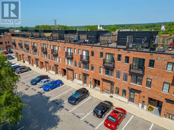 Cross Streets: Lasalle/Waterdown. ** Directions: Plains, just west of Waterdown Rd. Live in style in the heart of Aldershot Village! This bright, modern, spacious, 3 bedroom, 2.5 bathroom townhome is within walking distance of several highlights in the neighbourhood including: Lasalle Park, Burlington Bay, the GO Station, and The RGB. Upon entering the home you will find an inviting entryway with a large closet, modern decor style and hardwood staircase that leads to an equally impressive main level living area. The open concept kitchen is truly a delight, showcasing a breakfast bar with granite counters, a tile backsplash, stainless steel appliances, modern fixtures and a huge, functional pantry! Surrounding the kitchen you will find a generous dining space accented by large south facing windows that flood the space with natural light. On the other side of the kitchen is the living room which also features large windows and enough space to host many visitors comfortably. Completing the main level is a convenient powder room and utility closet. Upstairs you will find a primary bedroom suite with a private ensuite bath, walk in closet and tons of natural light pouring through the patio doors that open to the juliette balcony. On this level you will also find two additional bedrooms (both with windows, but no closets), a 4 pc main bathroom, linen closet and handy, stacked laundry in the hall. But the unexpected surprise of the home is on the 4th level, a cheerful office space leading to a massive rooftop patio! This sunny, fully enclosed space (with a lake view in certain seasons) offers the perfect setting for a morning coffee, summer bbqs, or evening cocktails under the stars. While there is an owned parking spot and lots of visitor spaces, this property offers you the opportunity to ditch your car, use public transit, & bike or walk to local schools, shops, restaurants, and other amenities. With added perks like daily access to garbage disposal and seasonal window washing, you will love this low maintenance urban lifestyle nestled in nature. (id:27476)
