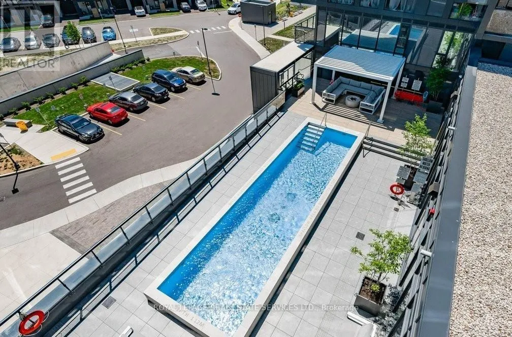 Cross Streets: Appleby & Dundas. ** Directions: Dundas/Appleby/Thomas Alton. Fantastic 1 bedroom + den unit for lease in Valera Condos! Spectacular building amenities include 24hr concierge, a luxurious lobby, meeting/dining room, media room, party room, games area, outdoor terrace and pet spa. Also, an outdoor rooftop pool, lounge, BBQ area, fitness centre, yoga space, sauna & steam room are accessed right outside your door on the third level. This unit is 600 sf + 112 sf balcony, and features an open concept living room & kitchen with a den that can be utilized as a dining area, office or TV room. The kitchen has euro-style cabinets, quartz counters and stainless steel fridge, stove, built-in dishwasher and built-in microwave. Sliding glass doors in the living room lead to the spacious balcony with northern views. The bedroom has wall-to-wall windows, also with northern views. There is a 4pc bath with sleek vanity, quartz counter, under-mounted sink upgraded mirrored medicine cabinet and modern grey tile. Lots of closet space in the entry, as well as a convenient stacked washer and dryer. 1 parking space and storage locker are also included. Tenant pays for water, heat, hydro, cable & tenant insurance. Ideally located in Burlington's Alton Village, close to shopping, restaurants, GO trains, parks, trails and Oakville Hospital. (id:27476)