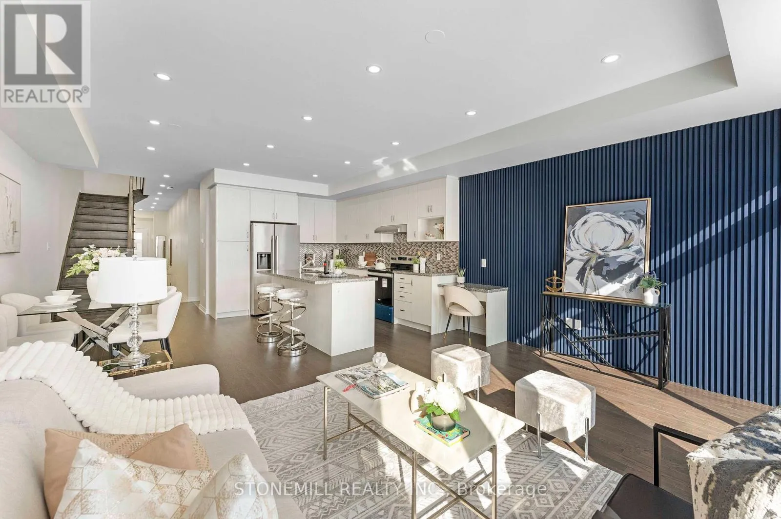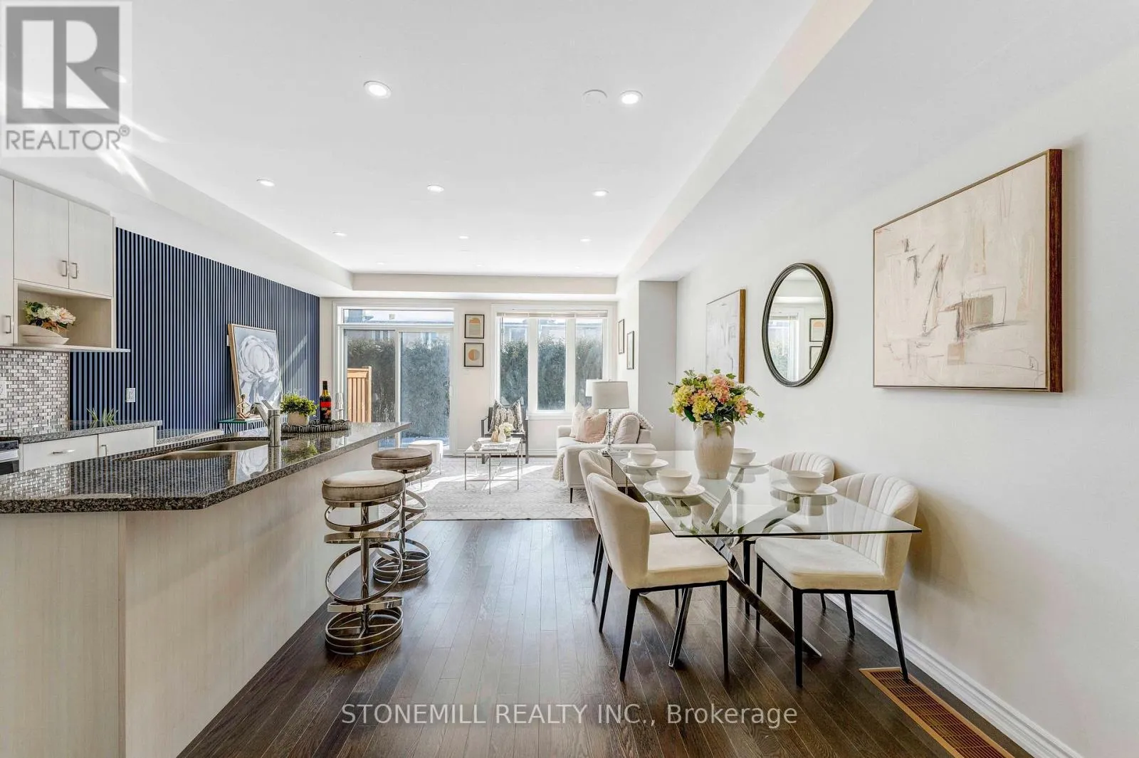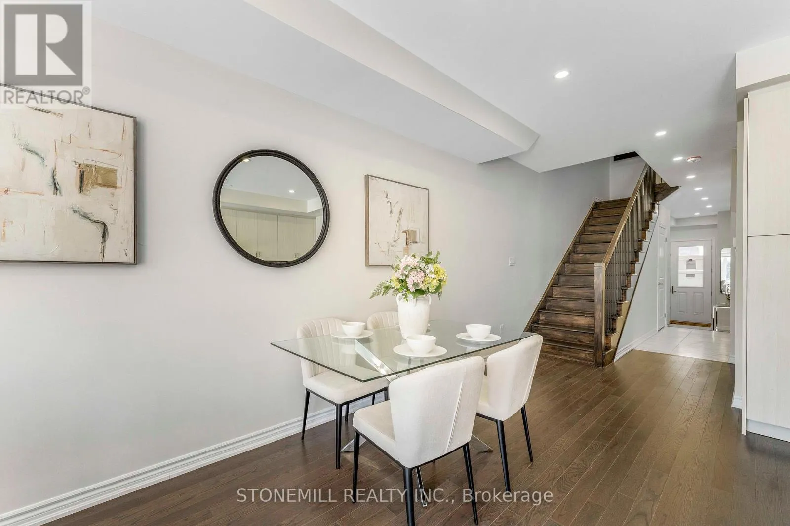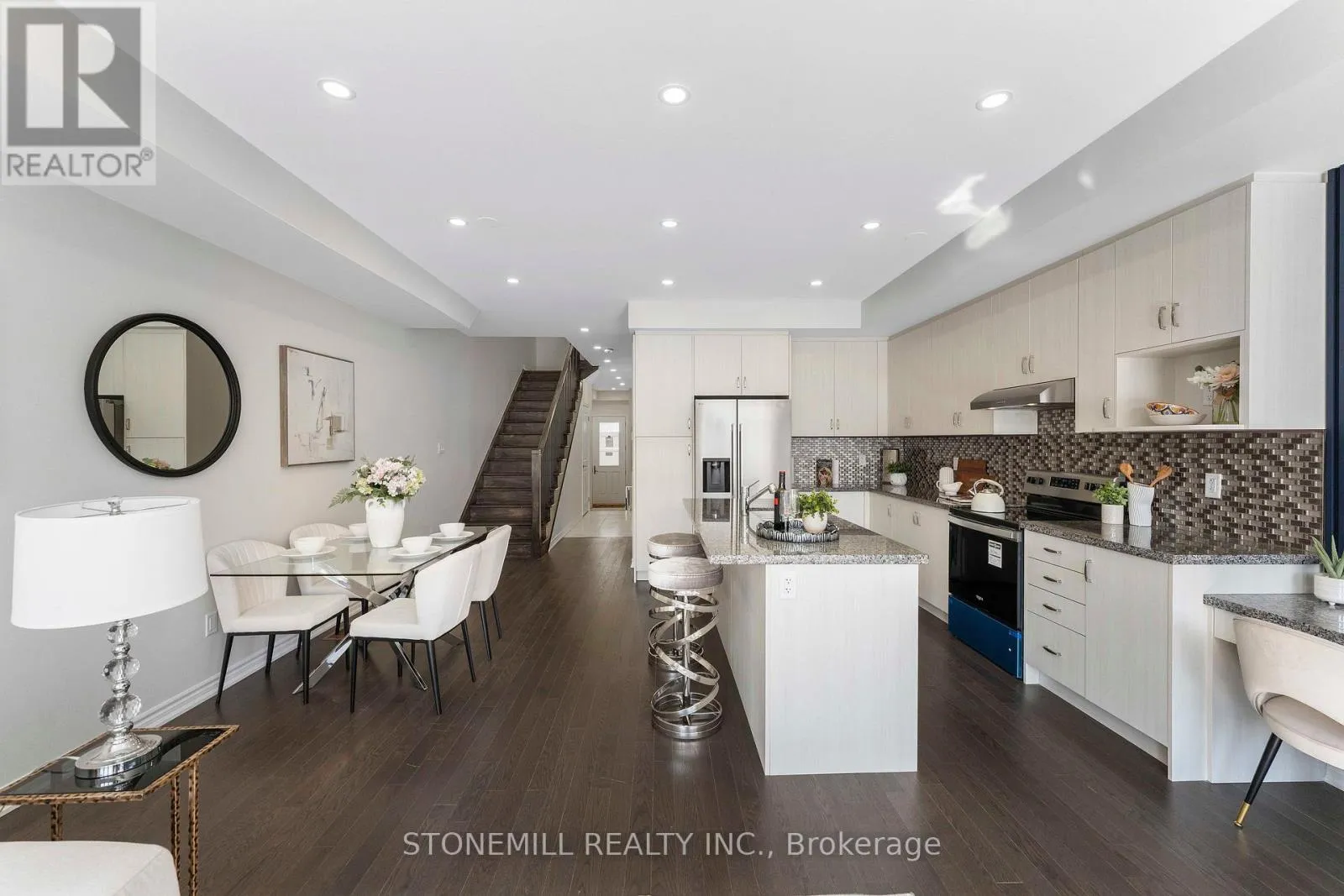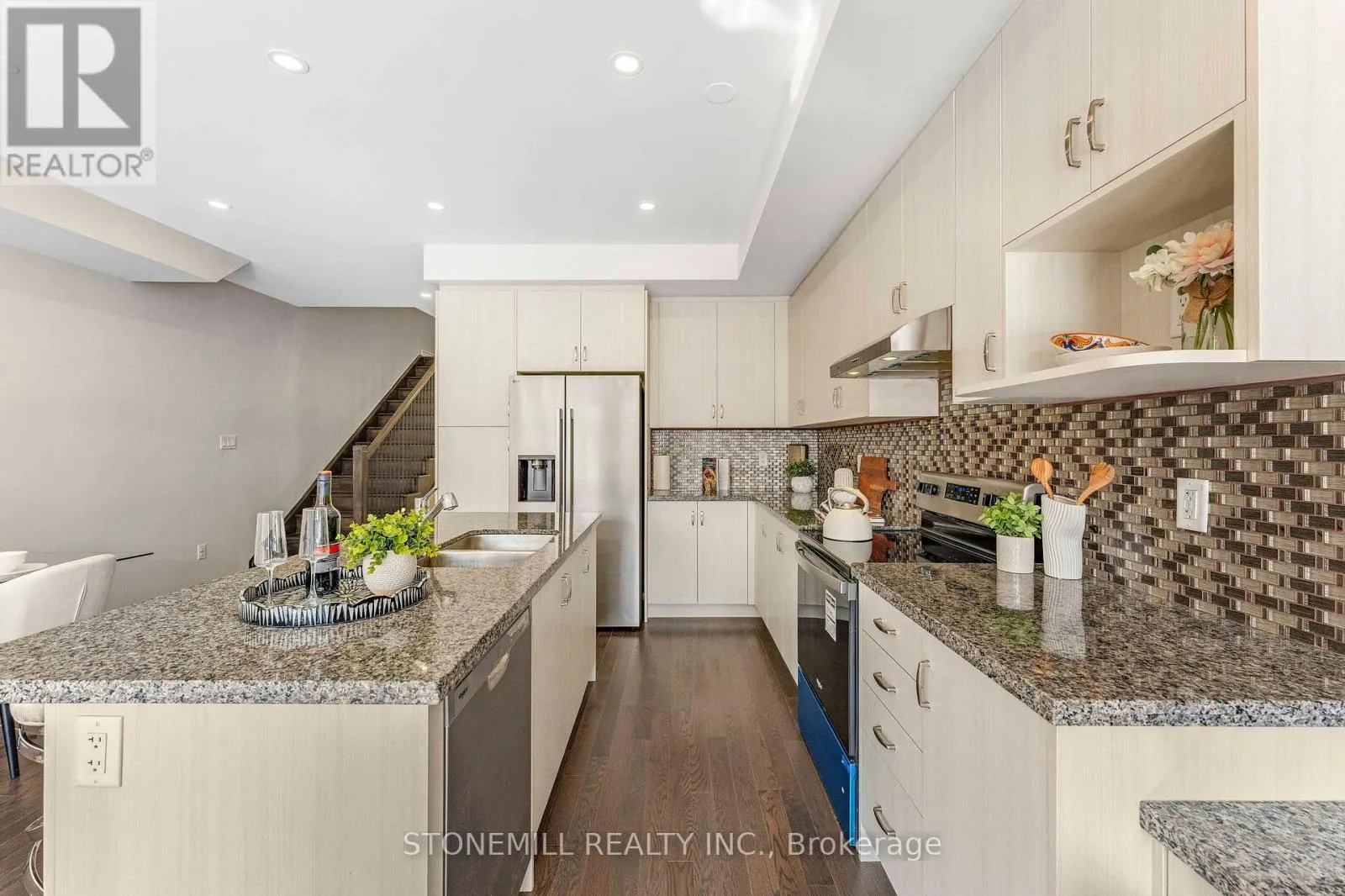 Cross Streets: Brant Street & Upper Middle. ** Directions: Brant Street & Upper Middle Rd. Brand-new luxury townhome in prestigious Tyandaga Heights offering 4 bedrooms and 4 bathrooms with thoughtfully upgraded finishes throughout. The main level features 9-ft smooth ceilings, wide-plank oak flooring and an elegant stained oak staircase with iron pickets. A chef-inspired kitchen showcases a waterfall island, granite countertops and stainless steel appliances, opening to a bright and functional living space ideal for entertaining. The carpet-free upper level includes upgraded bathrooms, convenient laundry and enhanced closets with custom shelving. The professionally finished basement (with permit and final inspection) adds valuable living space with a kitchenette, office area, living room and full bathroom - ideal for extended family or flexible use. Built with modern efficiency including HRV system, smart wiring and quality construction for comfortable low-maintenance living. No interior garage entry. Builder covers common element fees for the first two years (as per original purchase agreement). Covered under remaining Tarion new home warranty. Located close to parks, trails, golf and quick highway access. (id:27476)