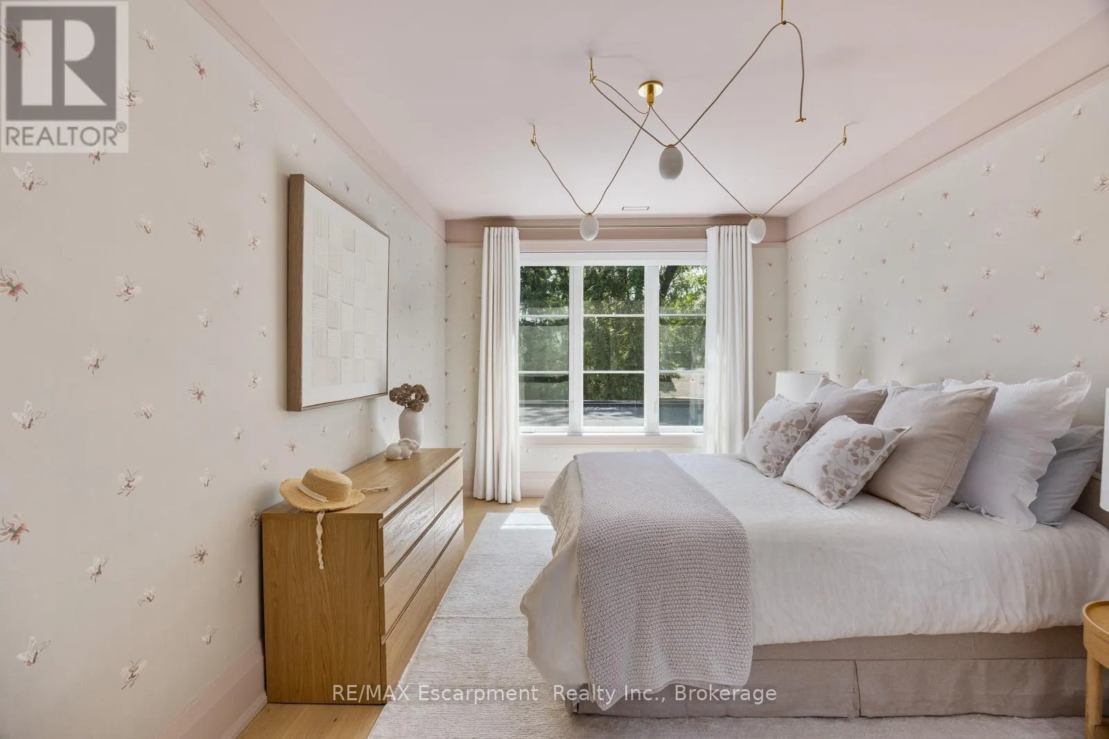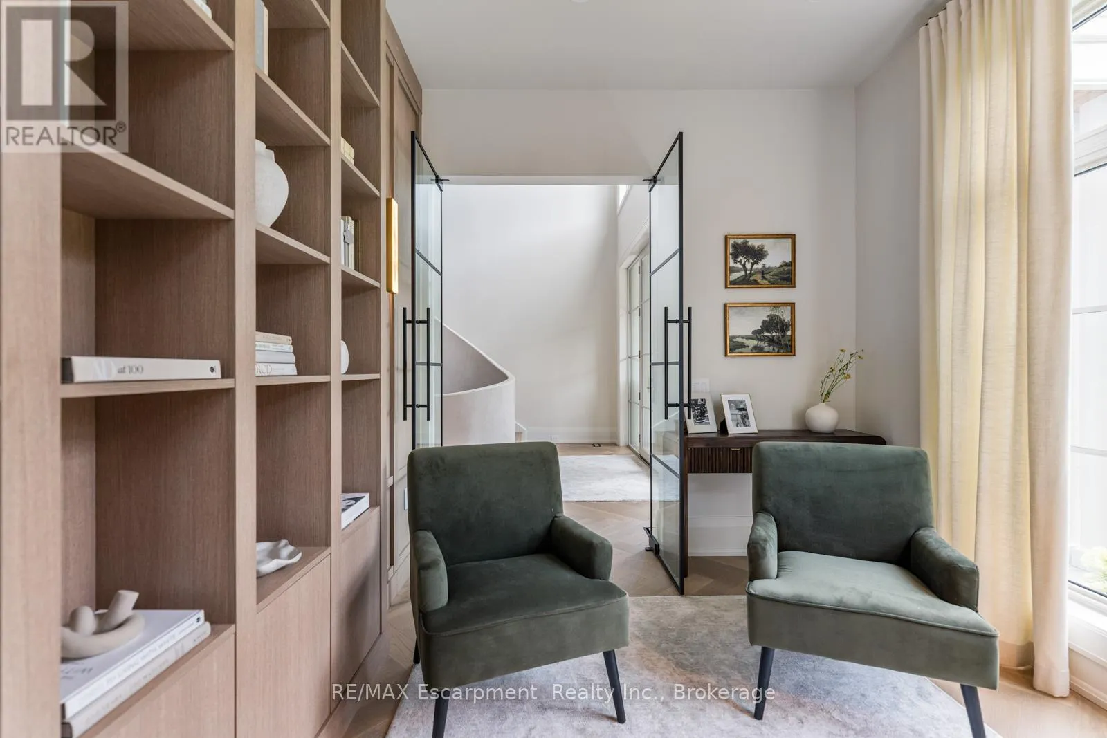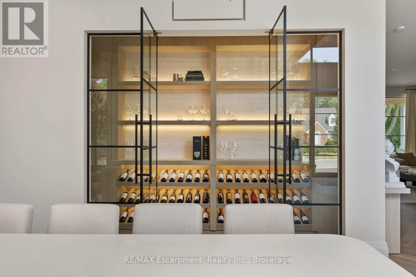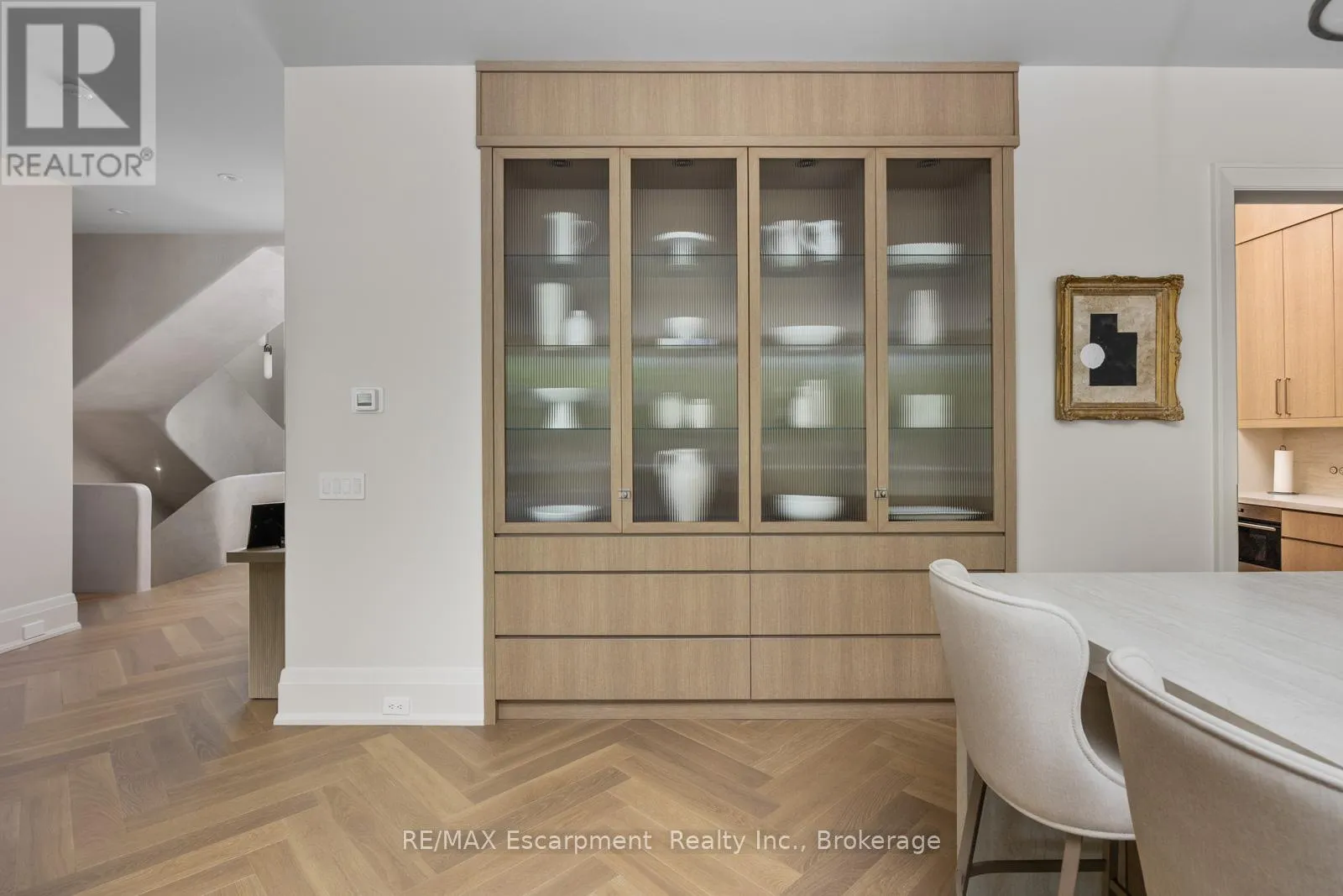 Cross Streets: Rossmore and South. ** Directions: Lakeshore to Pomona. Welcome to 304 Pomona Avenue, a truly magnificent newly built home in Burlington's highly coveted Roseland community. Step inside and you're greeted by an incredible hand-carved plaster staircase rising through all three levels that's perfectly paired with rift-cut white oak herringbone floors that set an elevated tone. A formal dining room makes a statement with decorative ceiling beams, a glass wine display, and a marble wet bar. The private library draws you in, finished with oak panelled walls and a reading nook with floor-to-ceiling corner windows that flood the room with natural light. The living room completes the main level's gathering spaces with its plaster fireplace, oak shelving with integrated lighting, and full in-ceiling speakers. At the heart of the home, the kitchen offers a large custom plaster hood, oversized waterfall island, porcelain counters, and top-tier appliances including a 60" Wolf double oven, Sub-Zero fridge and freezer, and Bosch dishwasher. Pantry storage with reeded glass cabinetry and a walk-through servery extends the workspace. Just beyond, the breakfast area opens to a beautiful and serene covered terrace with a built-in BBQ, outdoor fridge, fireplace, and cedar-lined ceiling-overlooking the saltwater pool and landscaped gardens. Upstairs, four bedrooms each include private ensuites. The primary suite features a spacious walk-in closet and a spa-like bath with dual vanities, soaker tub, heated floors, and oversized shower. A full laundry room with custom cabinetry completes this level. The lower level expands the living space with a second kitchen, home theatre, gym, fifth bedroom, full bath, and radiant heated floors. Outside, stone patios, mature landscaping, irrigation, and a hydrangea wall create a welcoming backdrop. With 4+1 bedrooms, 7 bathrooms, and over 6,000 sq. ft. of living space, this Roseland residence combines thoughtful design with everyday comfort. Move in and enjoy! Luxury Certified. (id:27476)