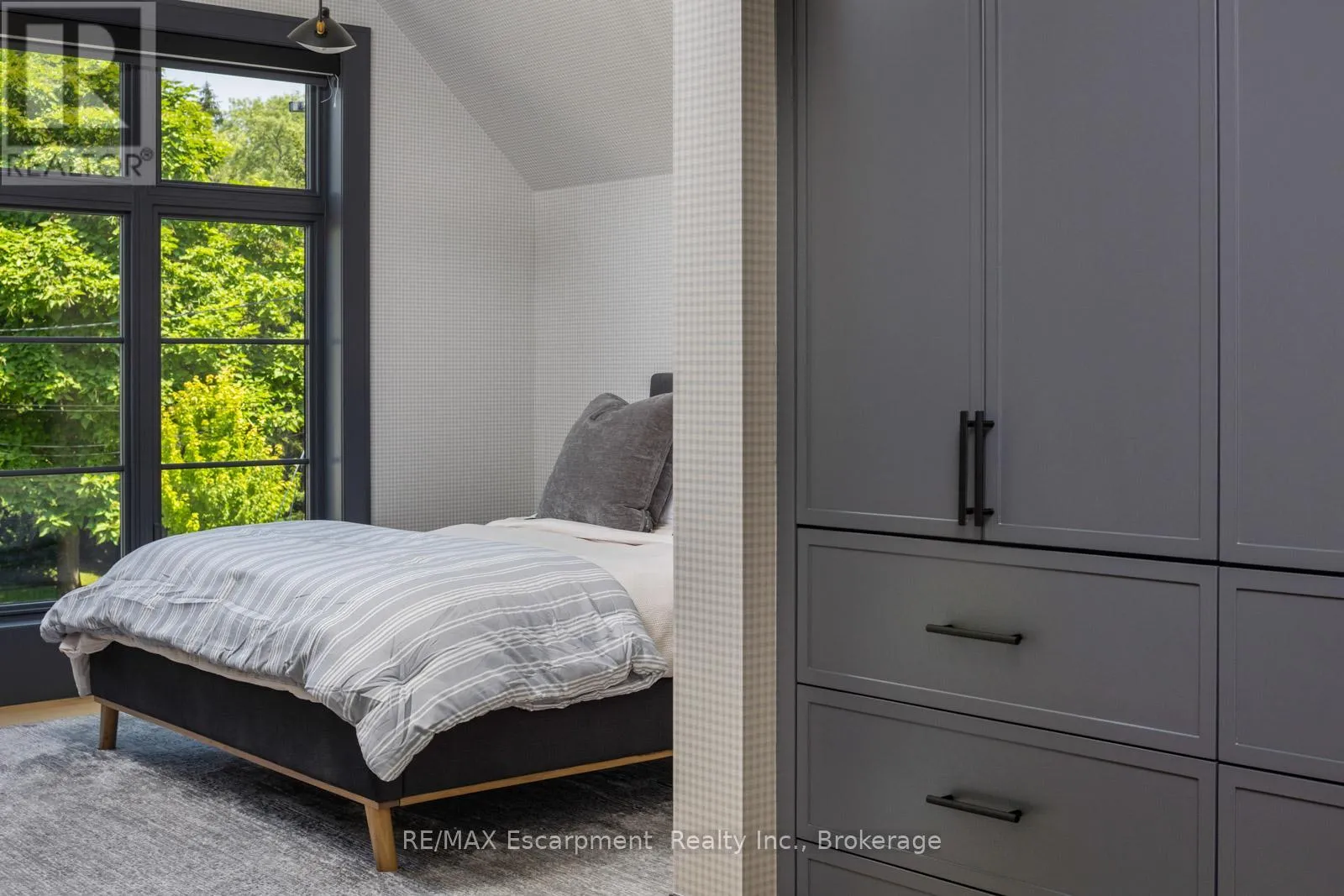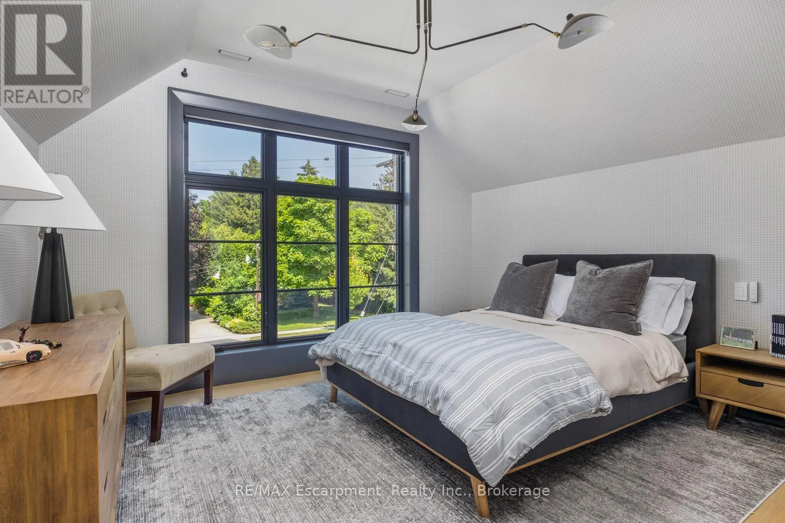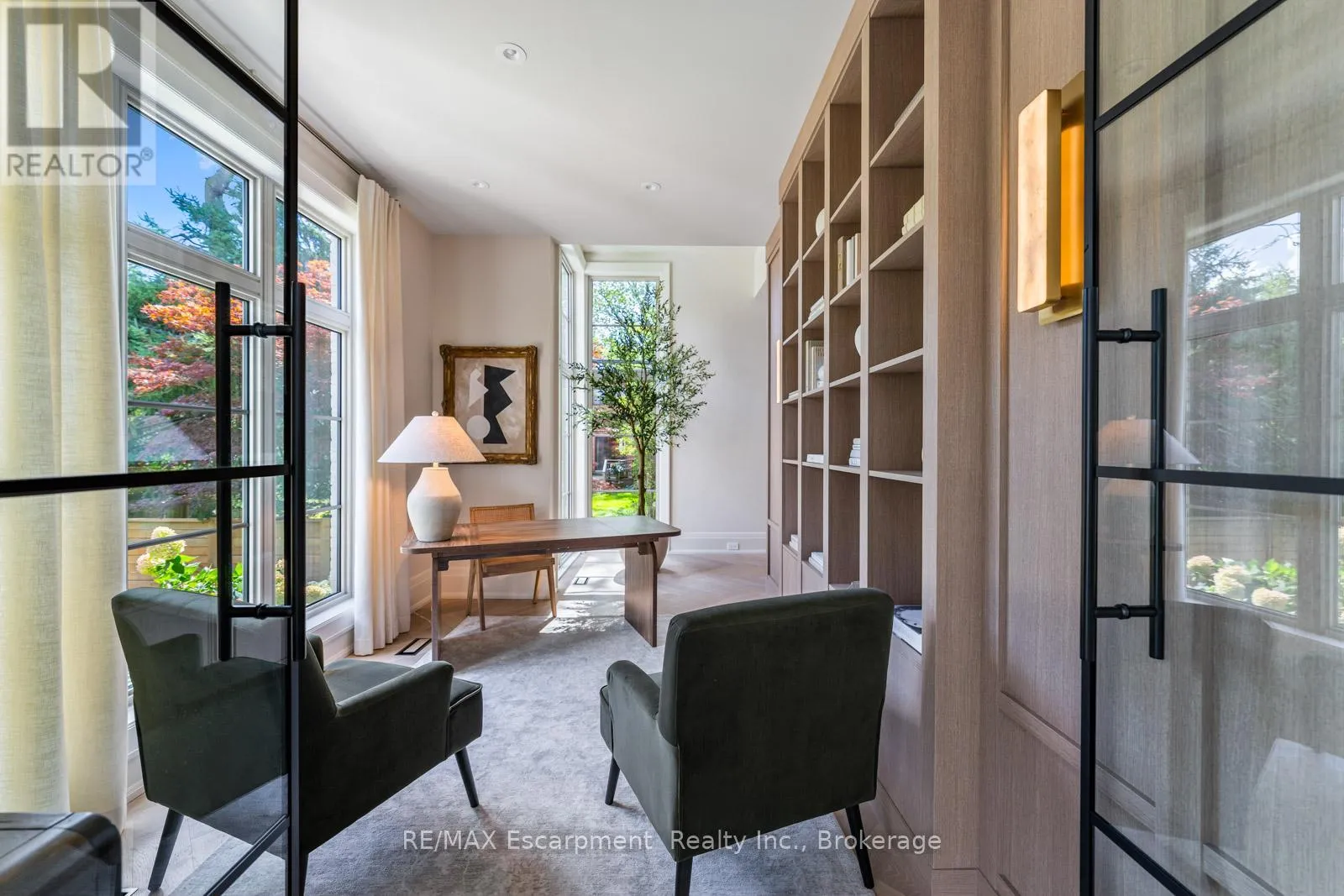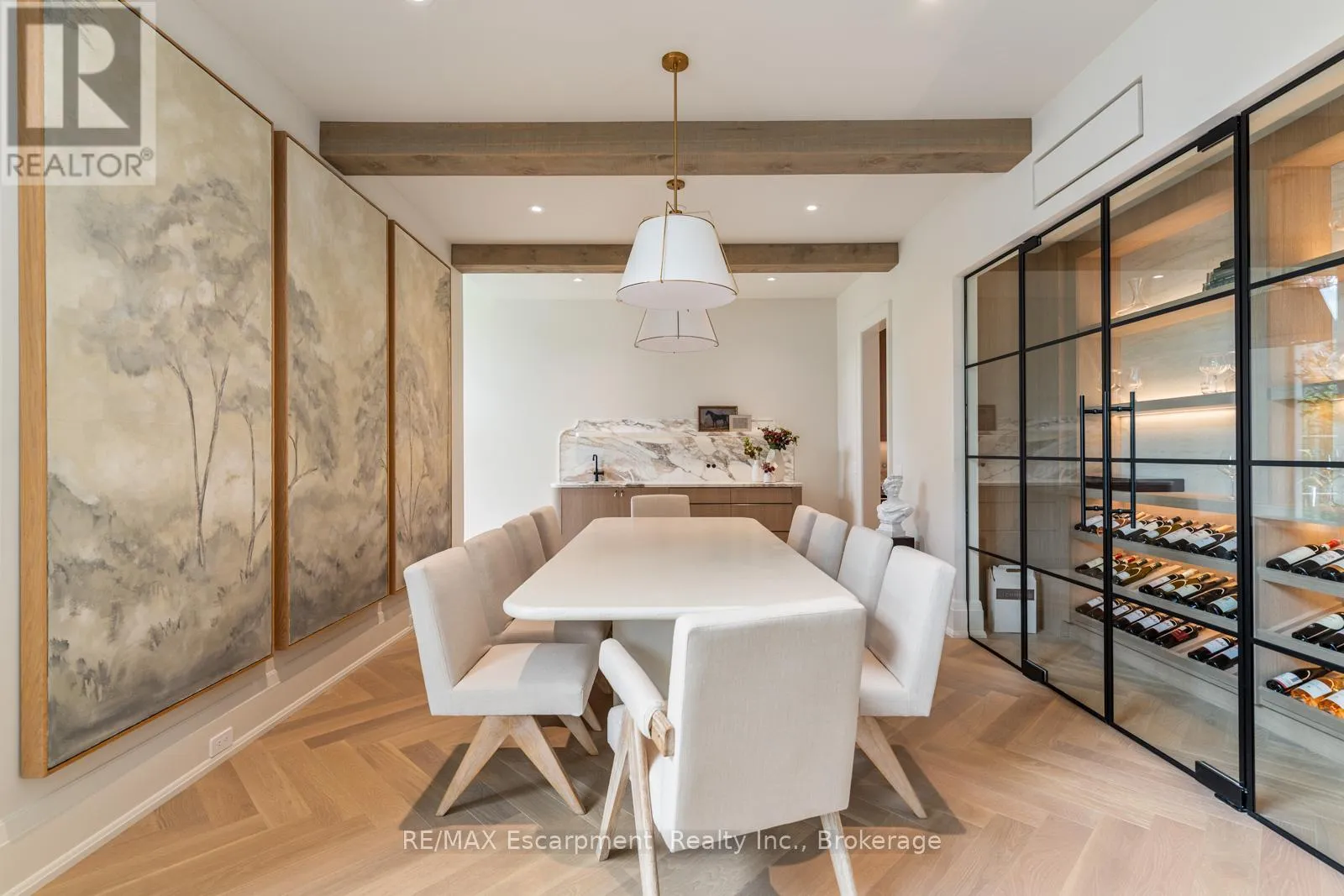 Cross Streets: Rossmore and South. ** Directions: Lakeshore to Pomona. Welcome to 304 Pomona Avenue, a truly magnificent newly built home in Burlington's highly coveted Roseland community. Step inside and you're greeted by an incredible hand-carved plaster staircase rising through all three levels that's perfectly paired with rift-cut white oak herringbone floors that set an elevated tone. A formal dining room makes a statement with decorative ceiling beams, a glass wine display, and a marble wet bar. The private library draws you in, finished with oak panelled walls and a reading nook with floor-to-ceiling corner windows that flood the room with natural light. The living room completes the main level's gathering spaces with its plaster fireplace, oak shelving with integrated lighting, and full in-ceiling speakers. At the heart of the home, the kitchen offers a large custom plaster hood, oversized waterfall island, porcelain counters, and top-tier appliances including a 60" Wolf double oven, Sub-Zero fridge and freezer, and Bosch dishwasher. Pantry storage with reeded glass cabinetry and a walk-through servery extends the workspace. Just beyond, the breakfast area opens to a beautiful and serene covered terrace with a built-in BBQ, outdoor fridge, fireplace, and cedar-lined ceiling-overlooking the saltwater pool and landscaped gardens. Upstairs, four bedrooms each include private ensuites. The primary suite features a spacious walk-in closet and a spa-like bath with dual vanities, soaker tub, heated floors, and oversized shower. A full laundry room with custom cabinetry completes this level. The lower level expands the living space with a second kitchen, home theatre, gym, fifth bedroom, full bath, and radiant heated floors. Outside, stone patios, mature landscaping, irrigation, and a hydrangea wall create a welcoming backdrop. With 4+1 bedrooms, 7 bathrooms, and over 6,000 sq. ft. of living space, this Roseland residence combines thoughtful design with everyday comfort. Move in and enjoy! Luxury Certified. (id:27476)