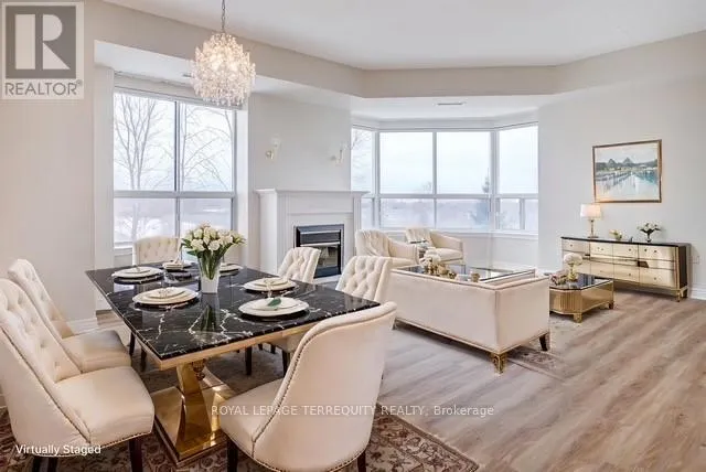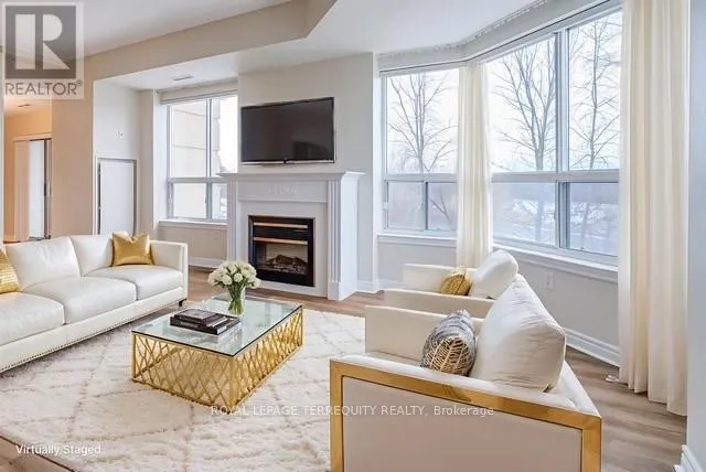 Brant St. & Amherst Heights Dr. Bright & Spacious South-Facing Condo in the Heart of Burlington - Balmoral II. Welcome to Balmoral II, a highly desirable low-rise condominium community ideally located in the heart of Burlington. This south-facing 2-bedroom, 2-bathroom suite offers 1,428 sq. ft. of bright, open-concept living space with 9-foot ceilings and sunlight streaming in all day. The spacious living room features a coffered ceiling and a cozy fireplace, creating a warm and inviting atmosphere. The kitchen offers a walk-out to an open balcony, perfect for morning coffee or evening relaxation. The primary bedroom includes a Juliette balcony that lets in fresh air and natural light. You'll appreciate rich laminate flooring throughout, mirrored closets, and ample storage, including a full-size laundry room that doubles as a pantry. This unit also comes with in-suite laundry, underground parking, and a separate storage locker for added convenience. Residents of Balmoral II enjoy a wide range of amenities, including a party room with a kitchenette, library, fitness centre, hobby/workshop room, car wash bay, and a BBQ area with outdoor seating. EV charging stations are also available on site. Located just off Brant Street and Highway 407, this prime location offers easy access to shopping, dining, parks, and transit, perfect for commuters, downsizers, or anyone seeking a comfortable, carefree lifestyle in a well-maintained building. The fees cover heat, CAC, water, parking, locker, building insurance, and common elements. Owners pay their own hydro, internet, cable, etc. The unit is heated by a water heat pump. Don't miss your chance to own this bright and beautifully maintained condo in one of Burlington's most sought-after communities! (The unit cost is on $488.00 per square foot) (id:27476)